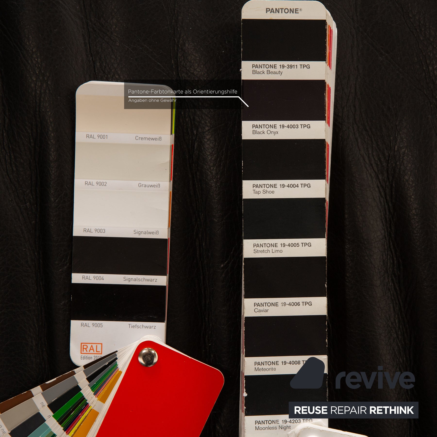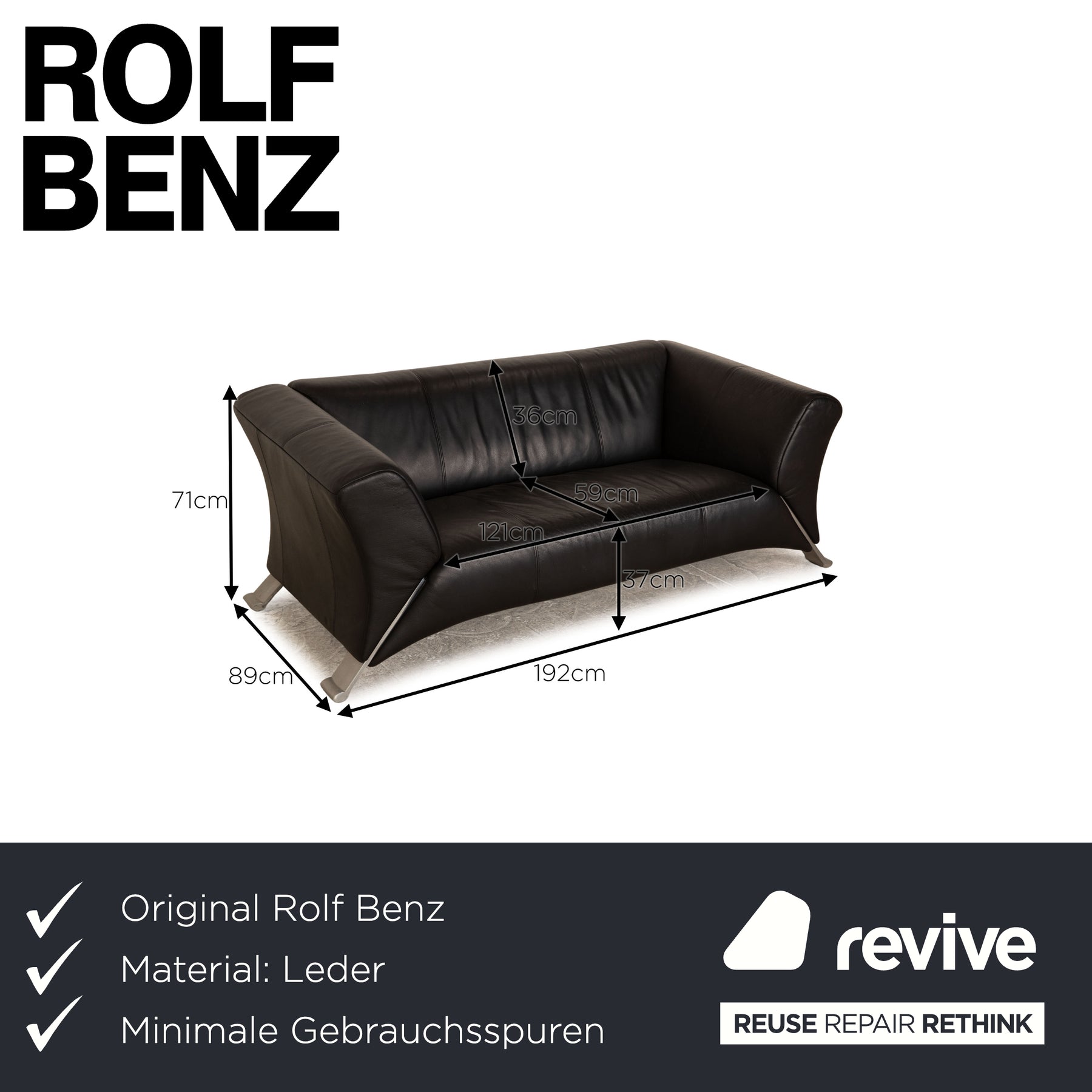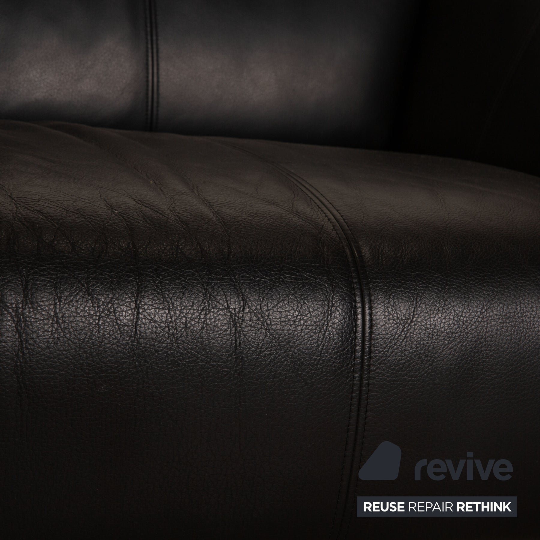 The 322 sofa by Rolf Benz is upholstered in black genuine leather and stands on silver metal feet. The modern design and the rounded edges characterize the two-seater.