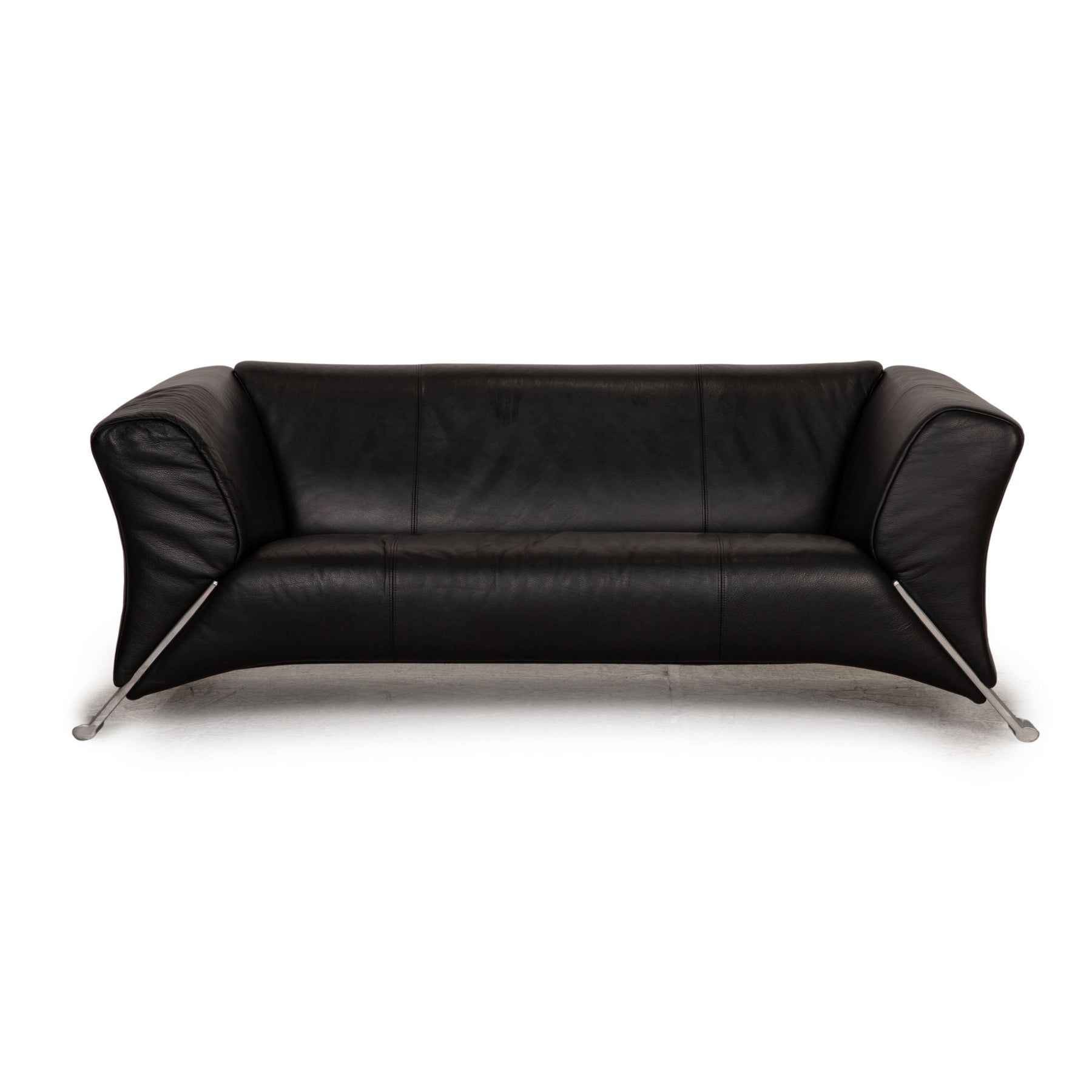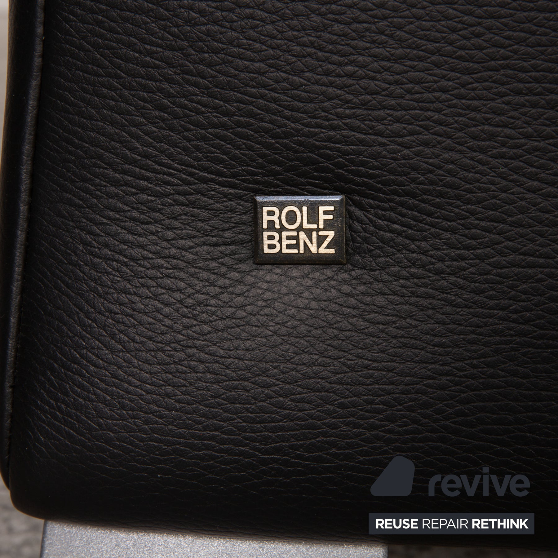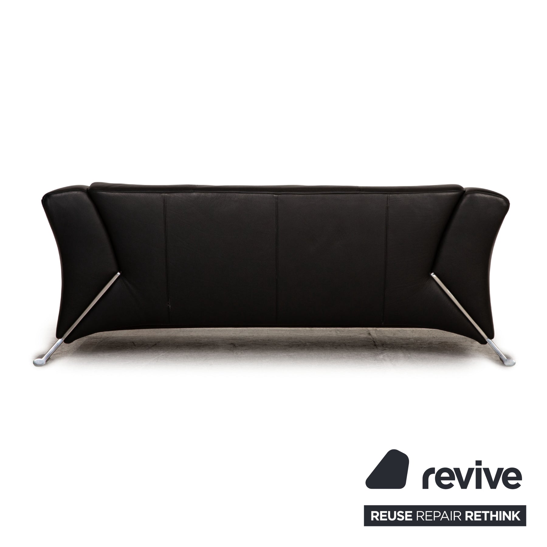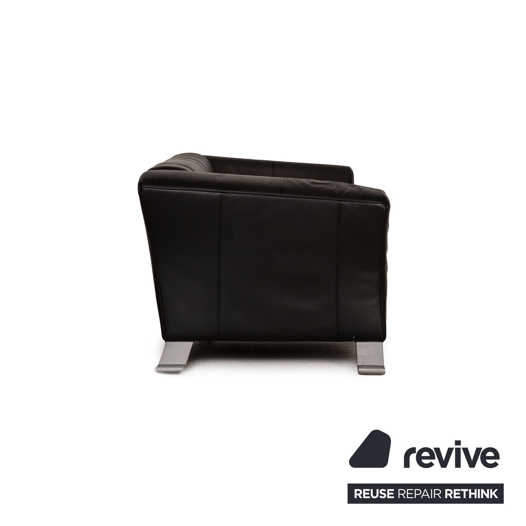 The 322 sofa by Rolf Benz is upholstered in black genuine leather and stands on silver metal feet. The minimalist, classic design and the slanted armrests characterize the two-seater.