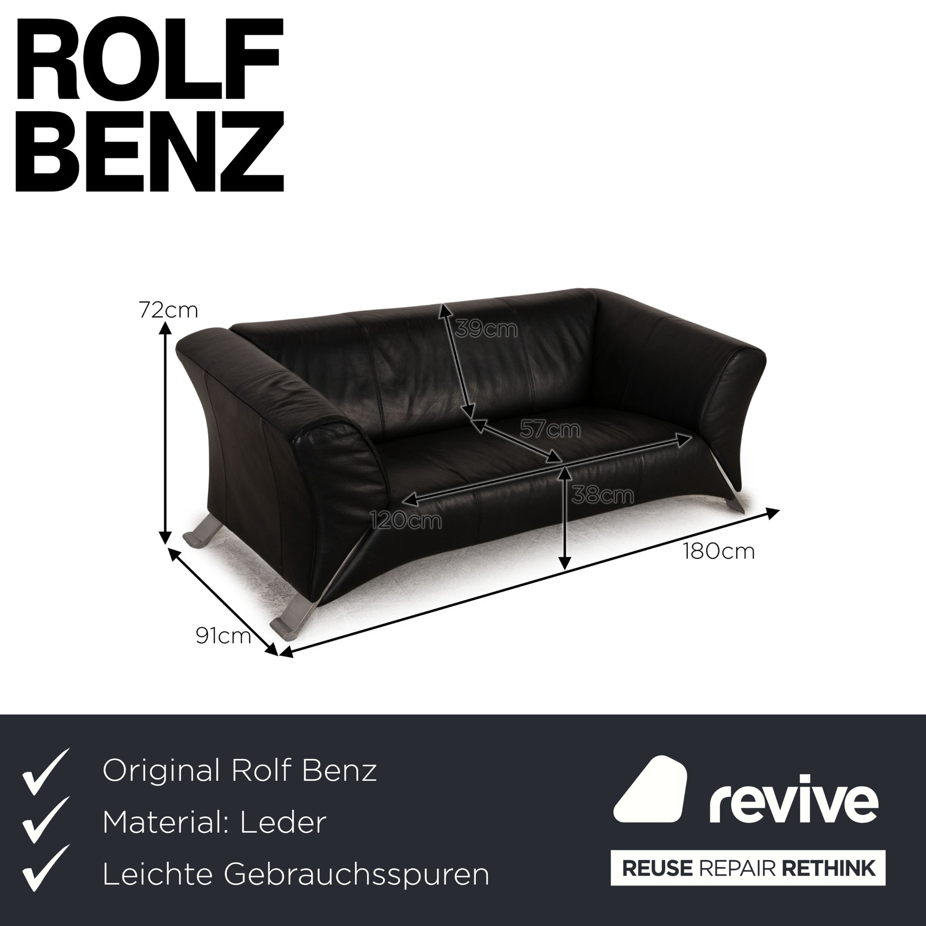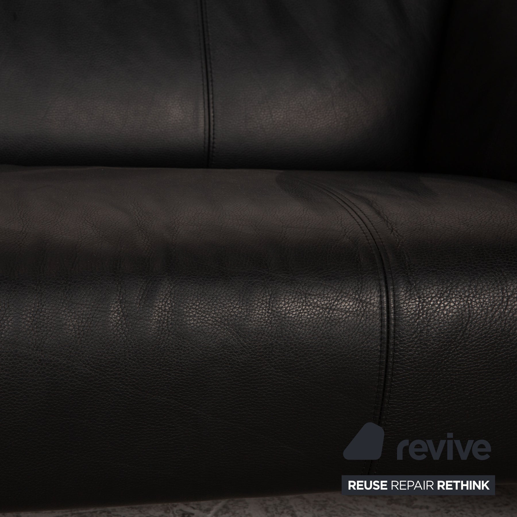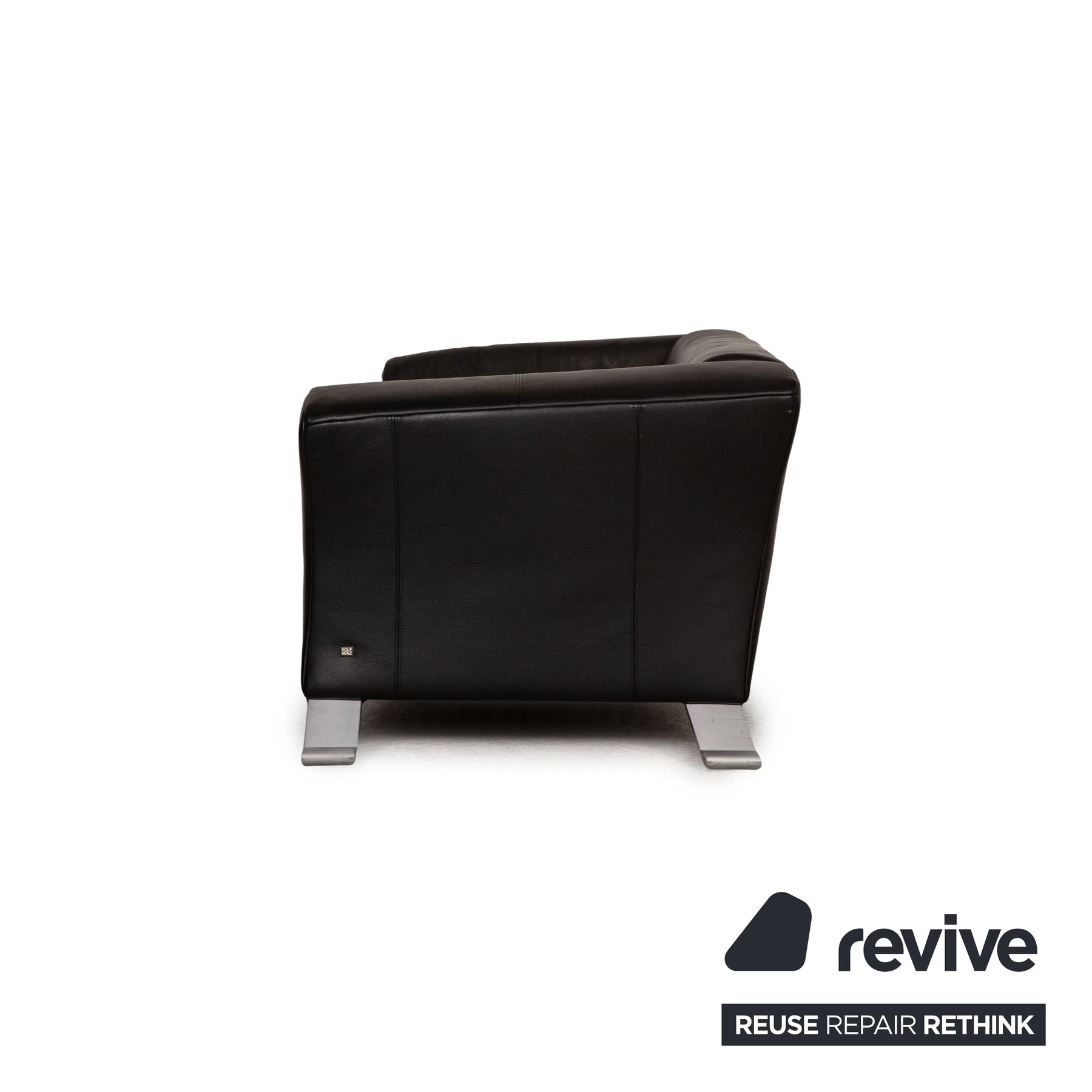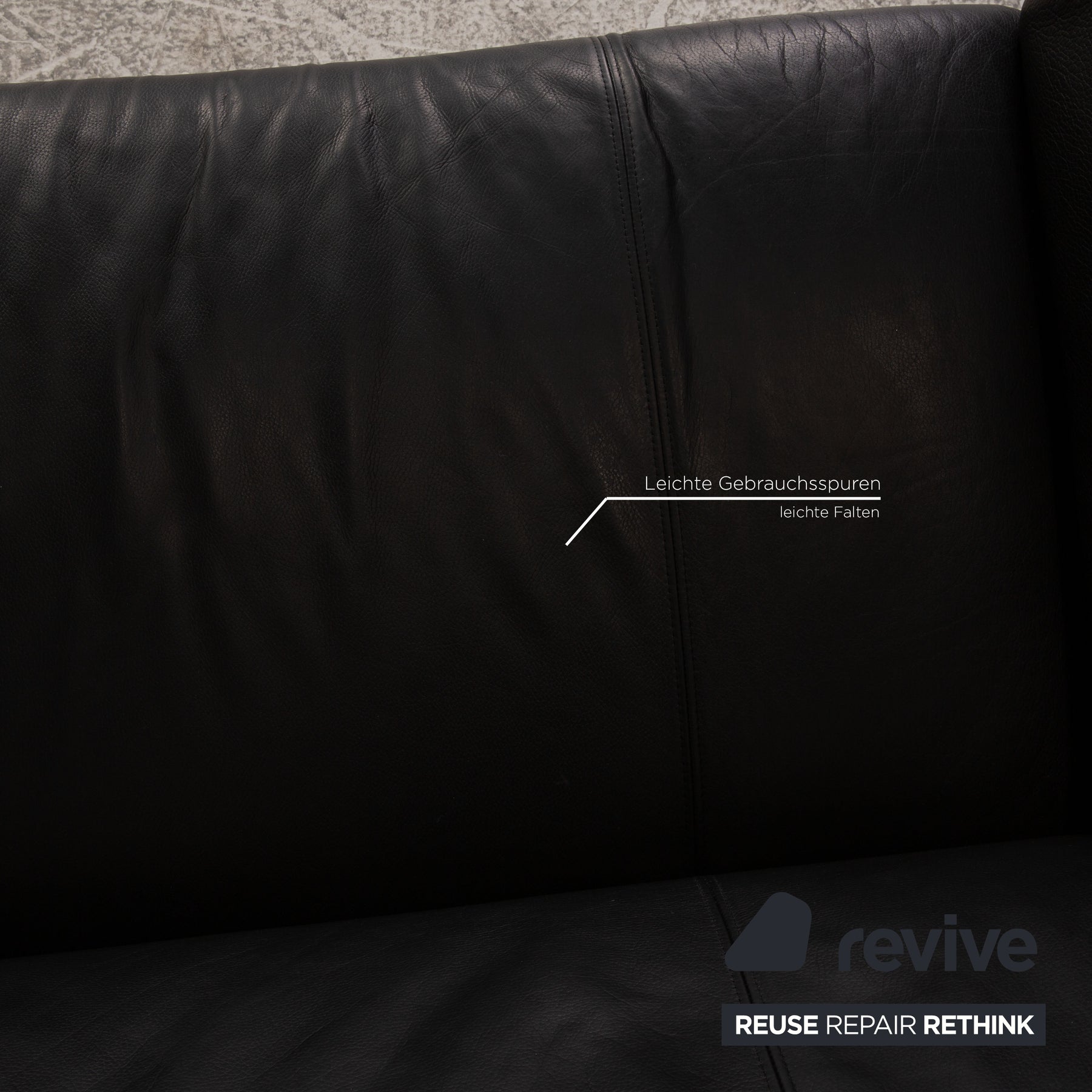 The 322 sofa by Rolf Benz is upholstered in black genuine leather and stands on silver metal feet. The minimalist, classic design and the slanted armrests characterize the two-seater.