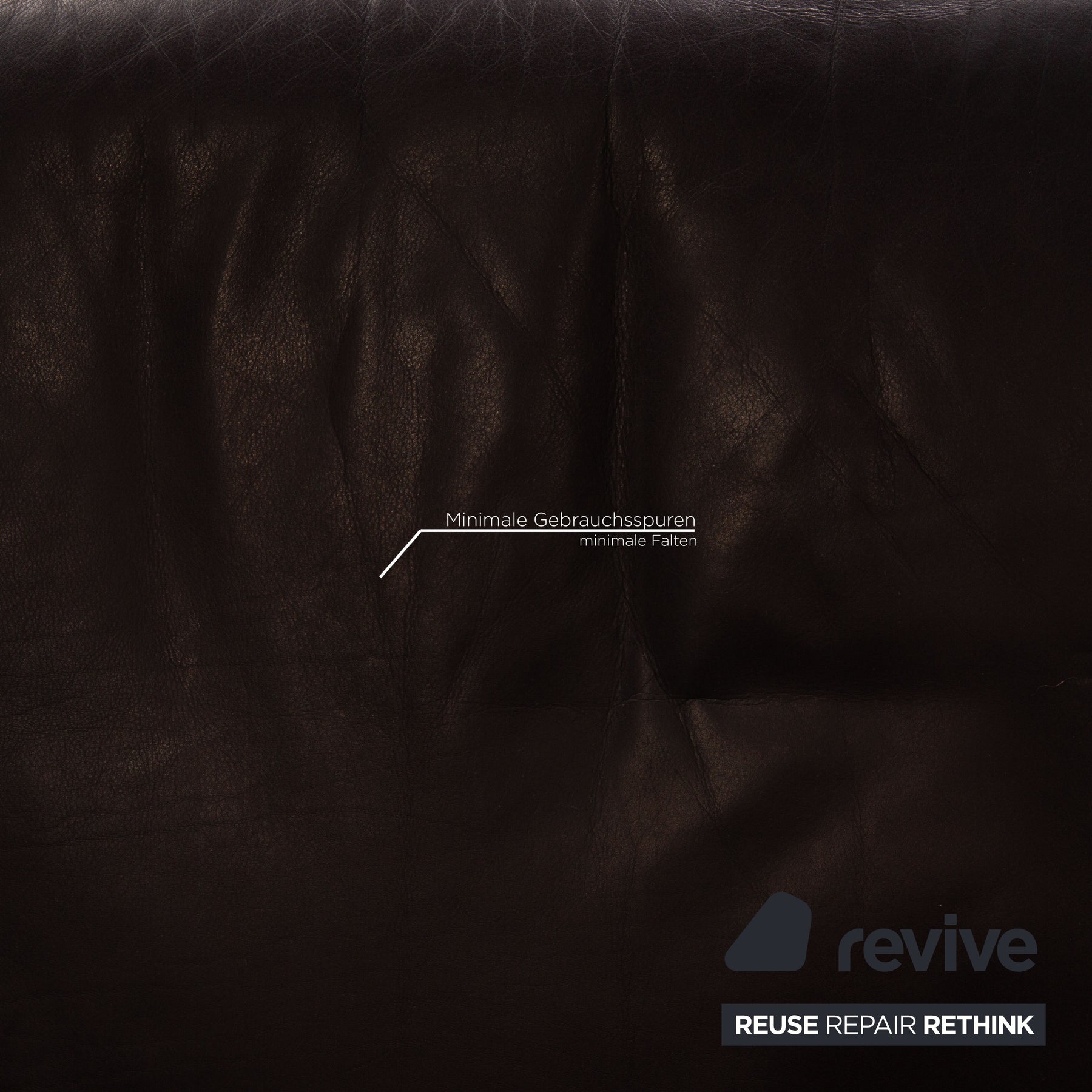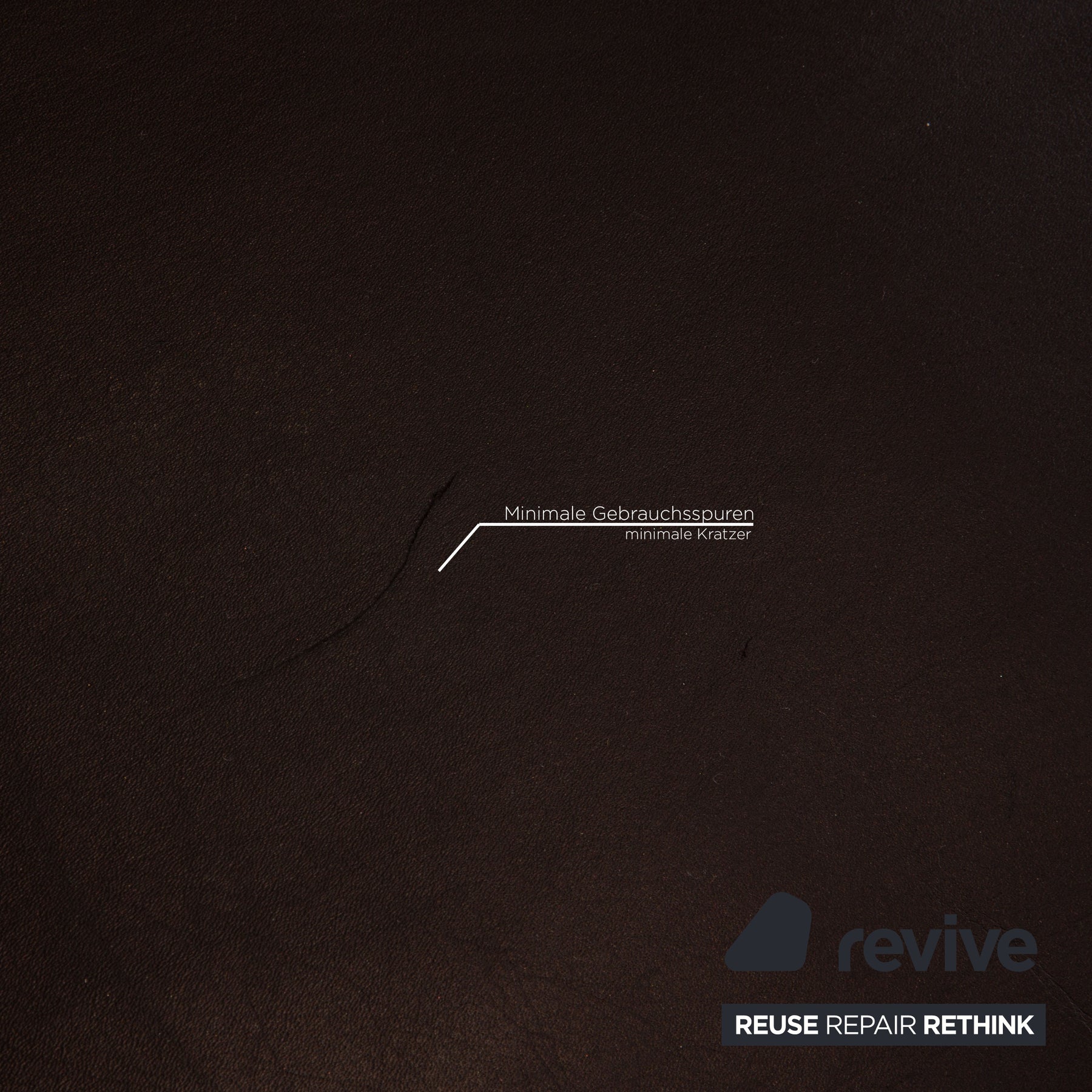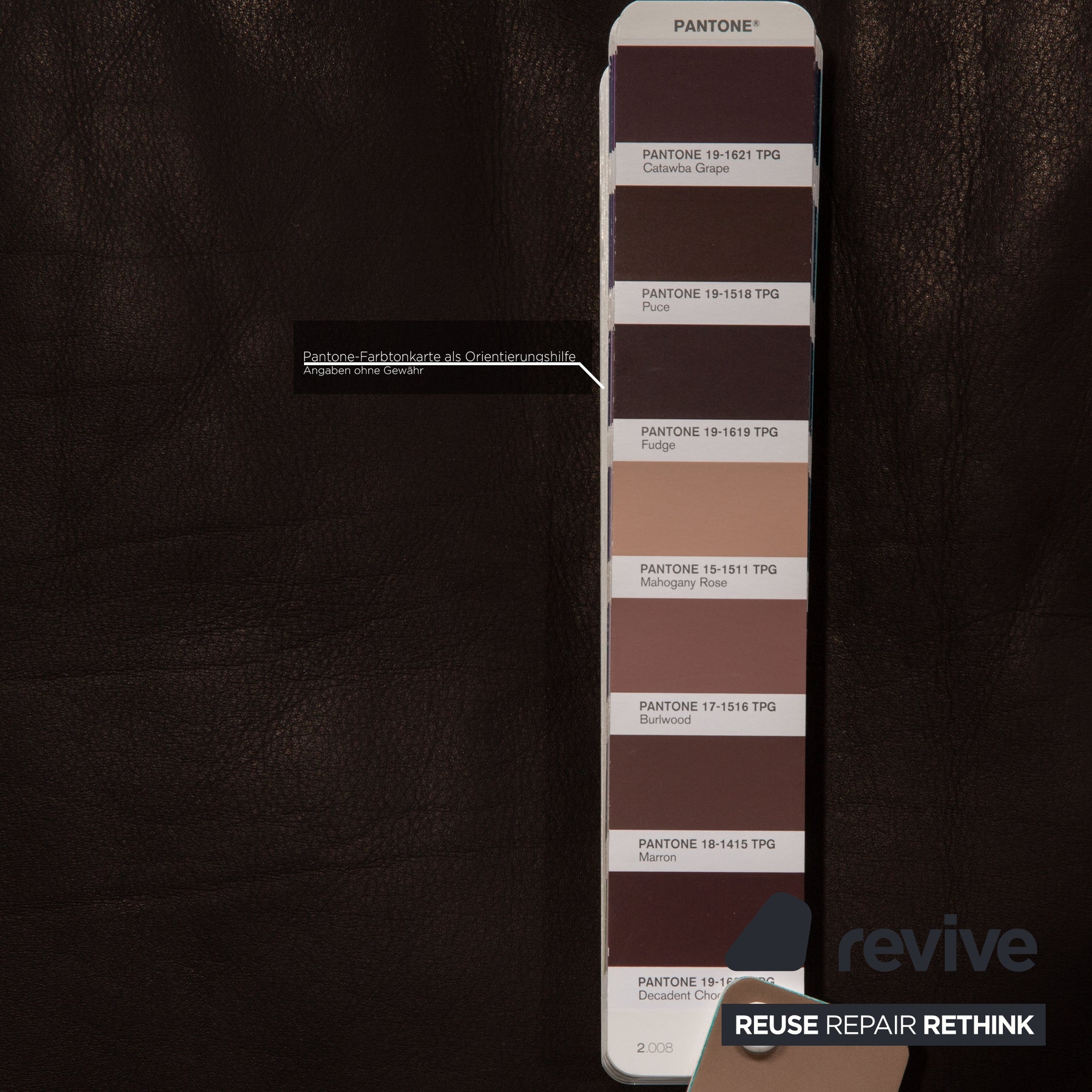 The three-seater 3300 from Rolf Benz is upholstered in aubergine-colored real leather and stands on silver metal feet. It is characterized by the extravagant, harmonious color and the classic, minimalist design.