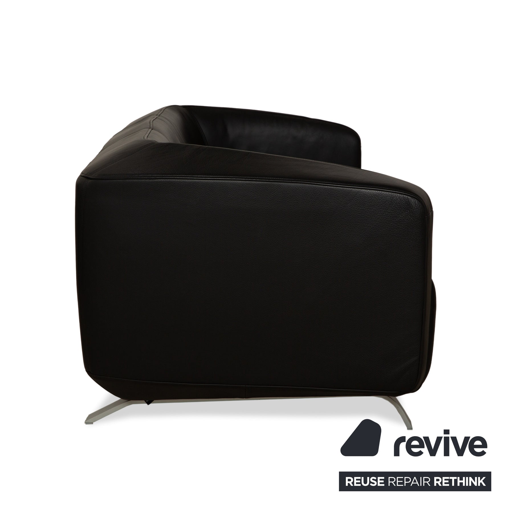 The Rolf Benz 6000 set, consisting of a two-seater and a three-seater sofa, features a deep black finish and understated metal feet. Thus, it exudes a calm yet stylish atmosphere. The high-quality leather is the most exciting part, as it offers maximum comfort and durability.