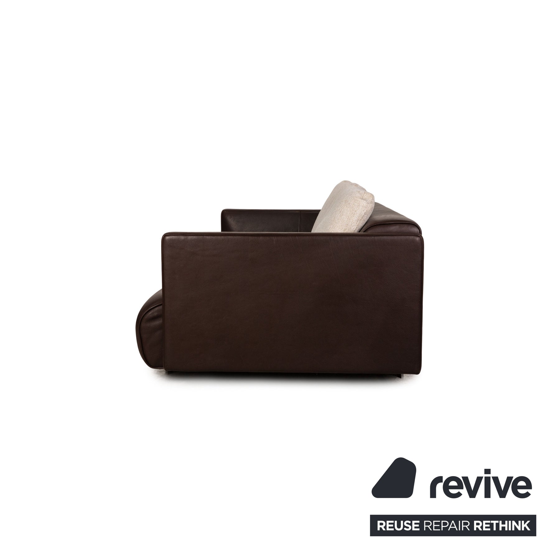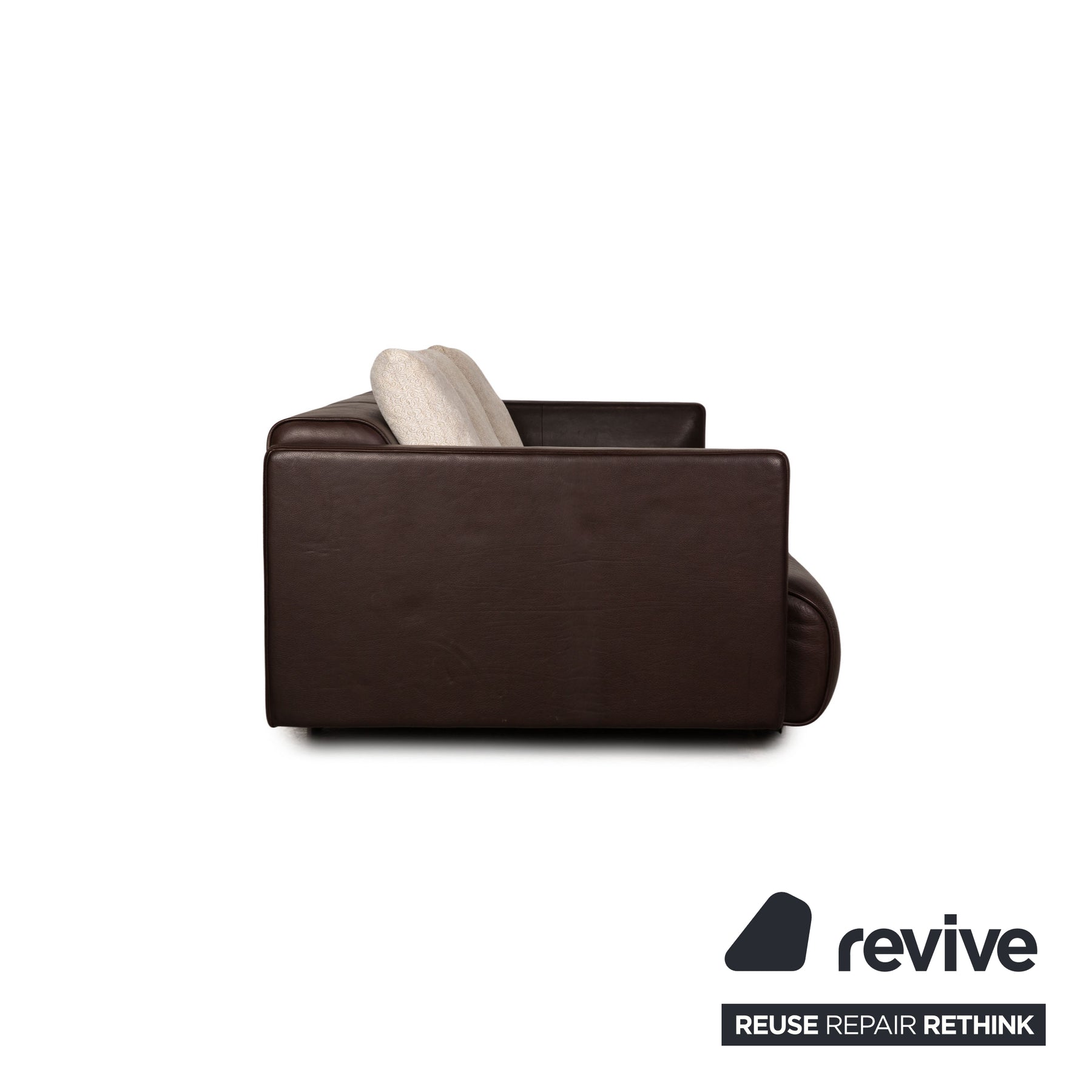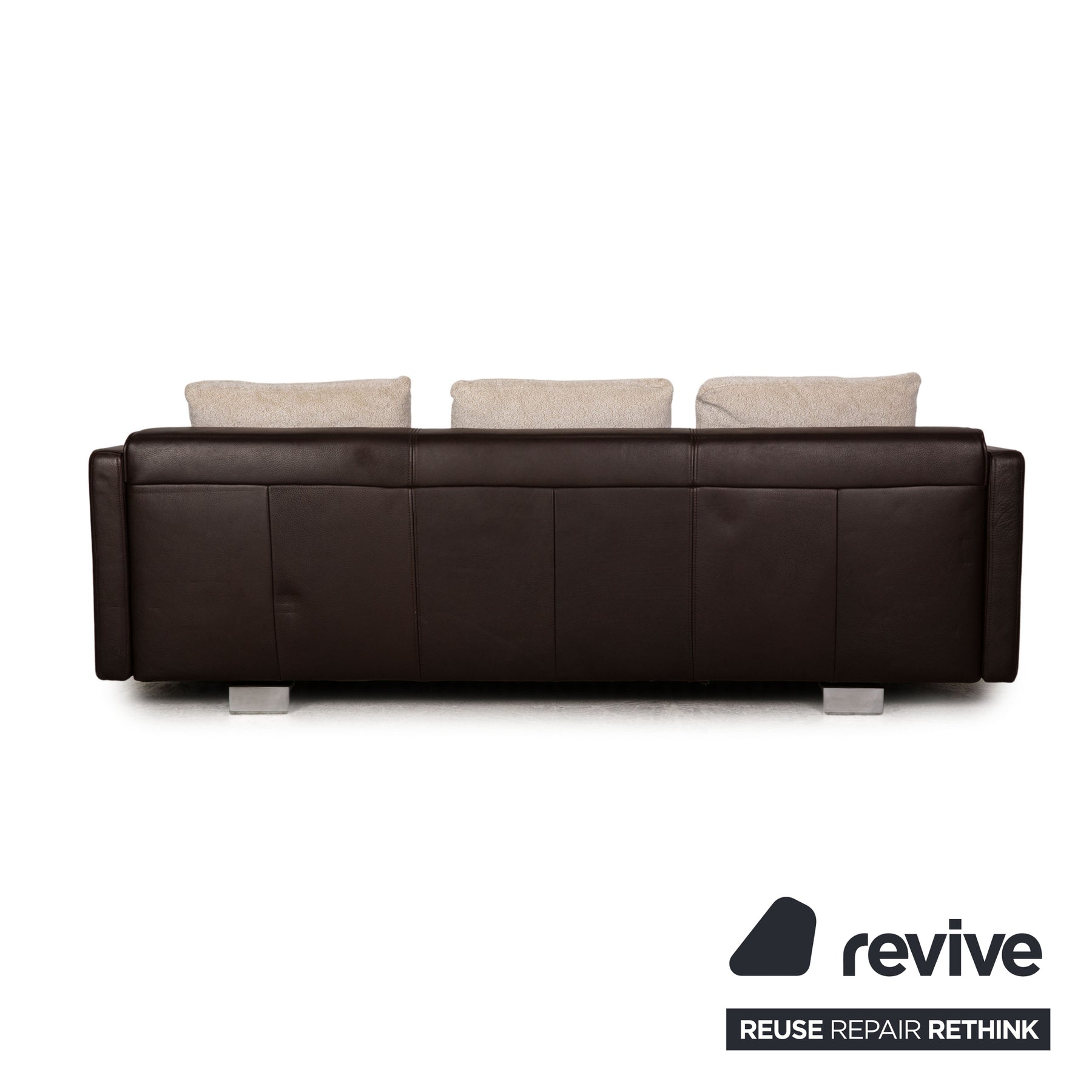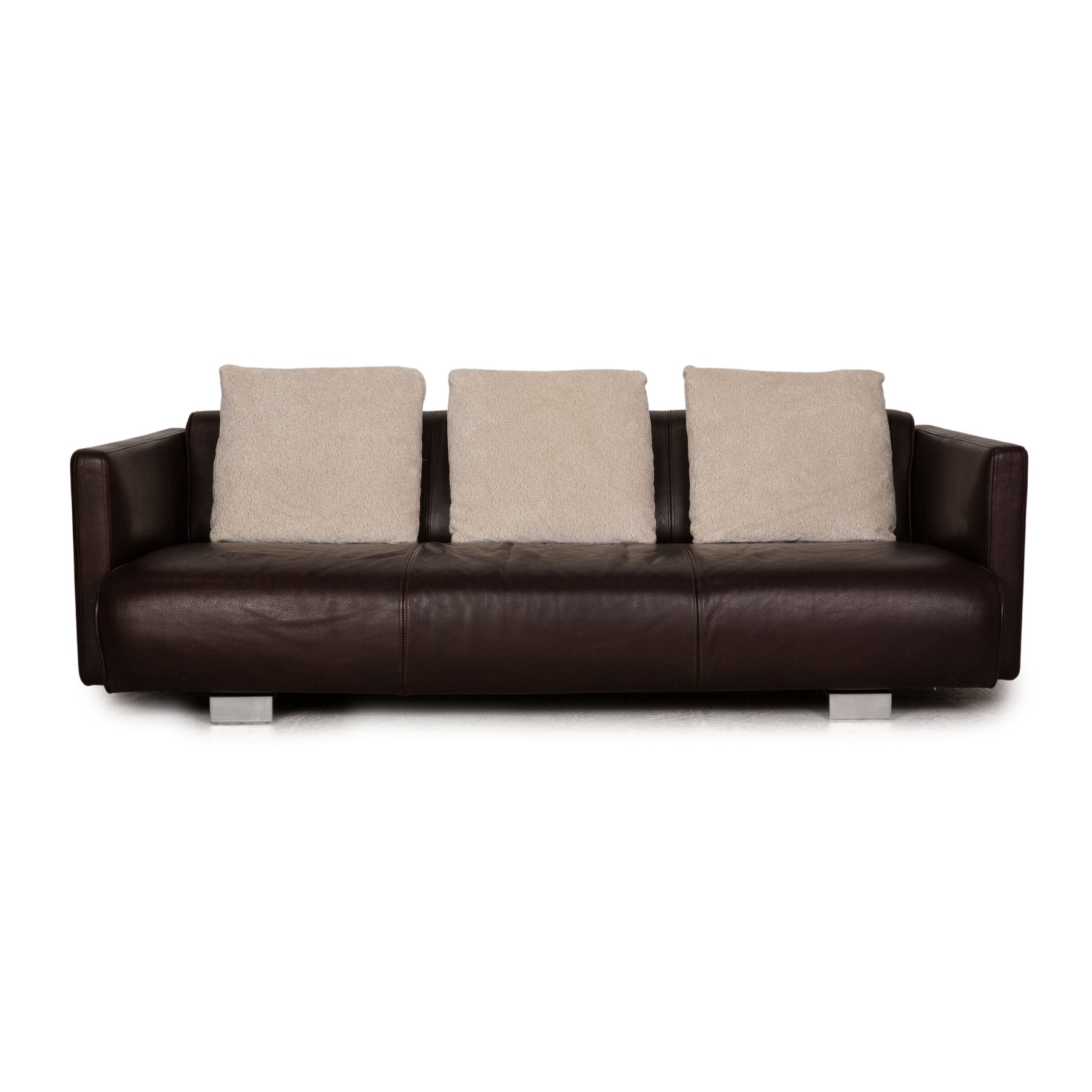 The 6300 sofa by Rofl Benz is covered with brown genuine leather and stands on silver metal feet. The timeless design and the rounded seat characterize the three-seater.