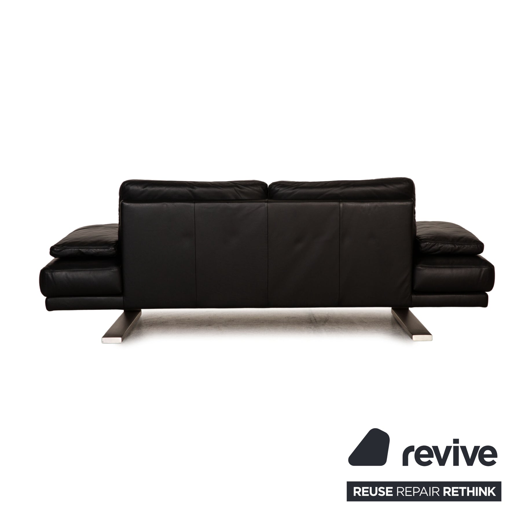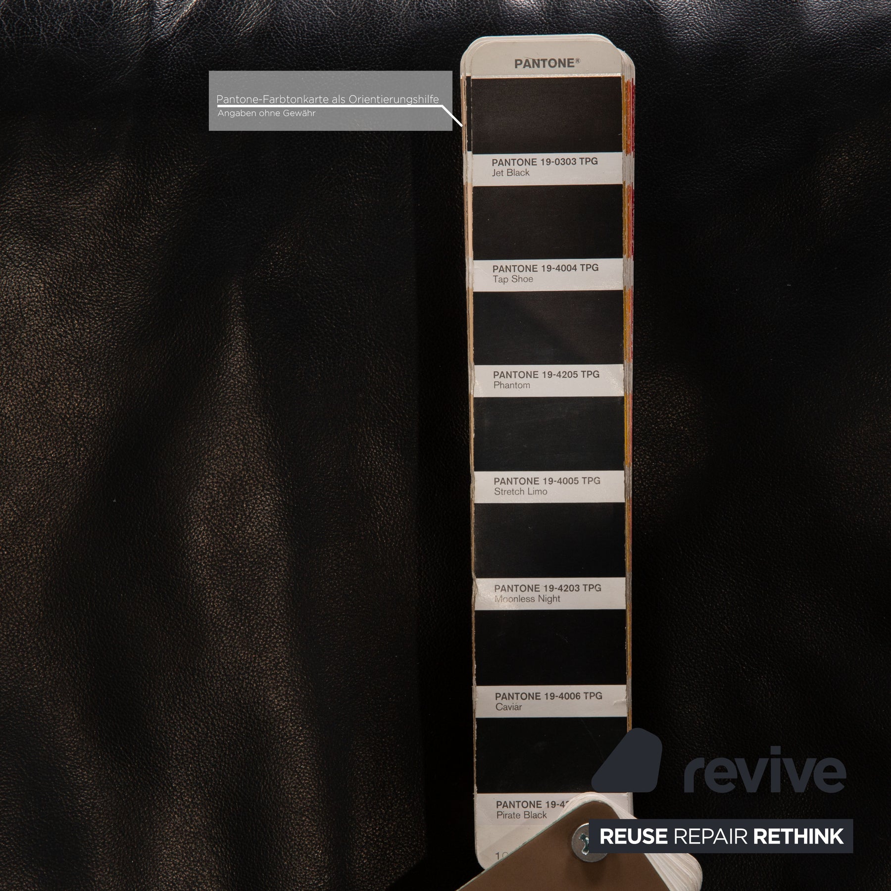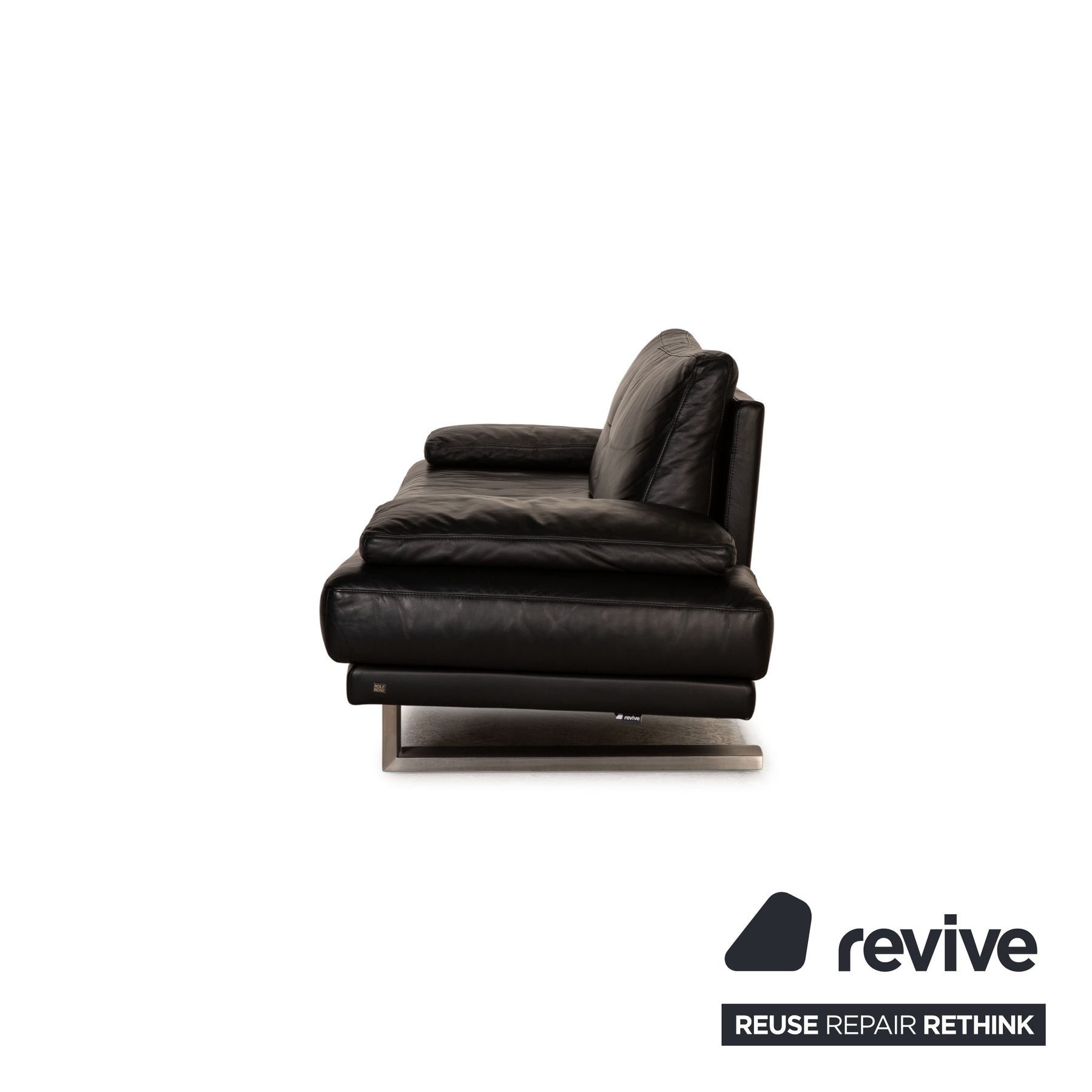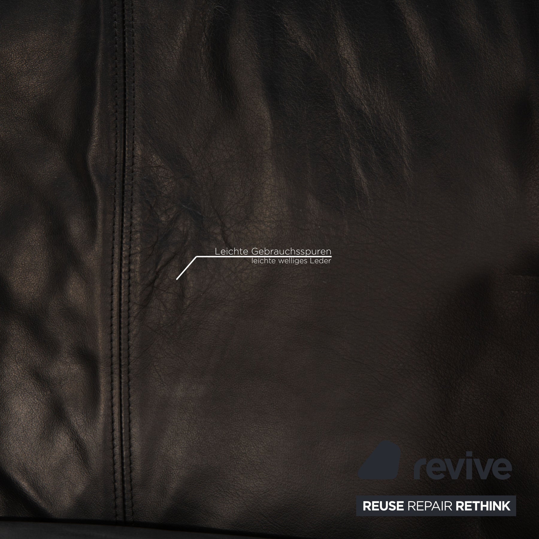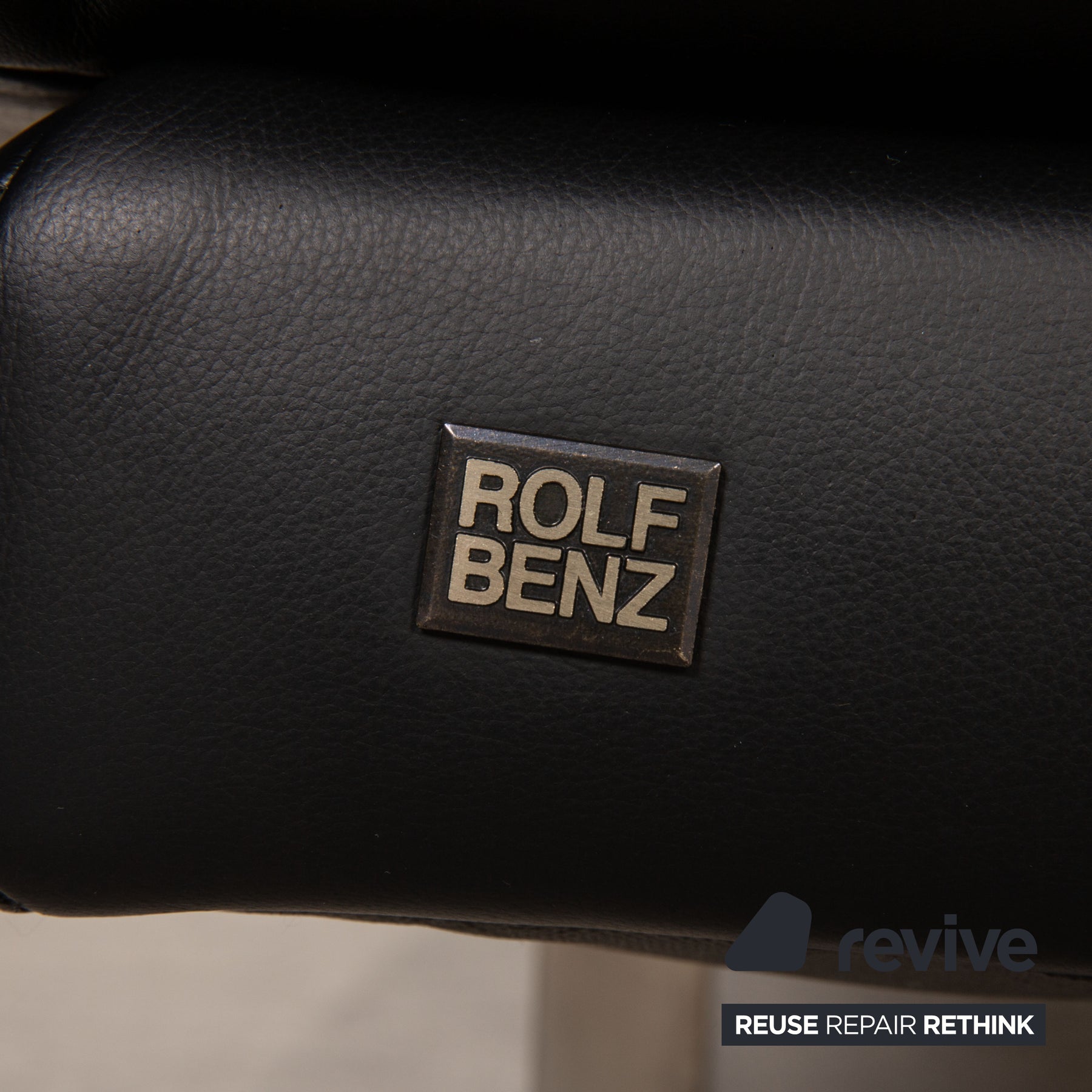 The three-seater 6600 from Rolf Benz is upholstered in black genuine leather and stands on two solid metal feet. It is characterized by the simple, classic design and the rounded corners and edges.