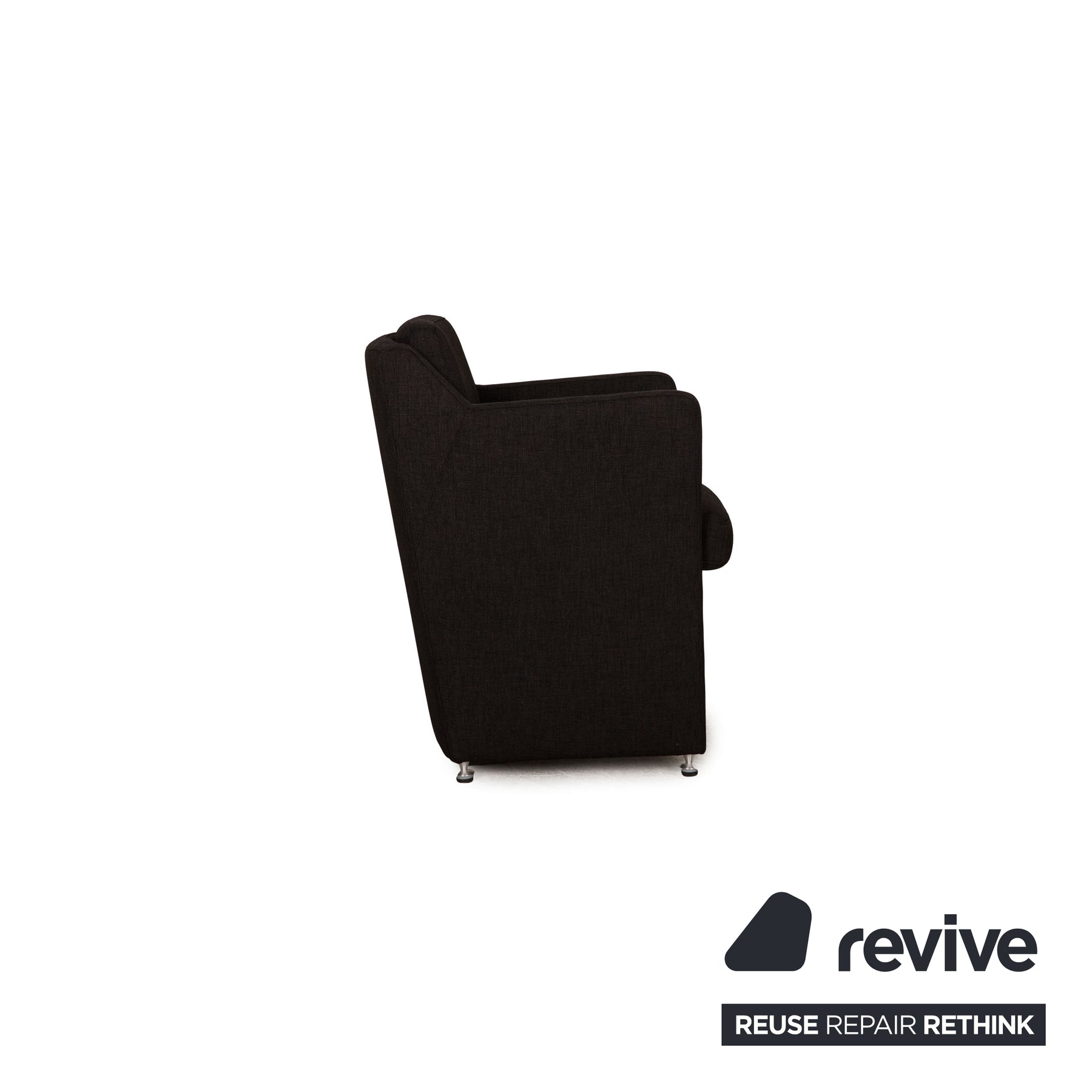 The 7100 armchair by Rolf Benz is upholstered in anthracite-colored fabric and stands on inconspicuous, round metal feet. The minimalist design and the comfortable armrests characterize the armchair.
