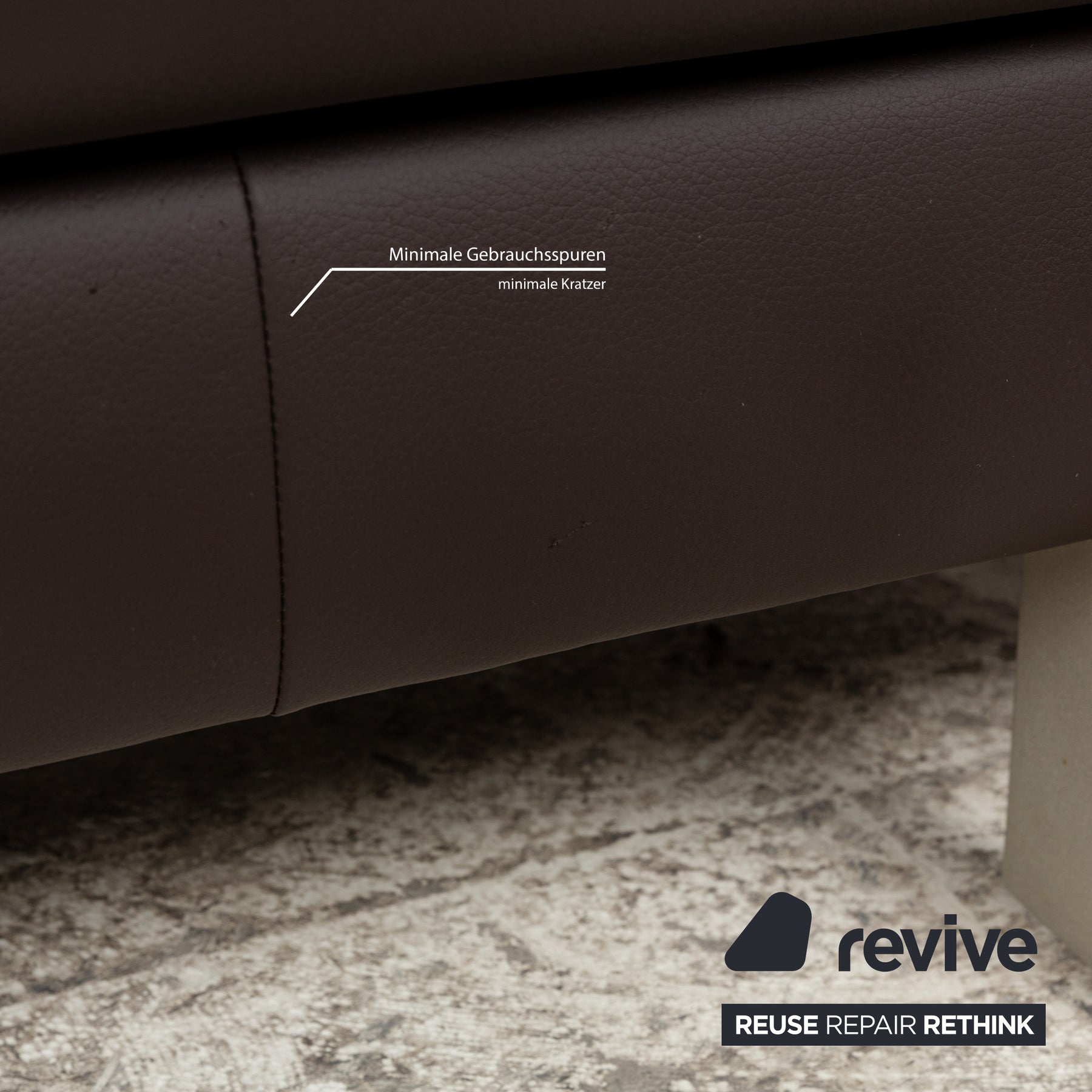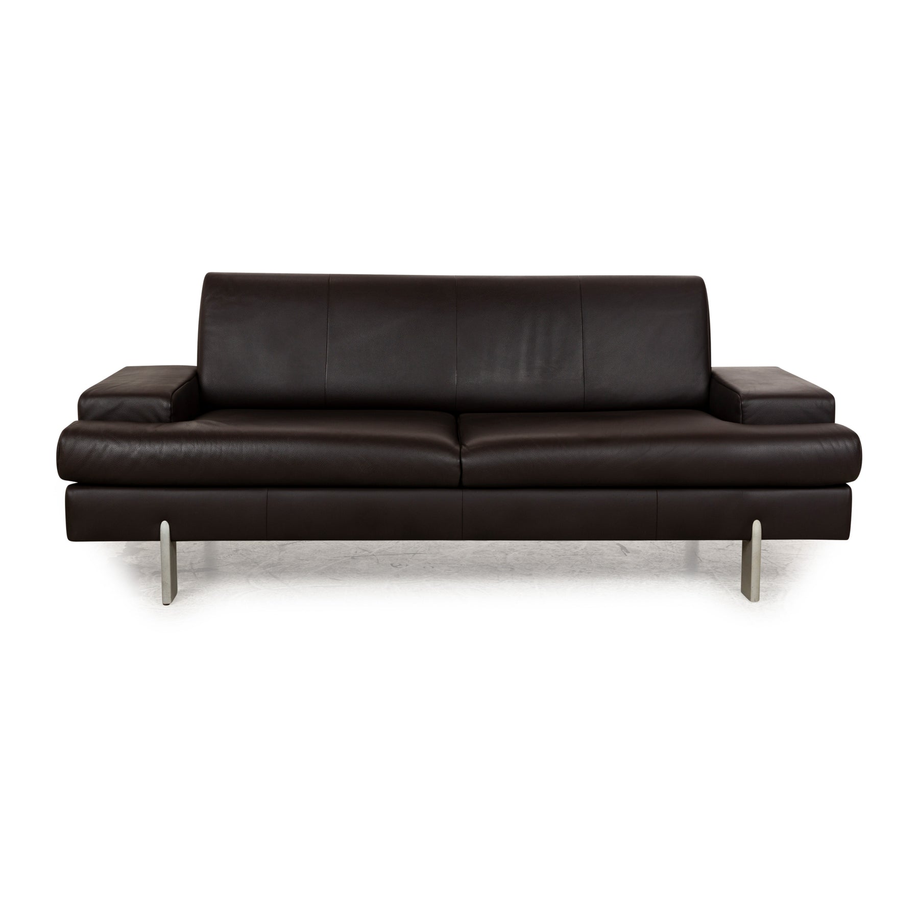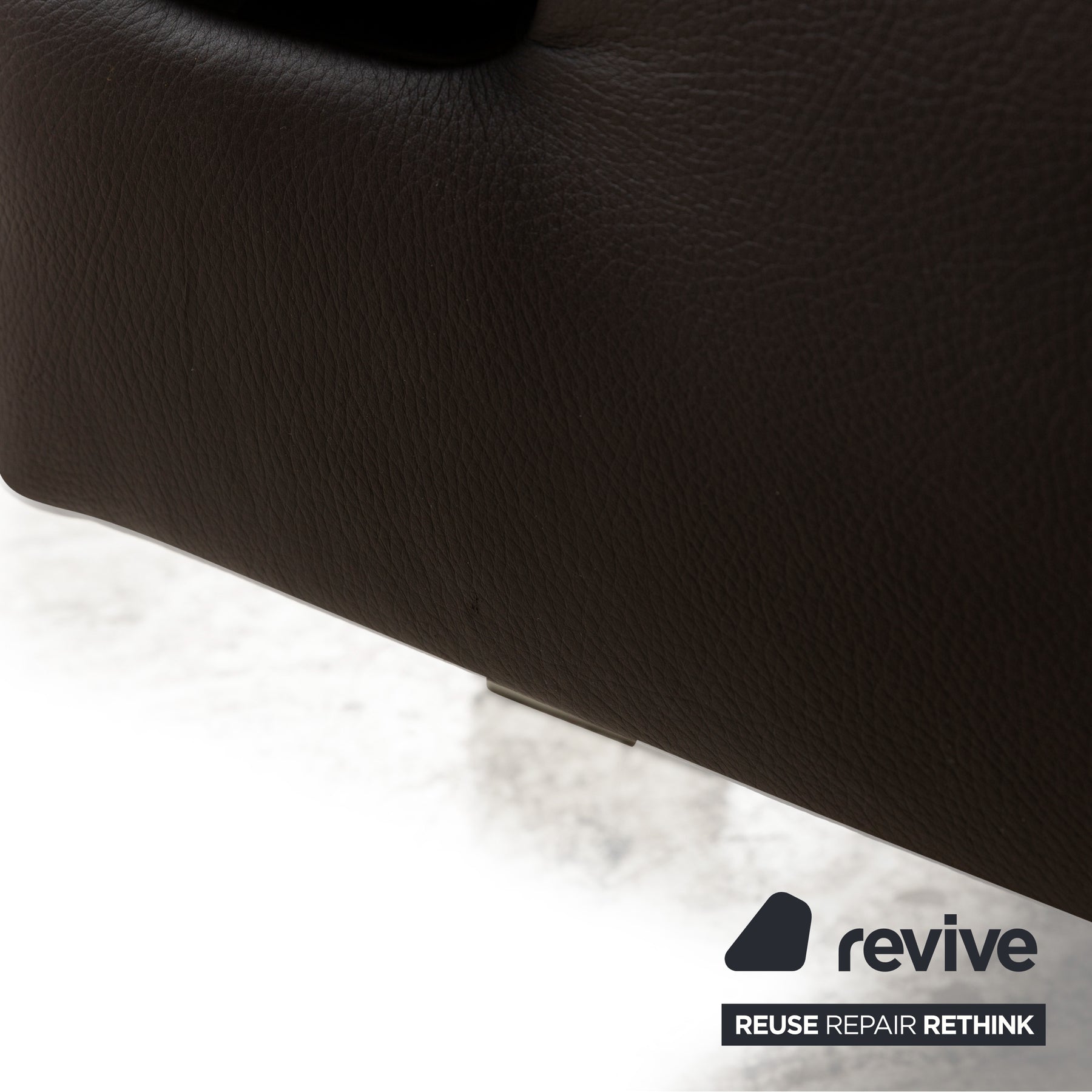 The three-seater AK 644 by Rolf Benz is upholstered in dark brown leather and stands on metal feet. It is characterized by its classic, timeless design and can be integrated into any interior design concept.