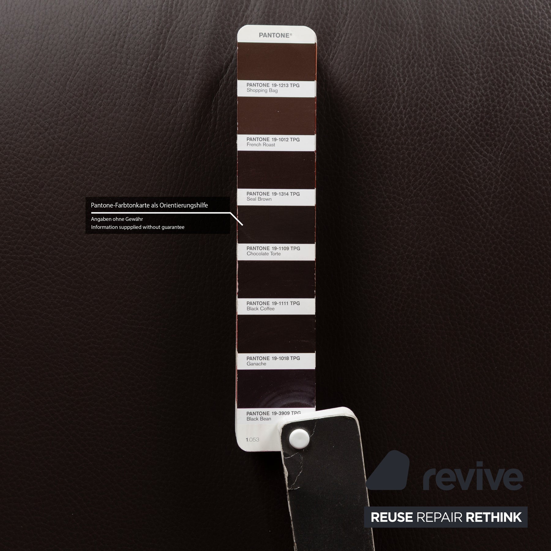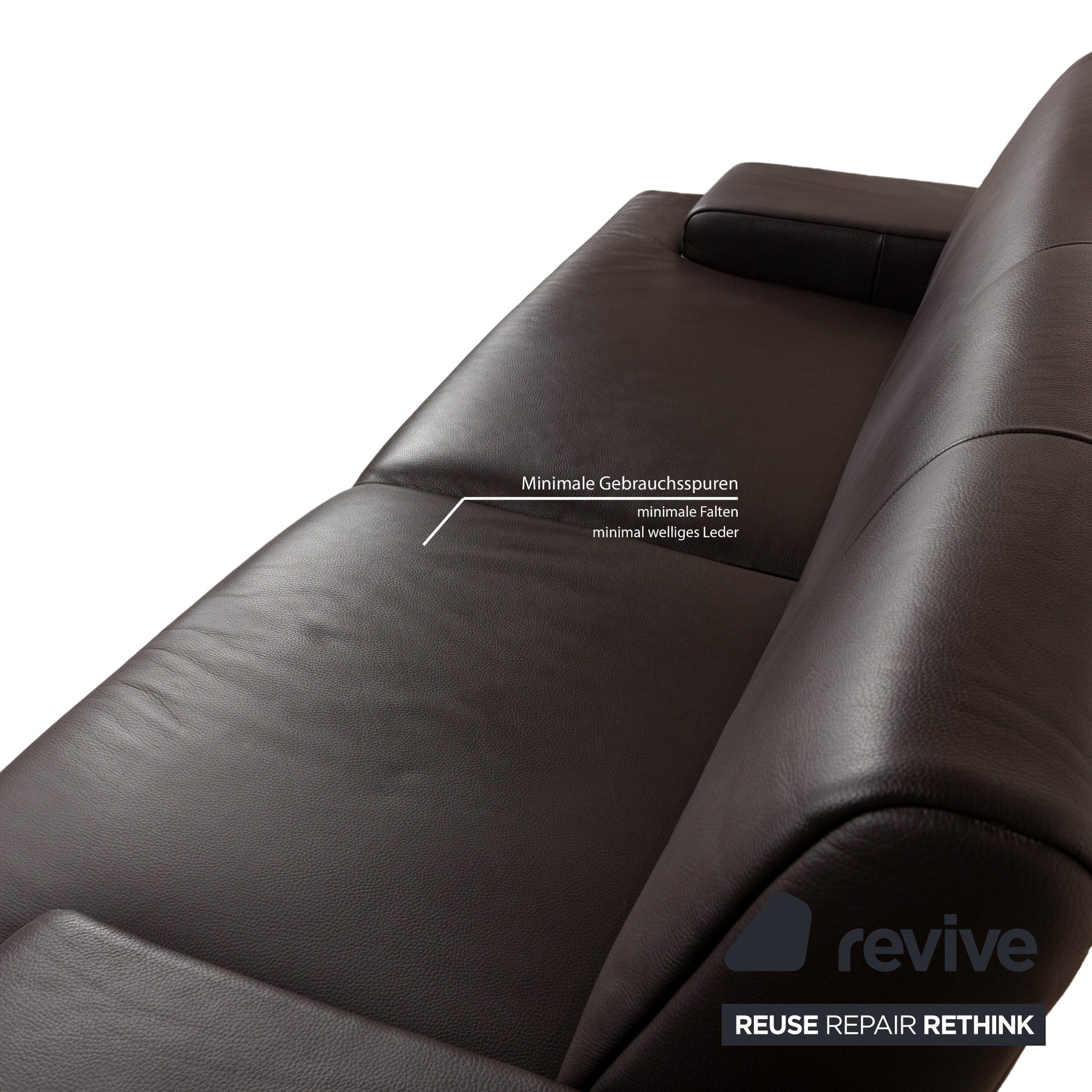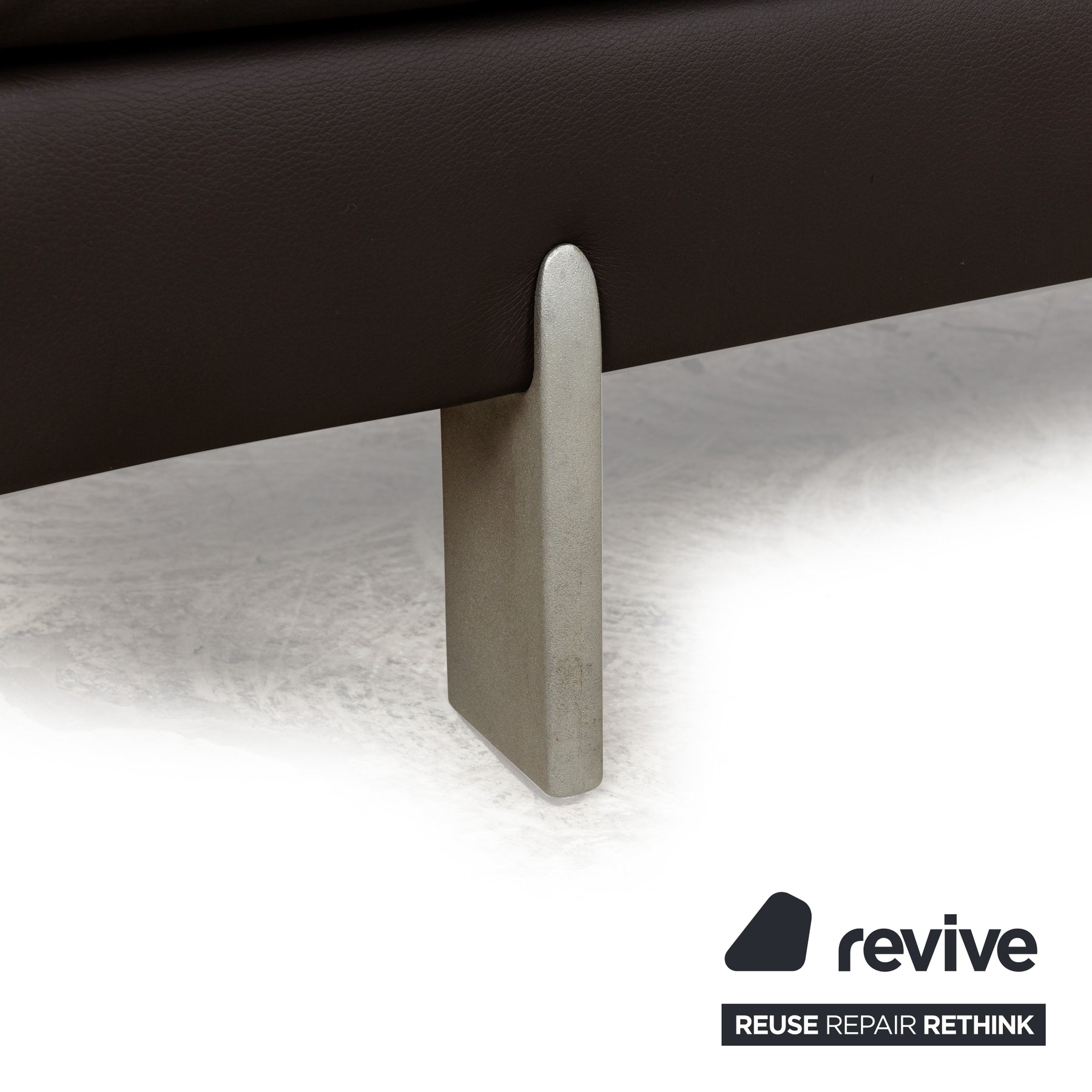 The three-seater AK 644 by Rolf Benz is upholstered in dark brown leather and stands on metal feet. It is characterized by its classic, timeless design and can be integrated into any interior design concept.