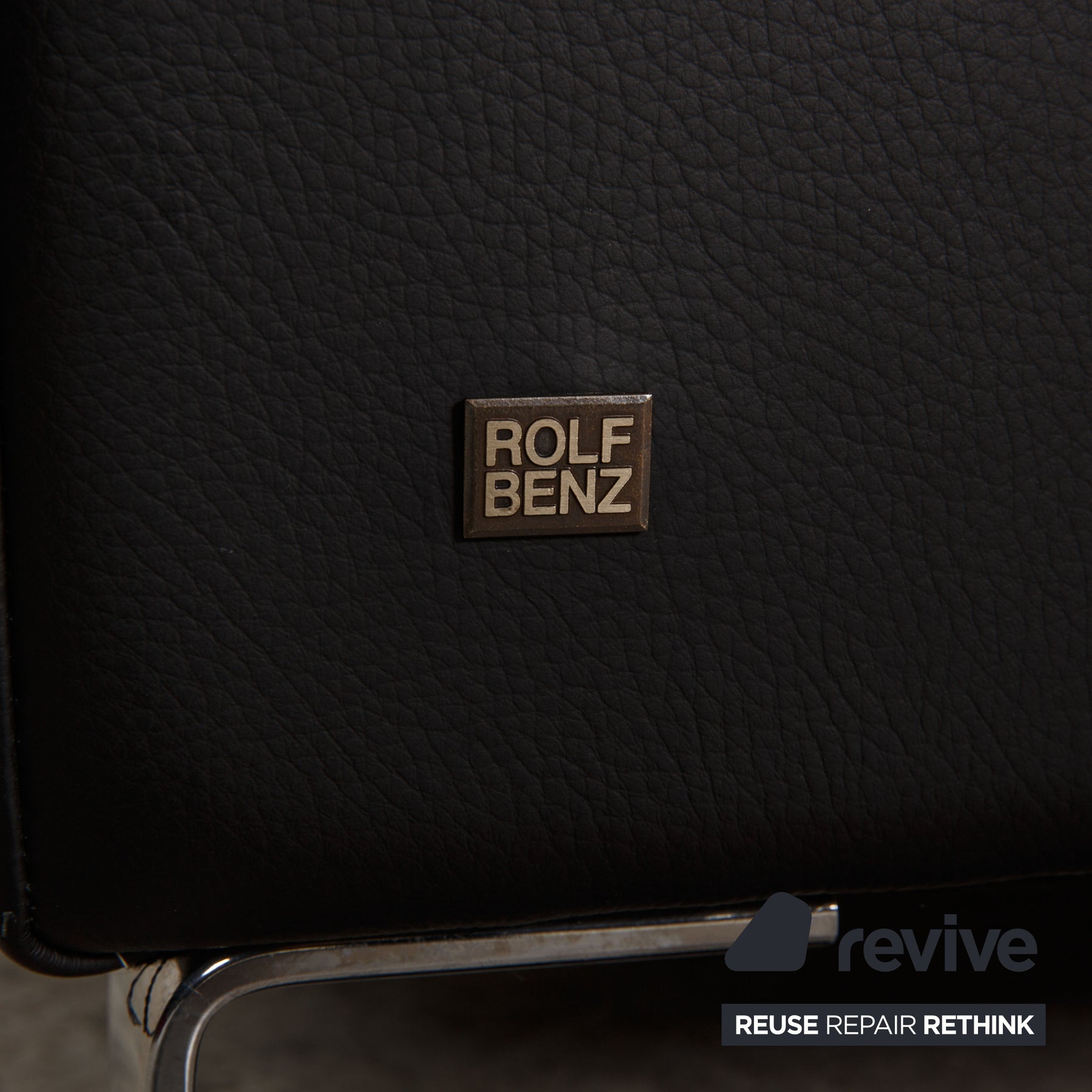 The Ego sofa by Rolf Benz is upholstered in black genuine leather and stands on silver metal feet. The classic, timeless design and rounded edges characterize the two-seater.