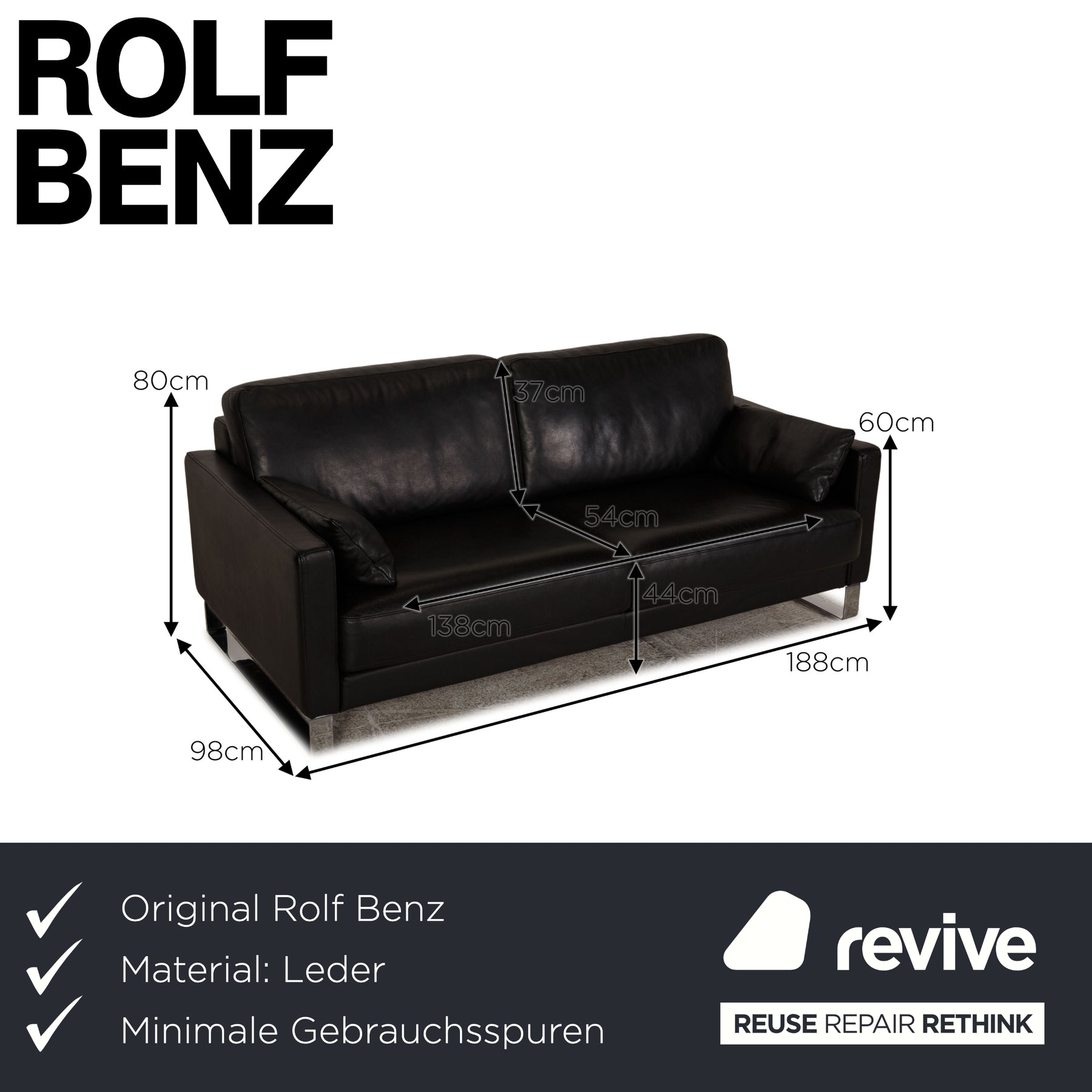 Rolf Benz Ego leather sofa black two-seater couch