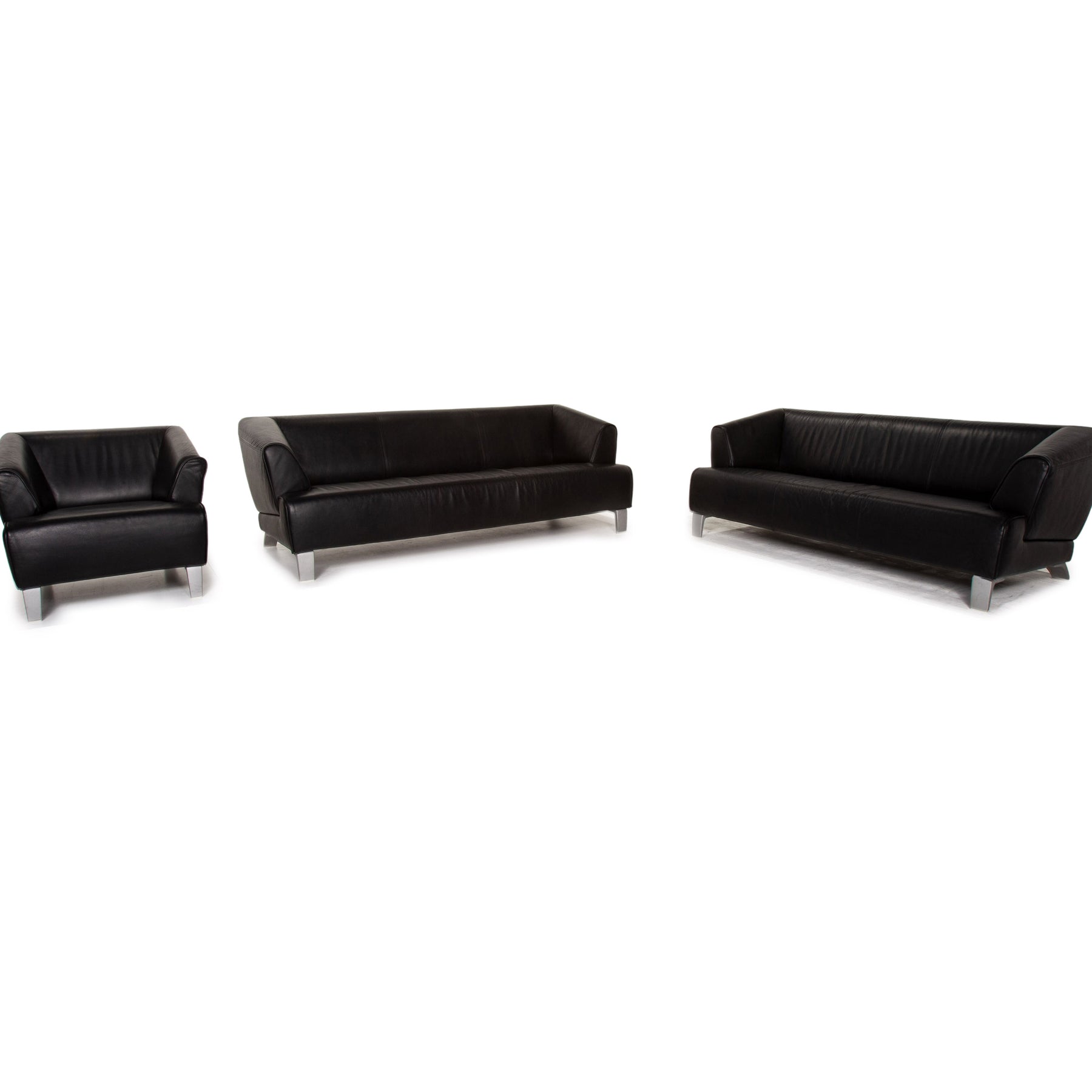 Rolf Benz leather sofa set black 1x three-seater 1x two-seater 1x armchair #15511
