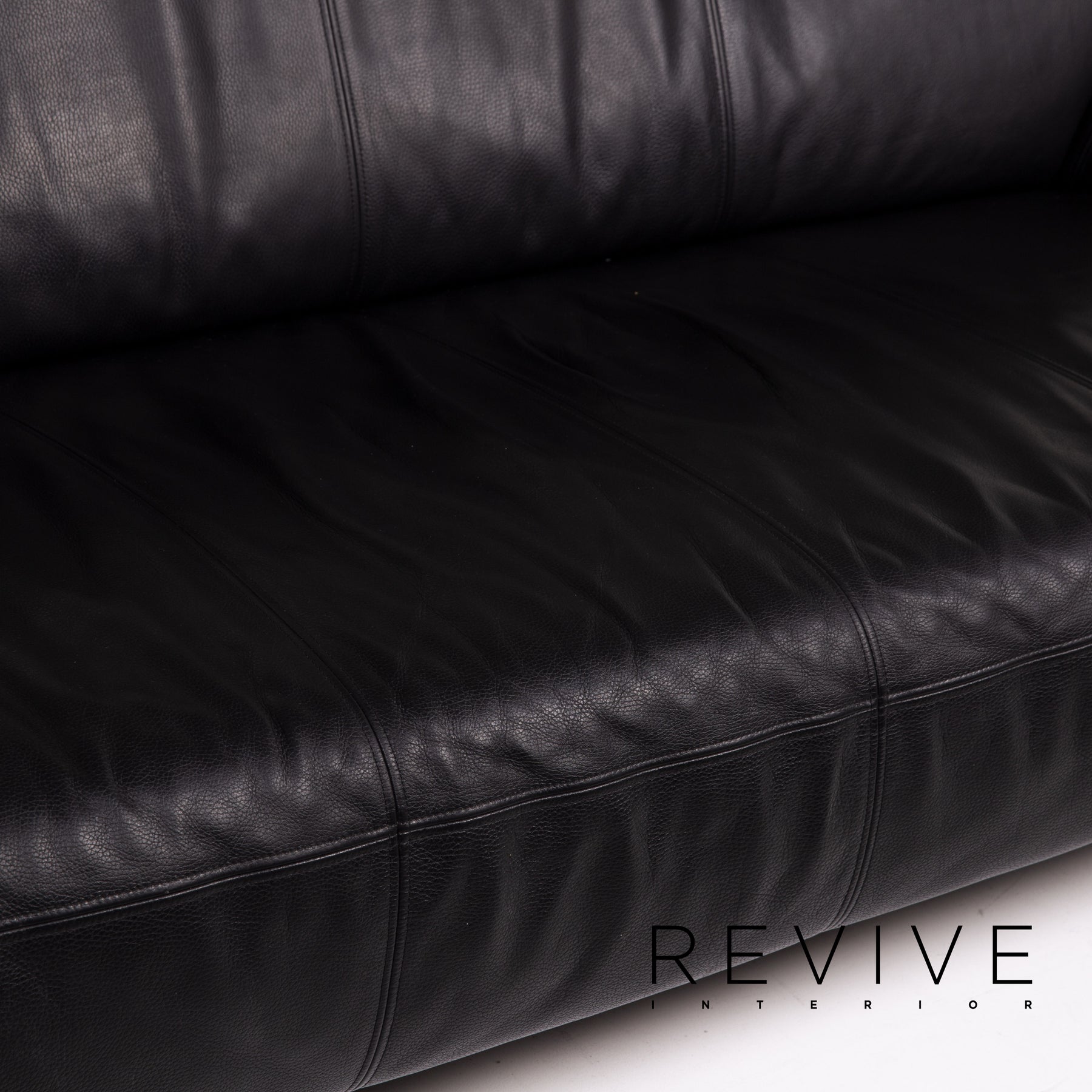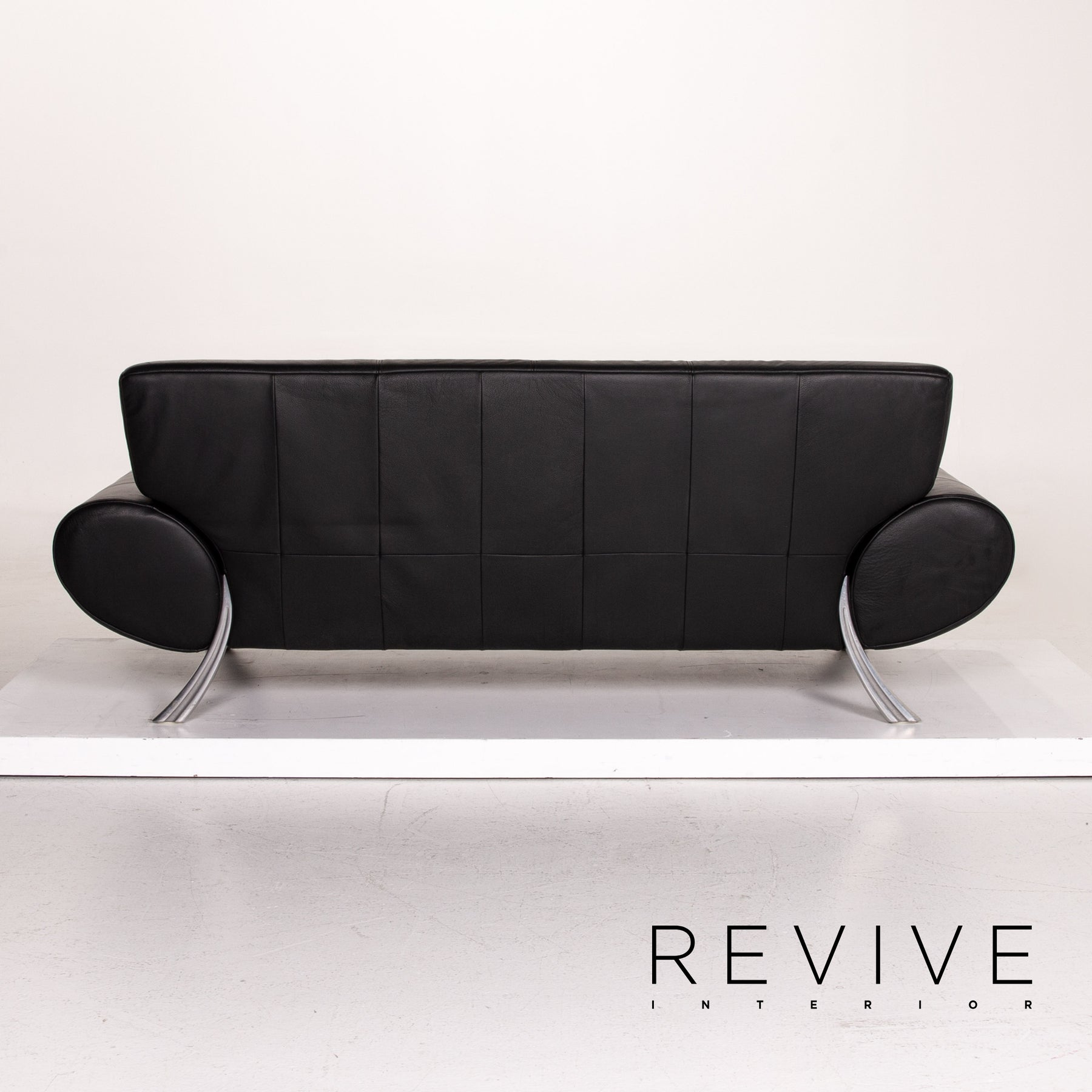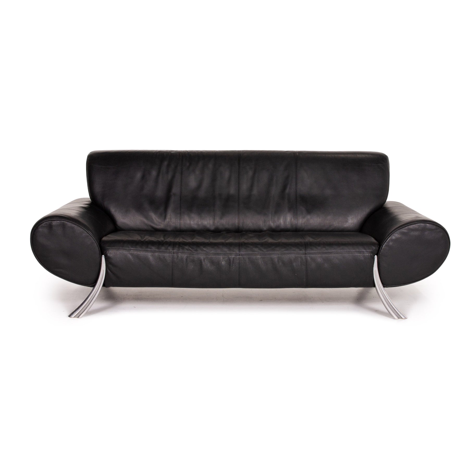 Rolf Benz Leather Sofa Black Three Seater Couch #14996
