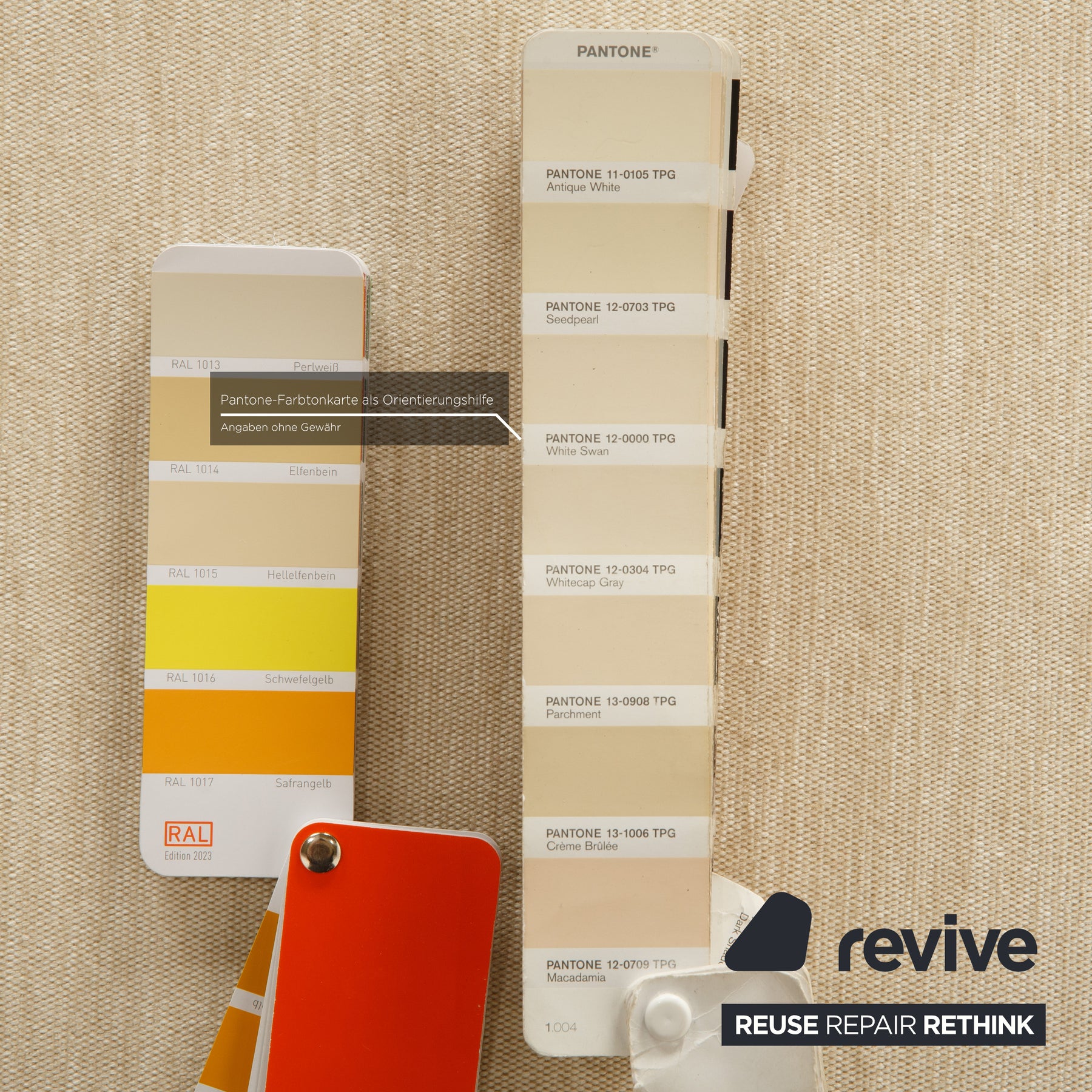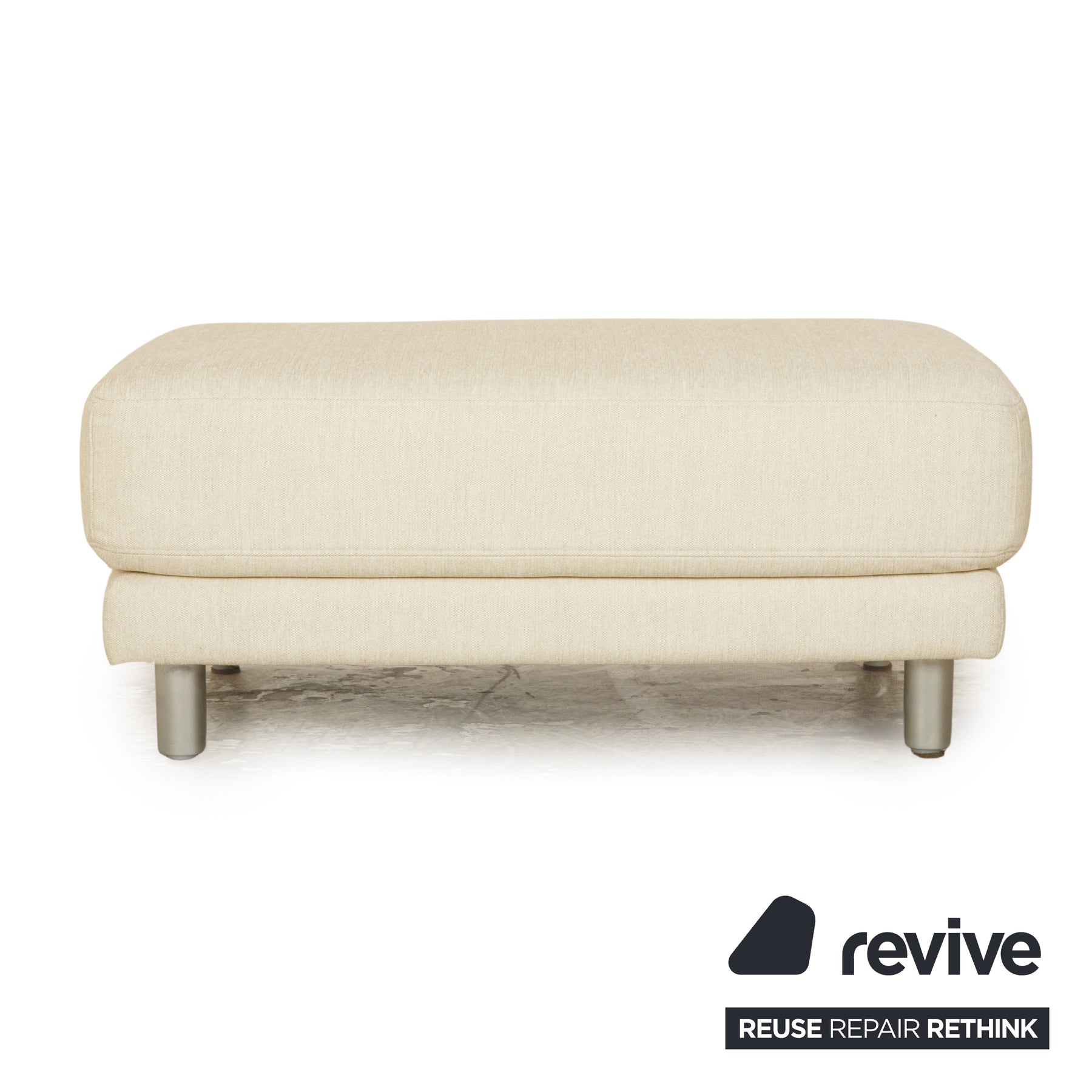 The Onda stool by Rolf Benz is covered with a cream-colored fabric and stands on round metal feet.