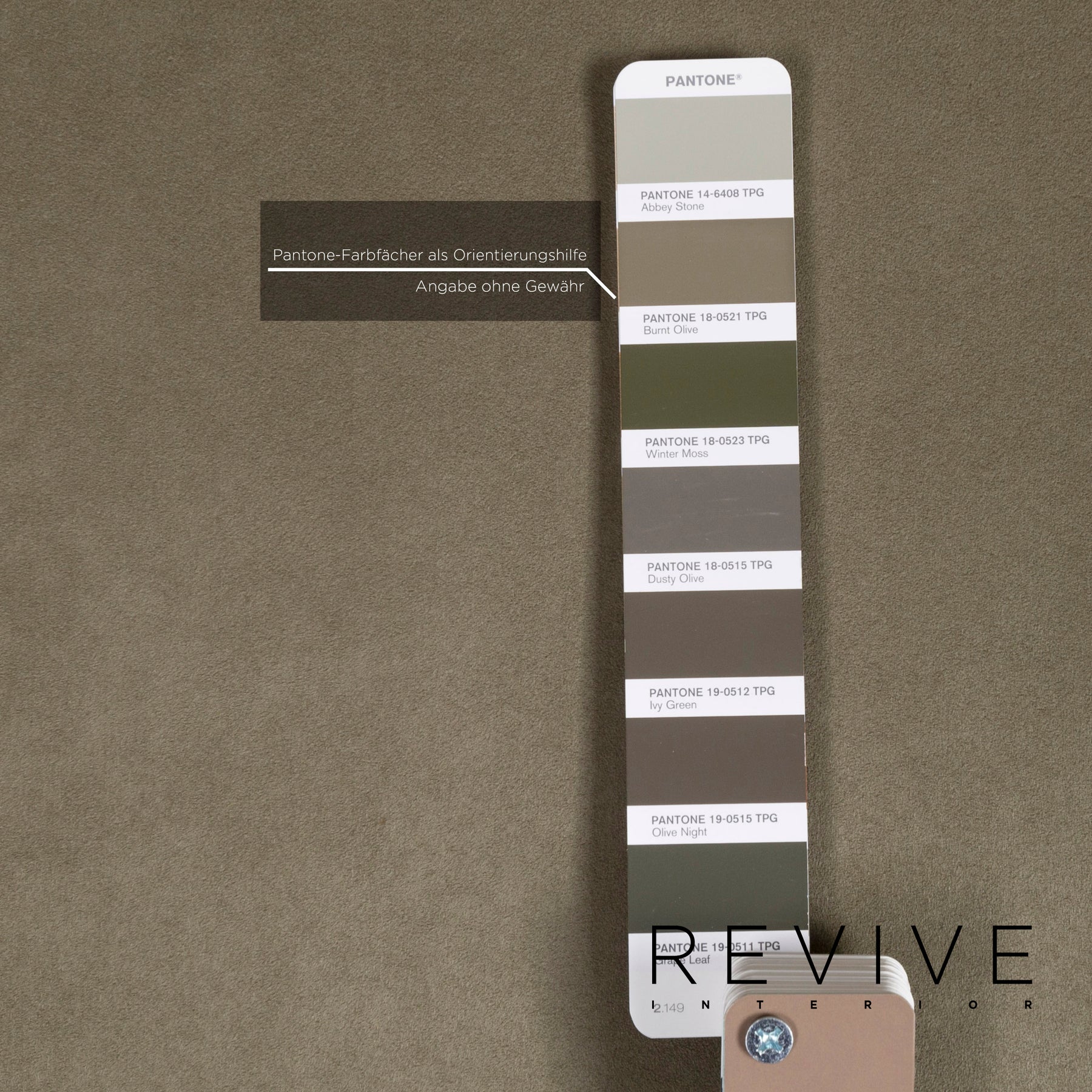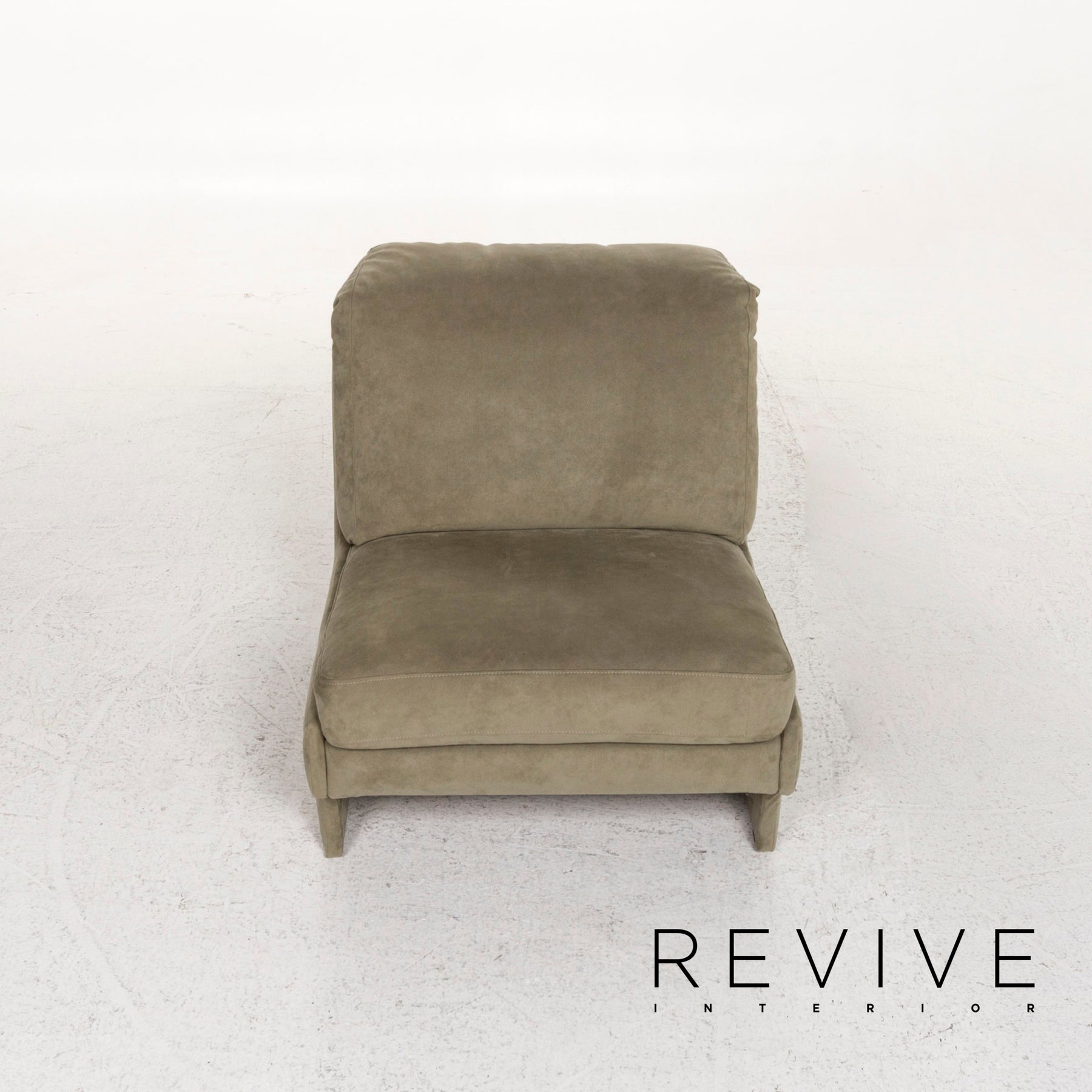 The Rolf Benz armchair is covered with a green fabric and completely covered with it.