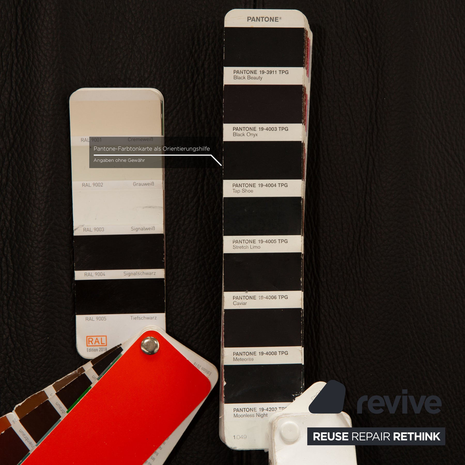The Vida sofa by Rolf Benz is covered in black genuine leather and stands on metal feet. The three-seater impresses with its timeless design and practical armrests.