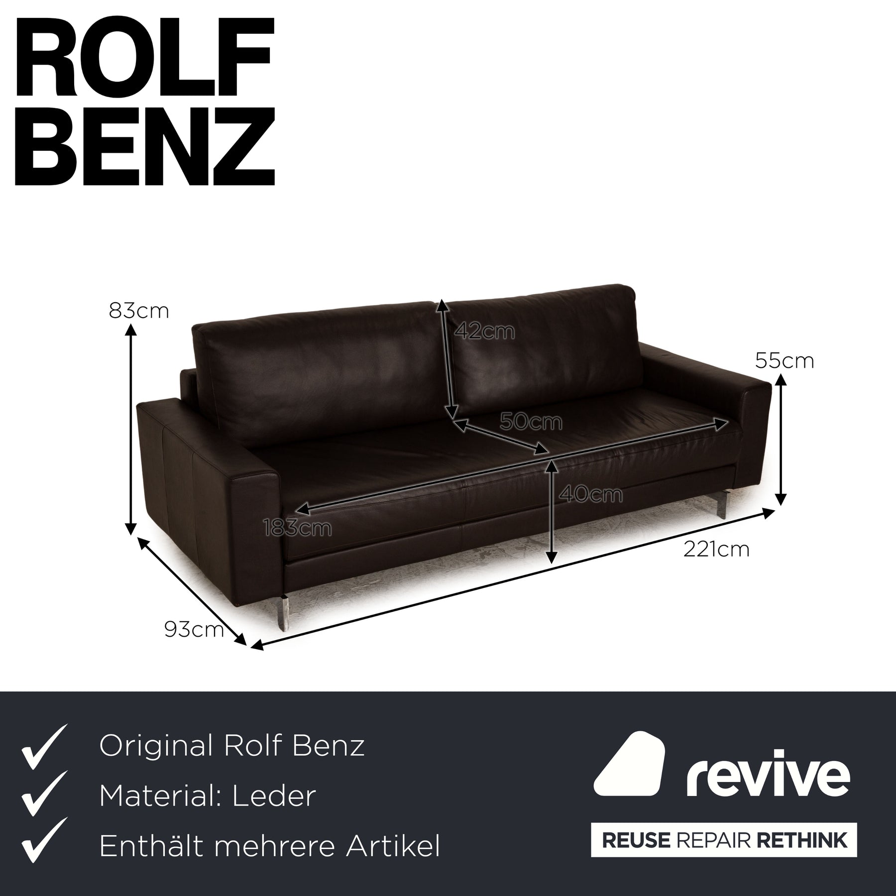 Rolf Benz Vida leather sofa set brown two-seater dark brown sofa couch