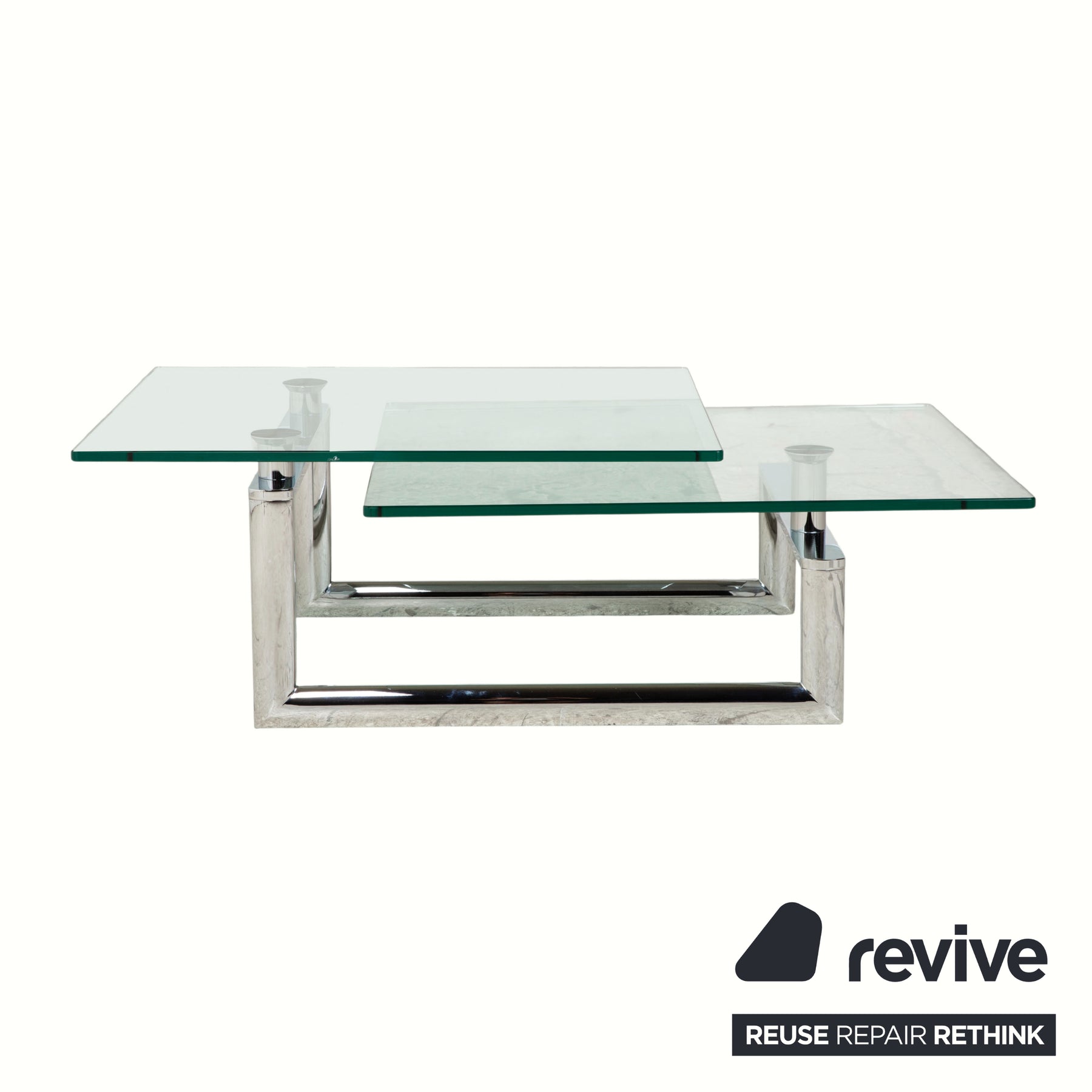 This Ronald Schmitt coffee table is perfect for you if you want a clean and extremely high-quality look. The combination of clear glass and the chrome frame gives the table a pleasing visual lightness. The design is absolutely timeless and instantly conveys that elegant, uncluttered feeling without appearing stiff.