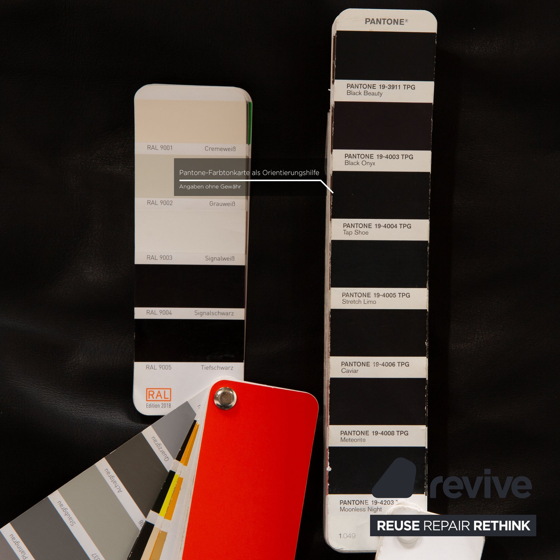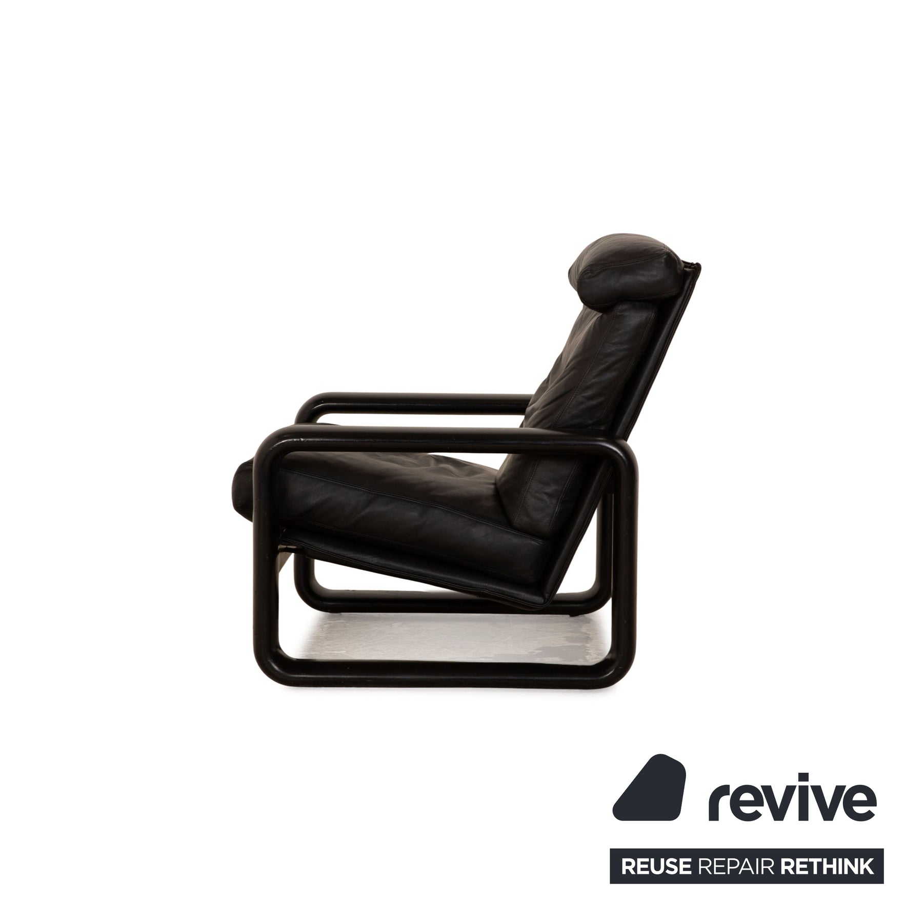 The Hombre armchair from Rosenthal is covered in black genuine leather and has floor-to-ceiling armrests. The classic design and rounded edges set it apart.