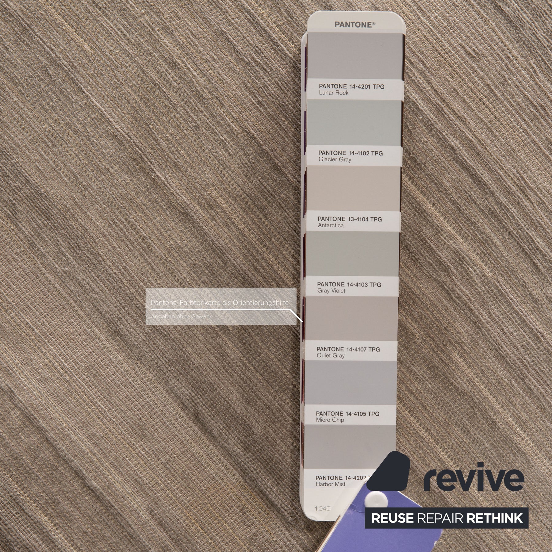 The Wave Sofa by Saporiti Italia is upholstered in a gray fabric and stands on round metal feet. The minimalist design and the rounded edges characterize the two-seater.