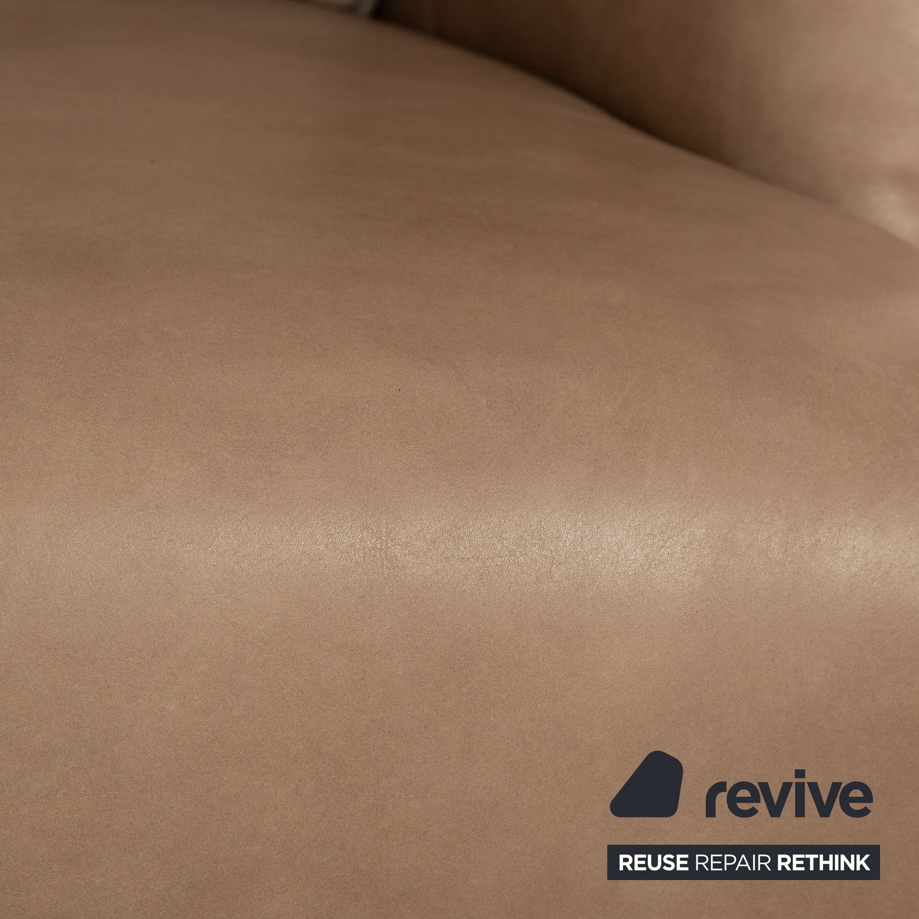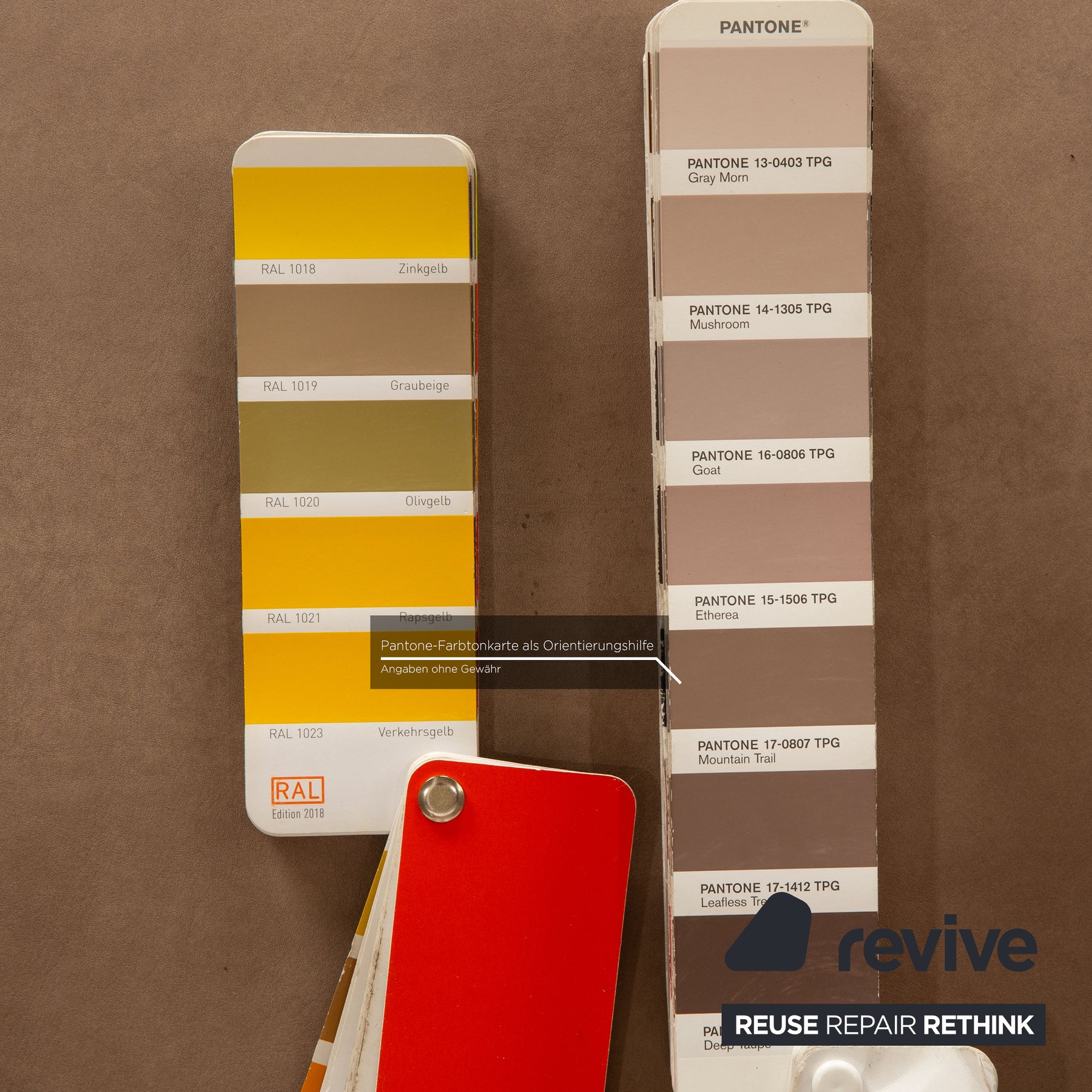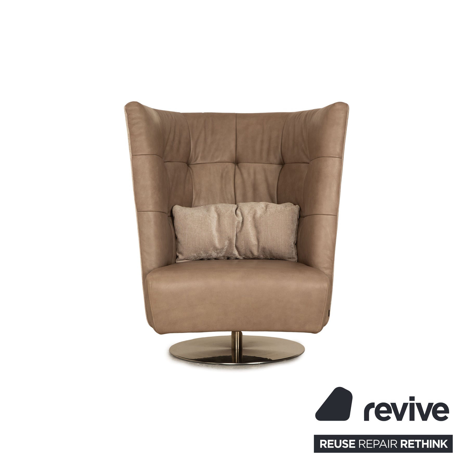 The Matheo armchair by Signet is covered with a brown, high-quality aniline genuine leather and stands on a silver metal base. It is characterized by its stylish design and high backrest.