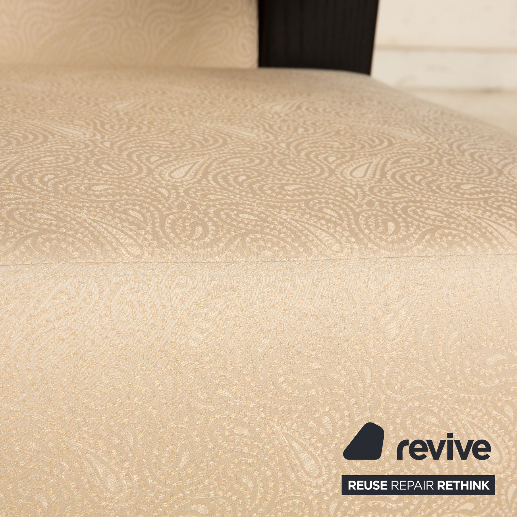 The F51 Gropius armchair from Tecta is upholstered in cream-colored genuine leather and stands on wooden legs. It impresses with its modern design.