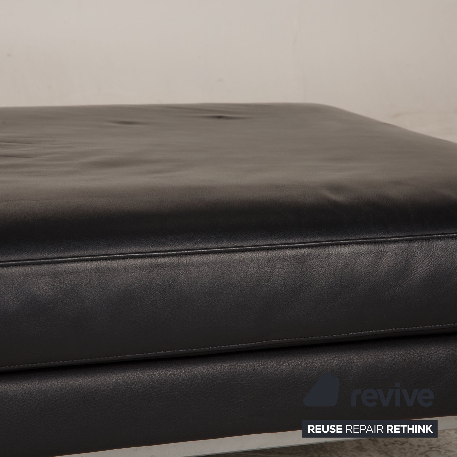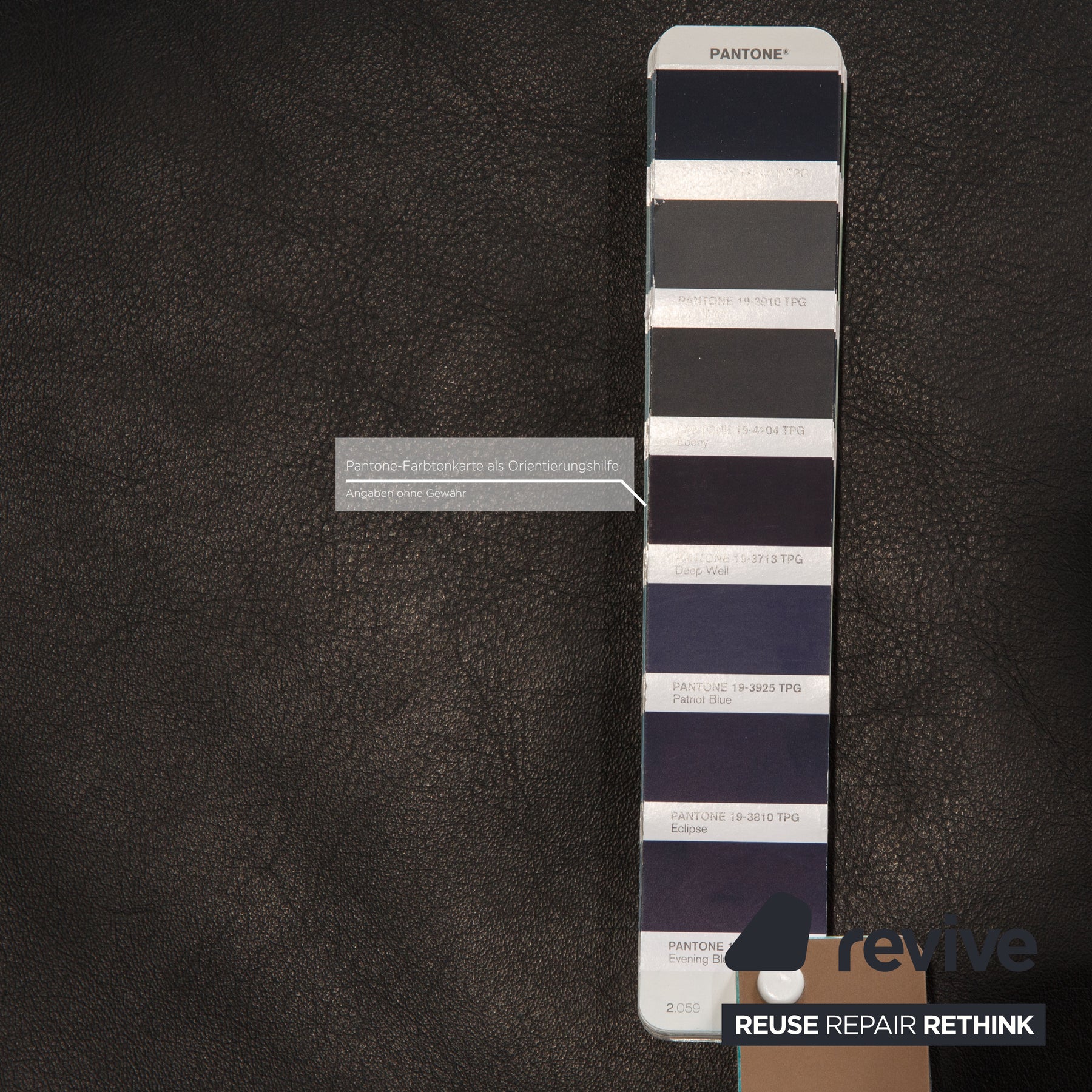 The Good Time stool by Walter Knoll is covered with dark blue real leather and stands on silver metal feet. The classic, timeless design distinguishes it.