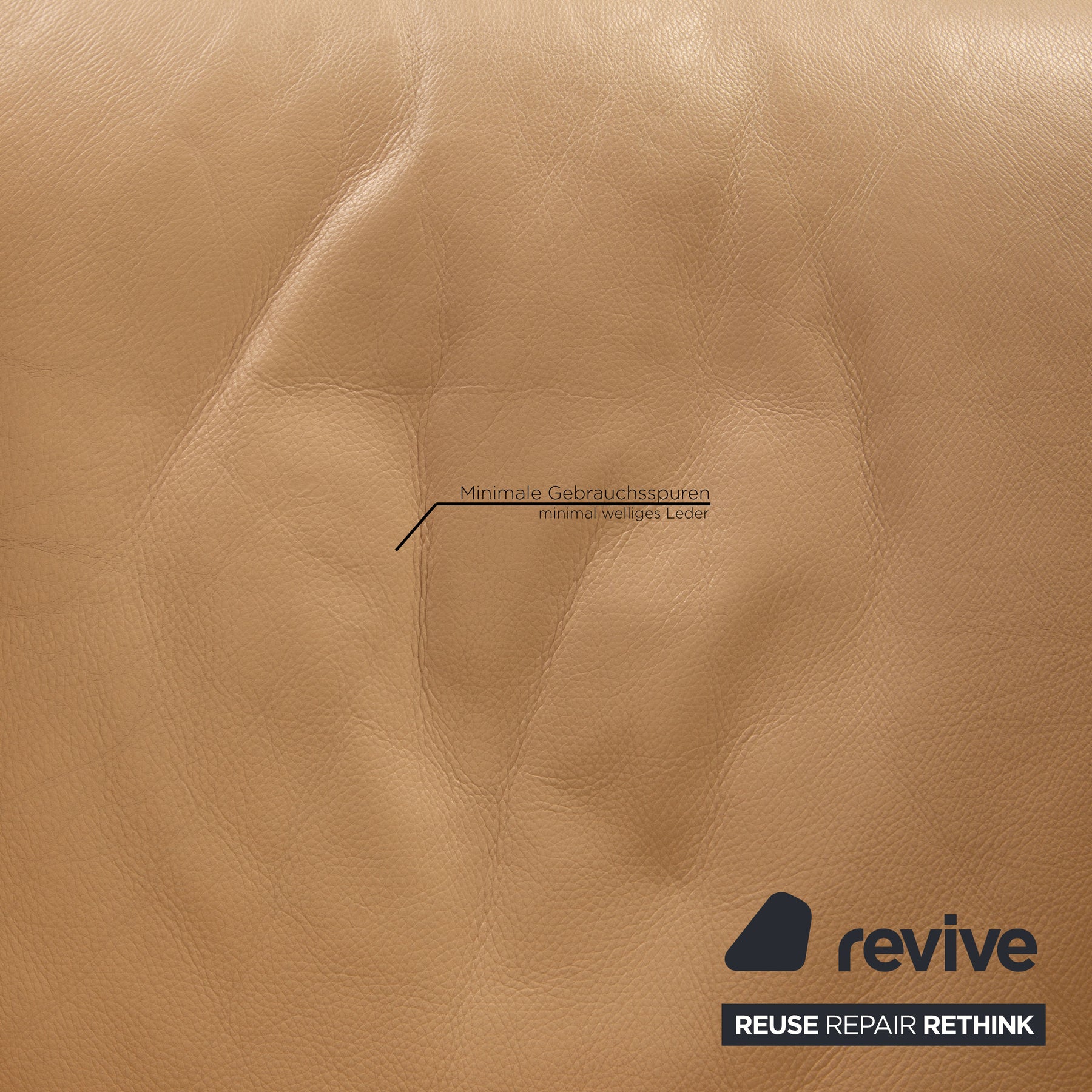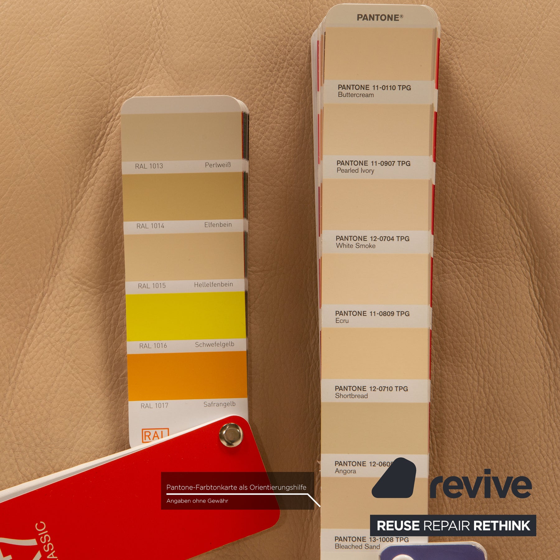 The Henry armchair by Walter Knoll is covered with beige genuine leather and stands on wooden feet. It is characterized by the classic design and the rounded corners and edges.
