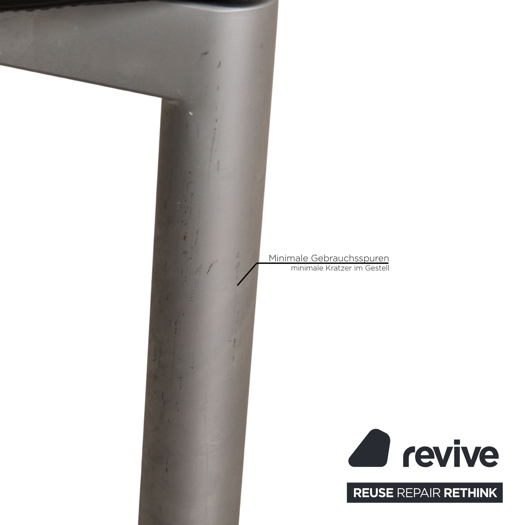 The two-seater Jason by Walter Knoll is upholstered in black genuine leather and stands on narrow, silver metal feet. It is characterized by the angular, linear design and the timeless look.