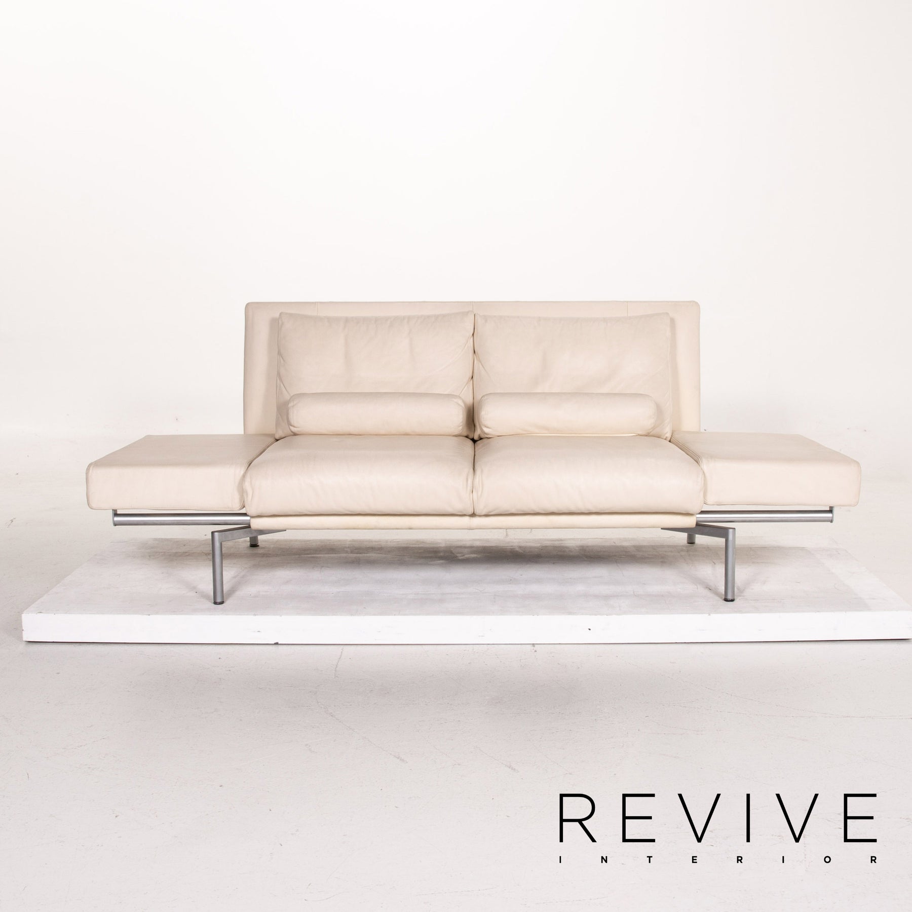Walter Knoll leather sofa cream two-seater function sleeping function sofa bed couch #14589