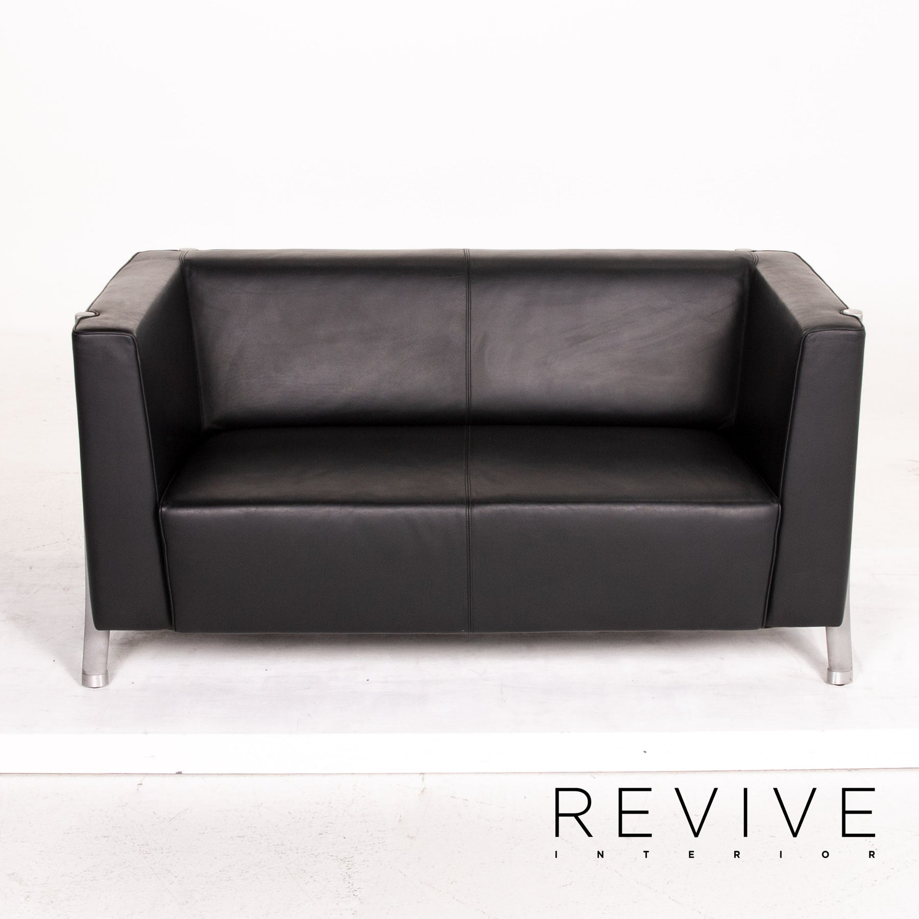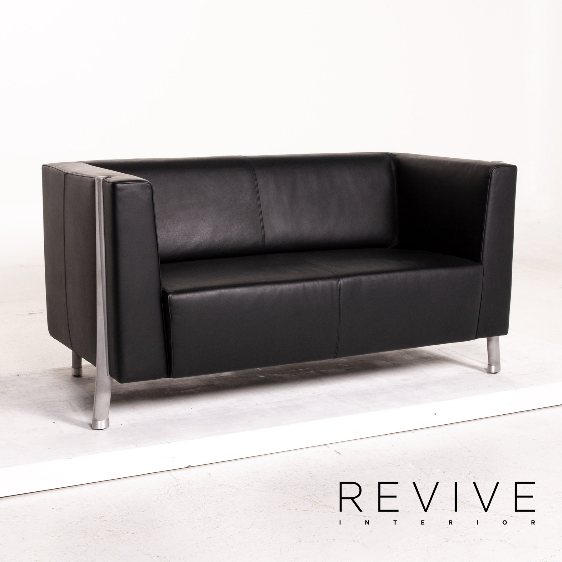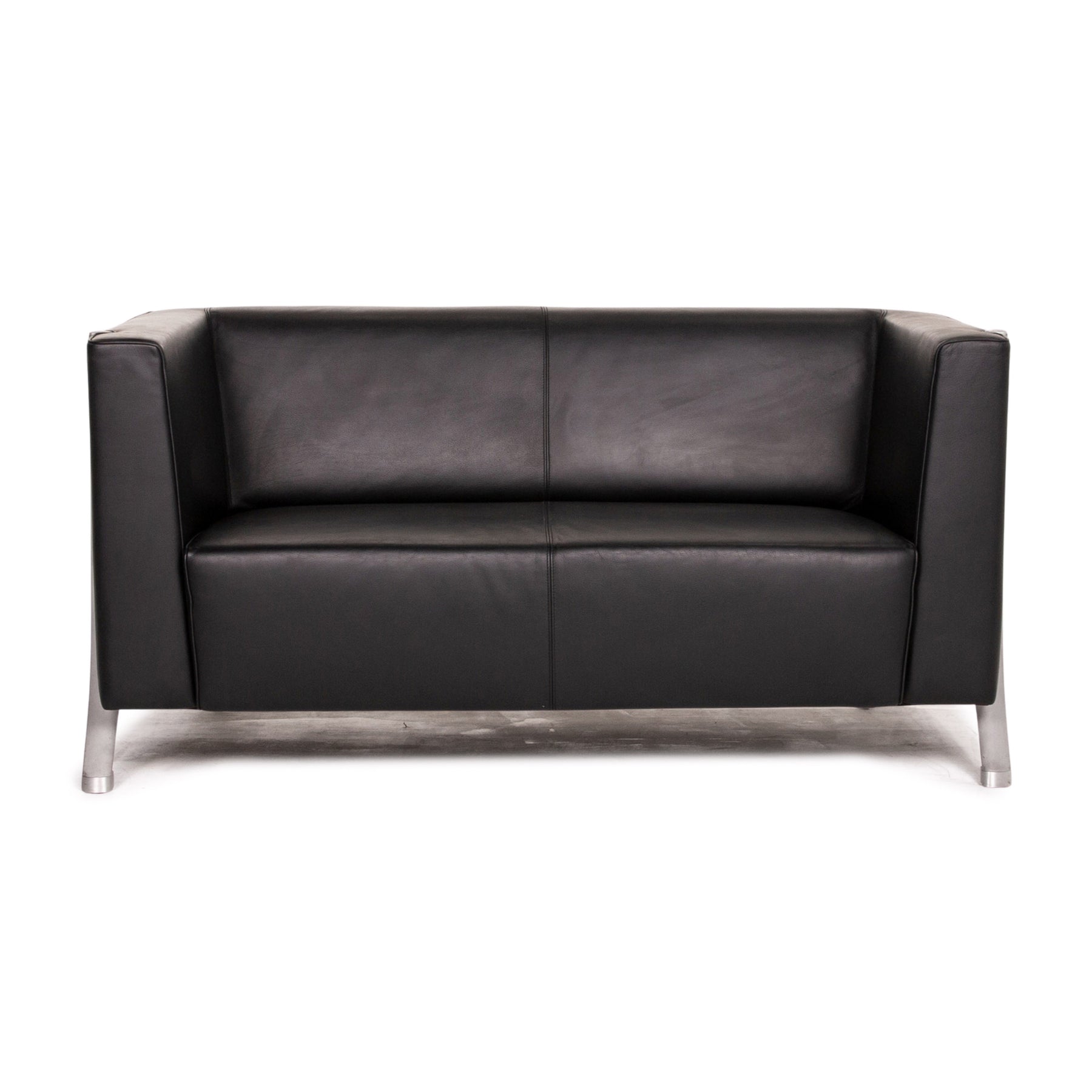 Walter Knoll Leather Sofa Black Two Seater Couch #14858