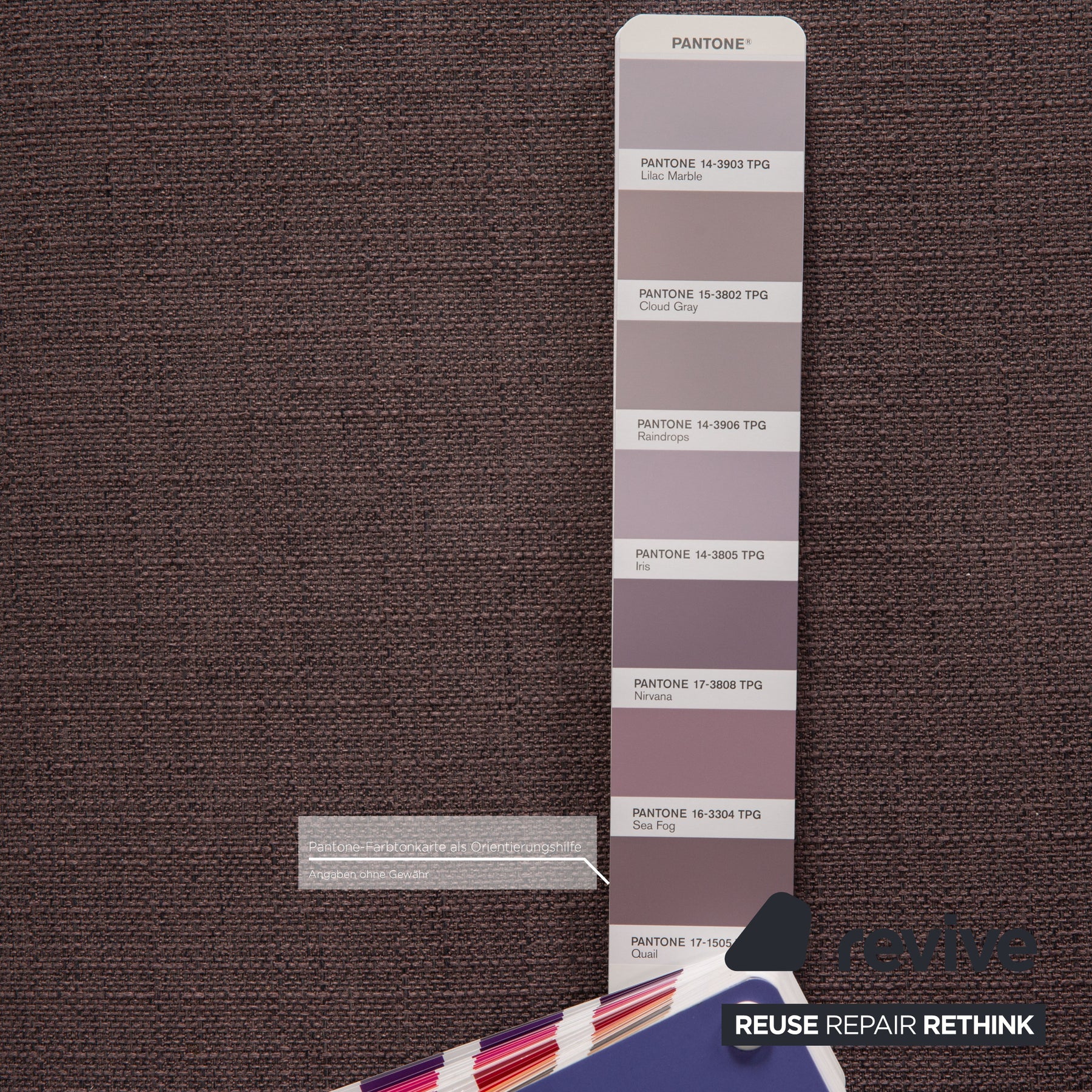 The Granada Sofa by Who's Perfect is upholstered in a purple fabric and stands on small metal feet. The corner sofa is characterized by its minimalist design and rounded edges.