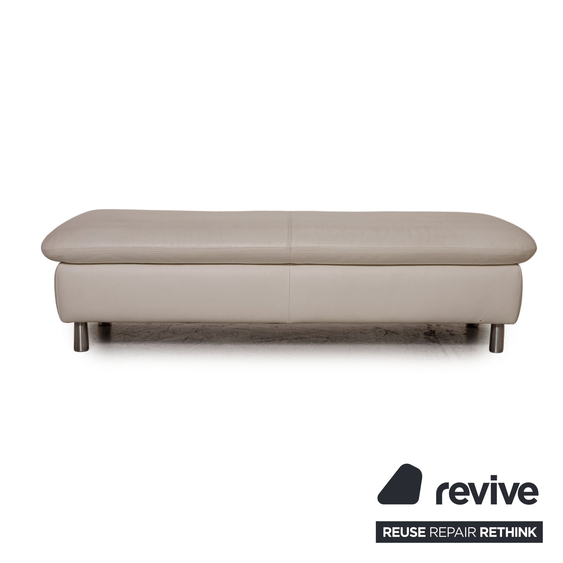 The stool Amore by Willi Schillig is covered with a cream-colored fabric and stands on round, silver metal feet. It is characterized by its comfortable size and the rounded edges and corners that give the stool a classic design. The stool can be folded up and offers additional storage space inside.