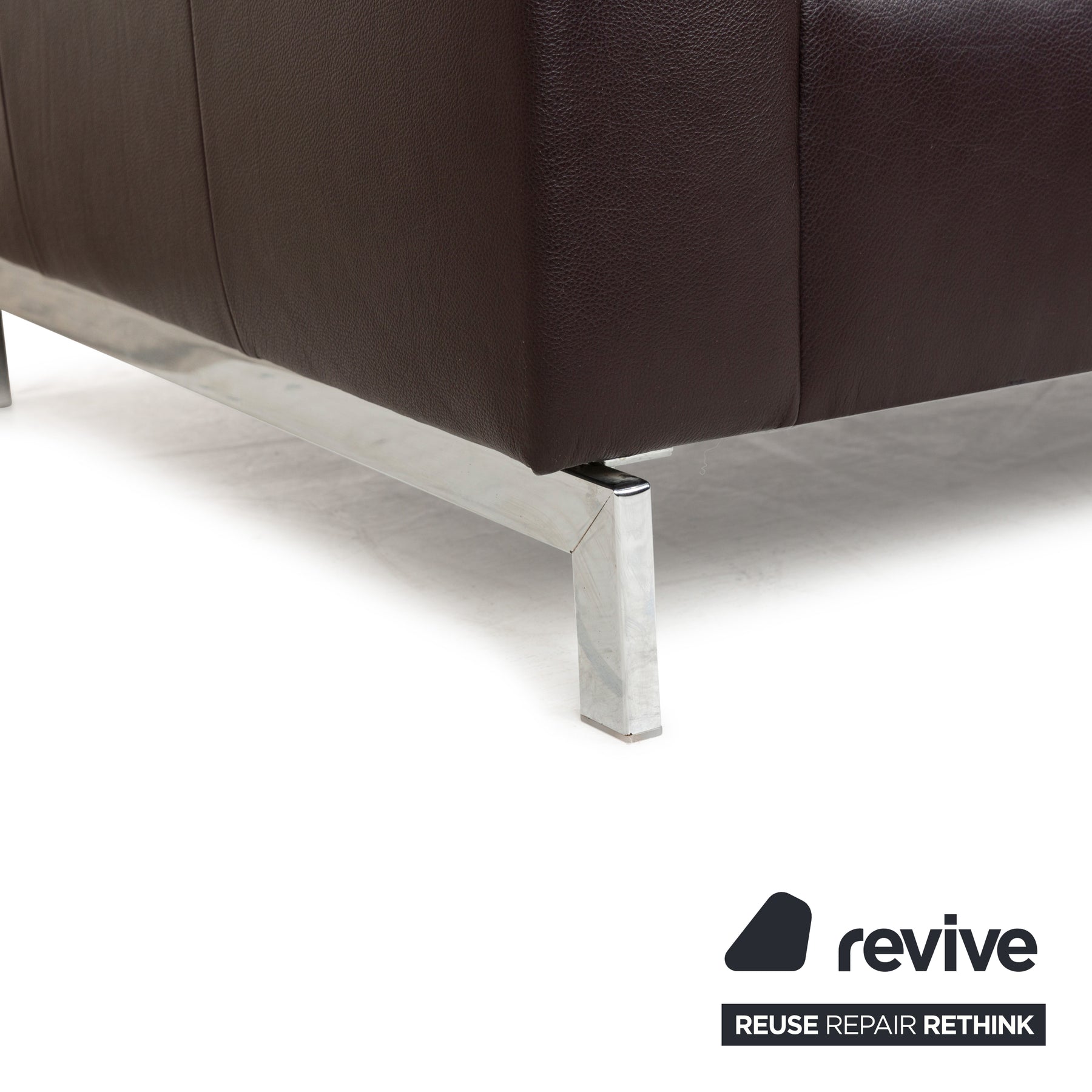 The three-seater by Willi Schillig is covered in brown leather and stands on elegant metal elements. The contrast of the different materials and the classic, unobtrusive design characterize this sofa. High backrests promise great comfort.
