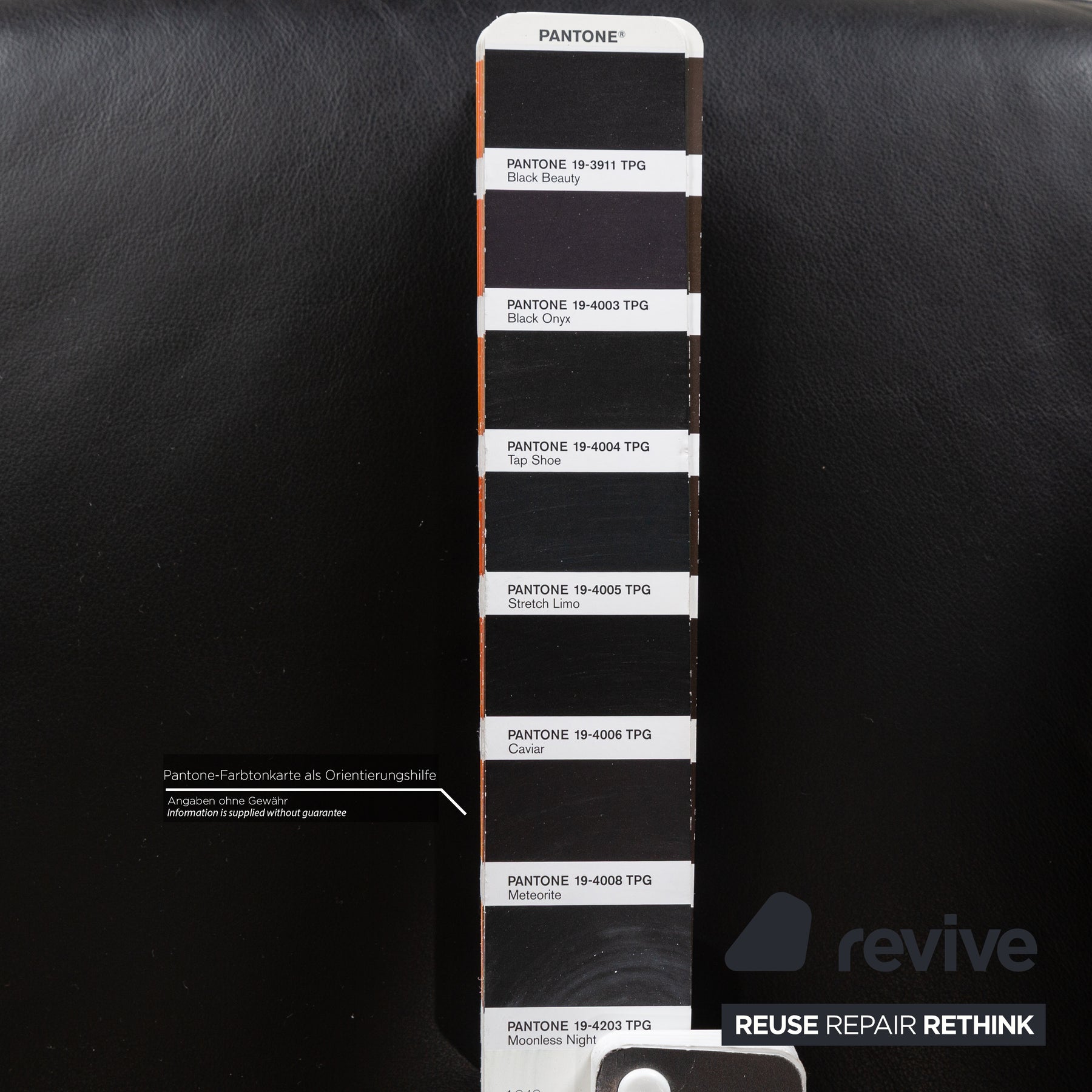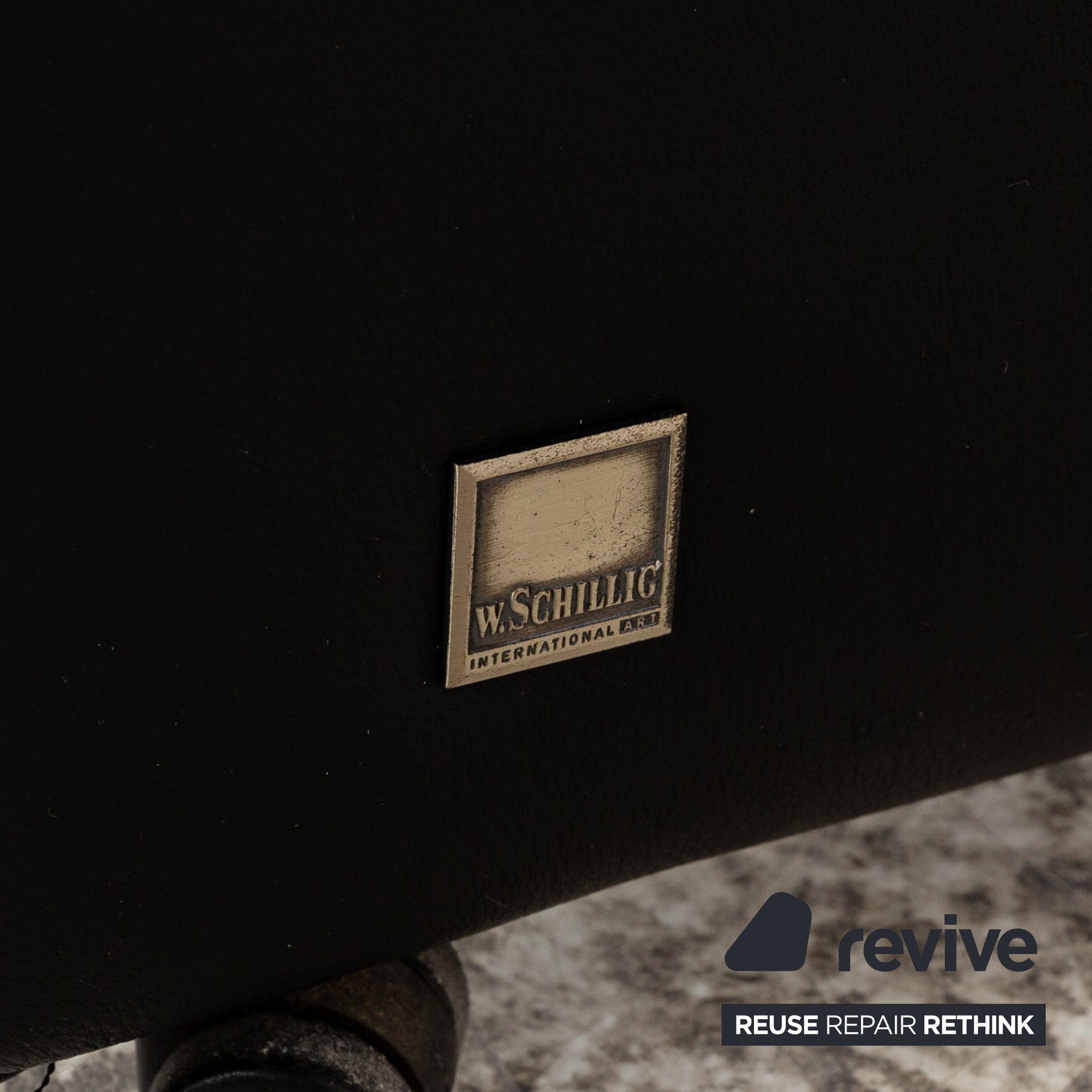 The armchair by Willi Schillig is covered with black genuine leather and stands on small castors. It is characterized by its simple, classic design and straight-lined appearance.