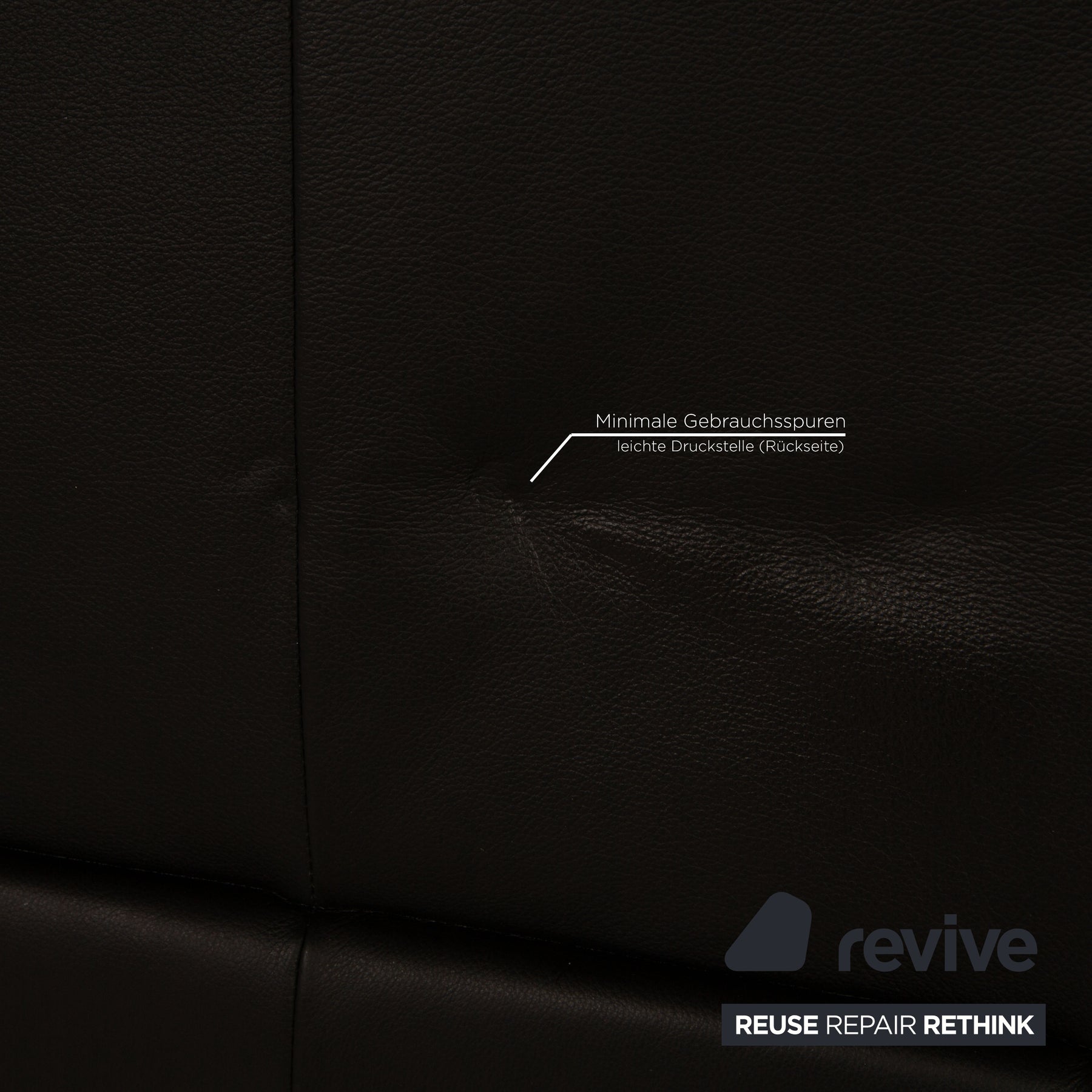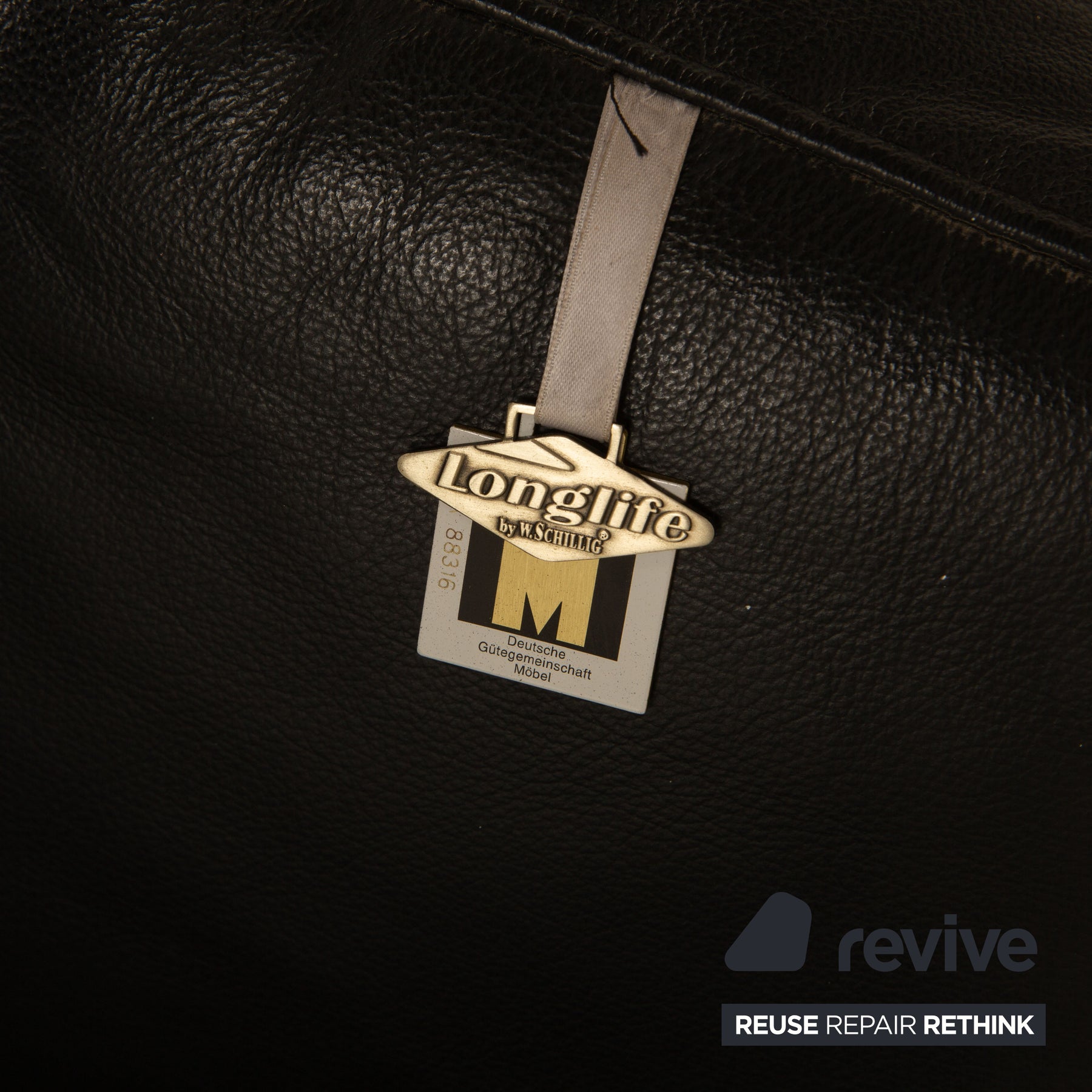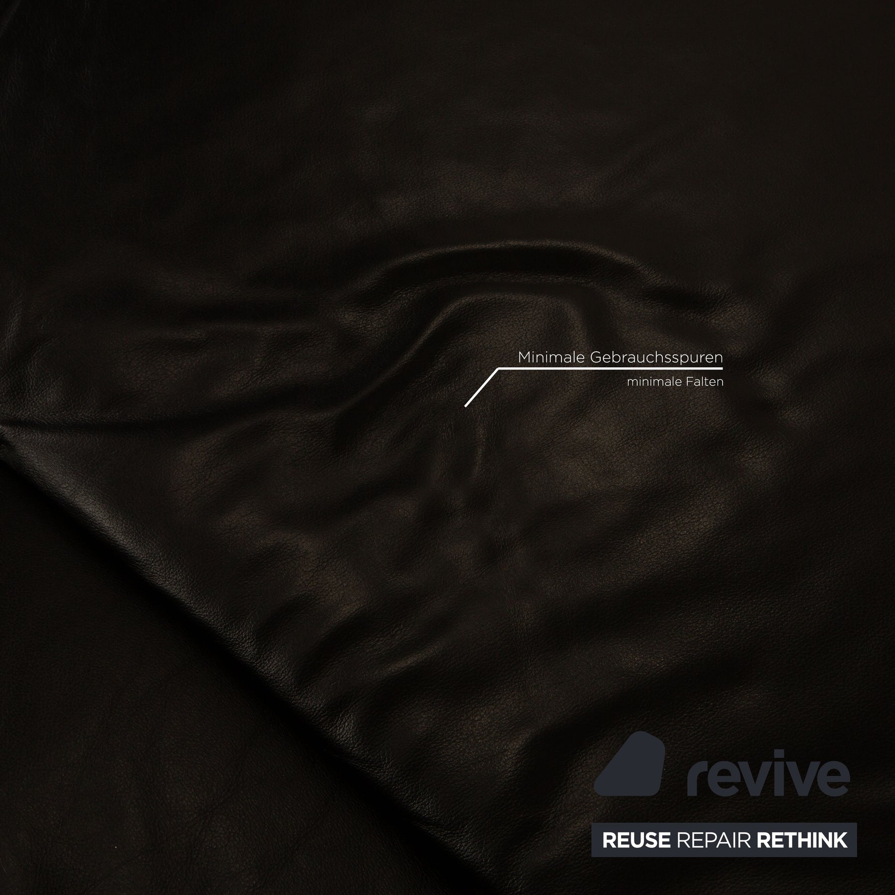 The Willi Schillig sofa set is covered with black genuine leather and stands on narrow metal feet. They are characterized by the rounded edges and the timeless design.