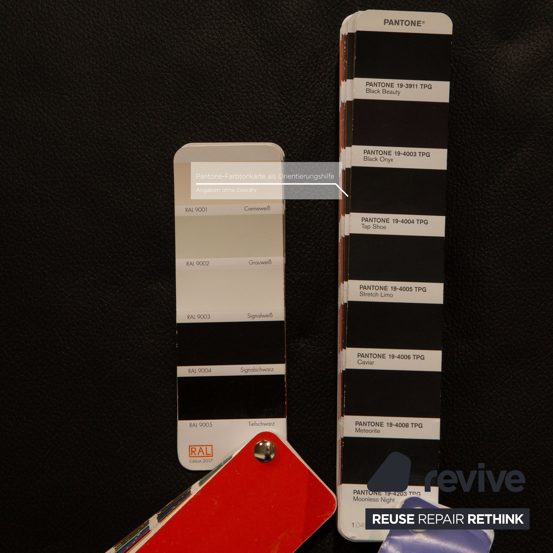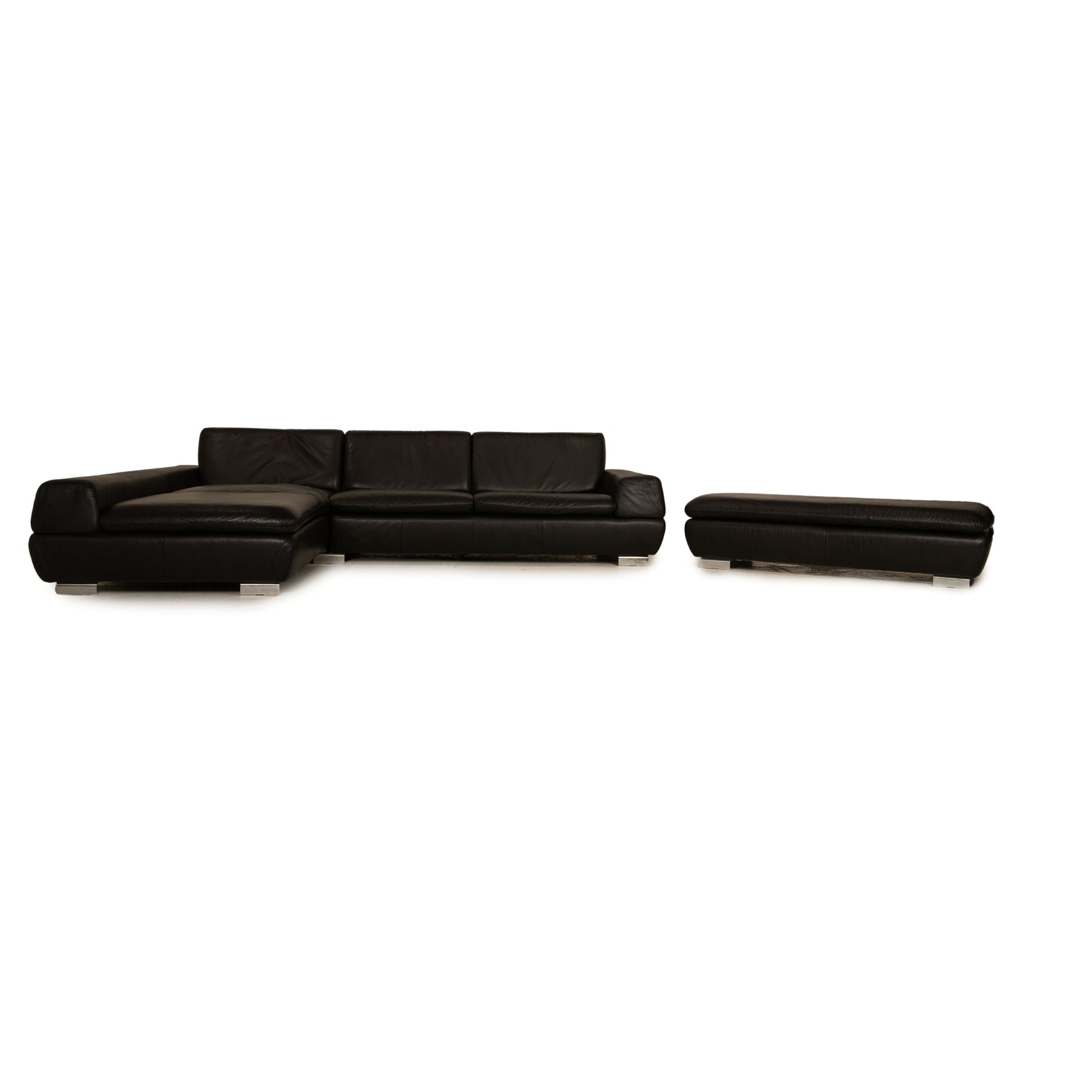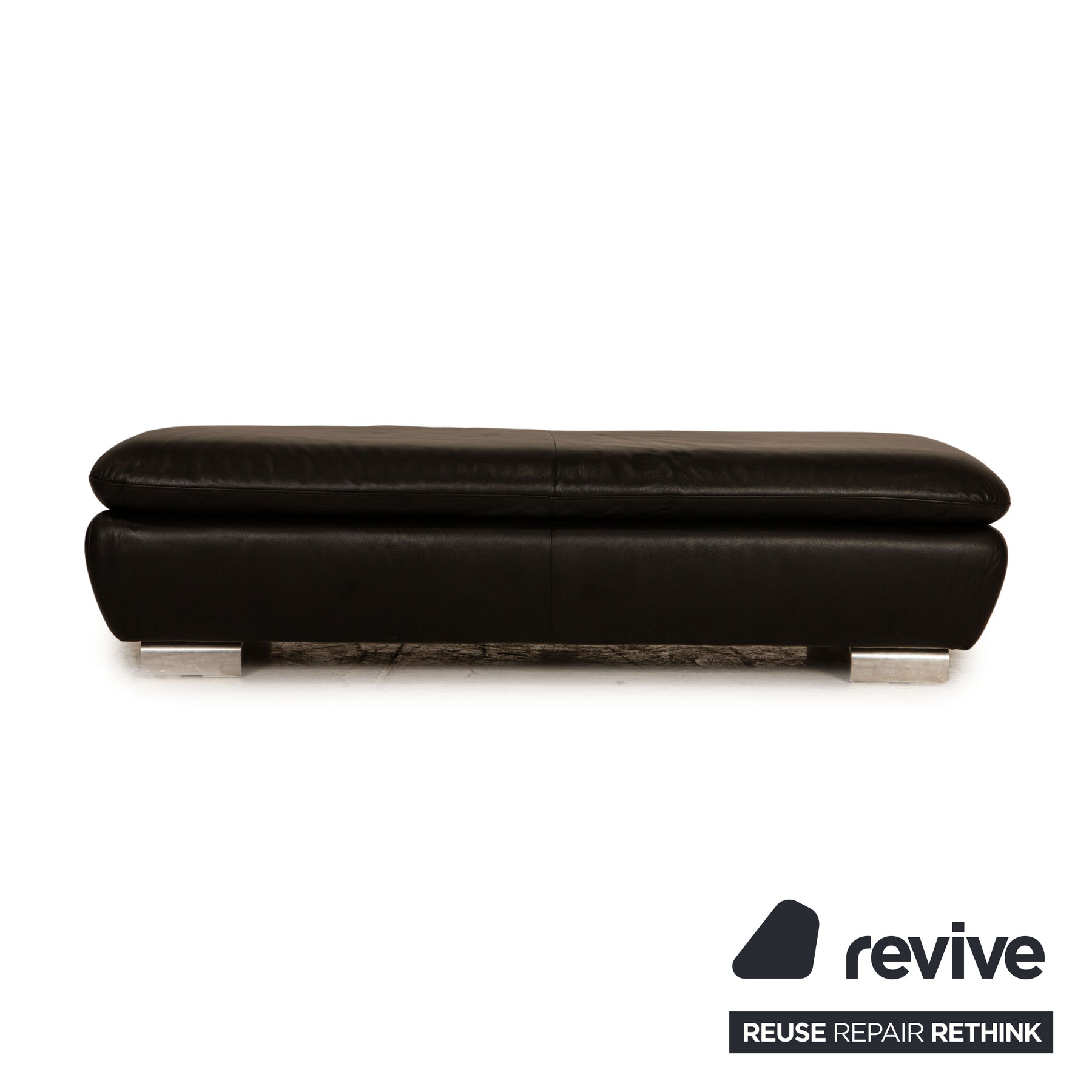 The Willi Schillig sofa set is covered with black genuine leather and stands on narrow metal feet. They are characterized by the rounded edges and the timeless design.
