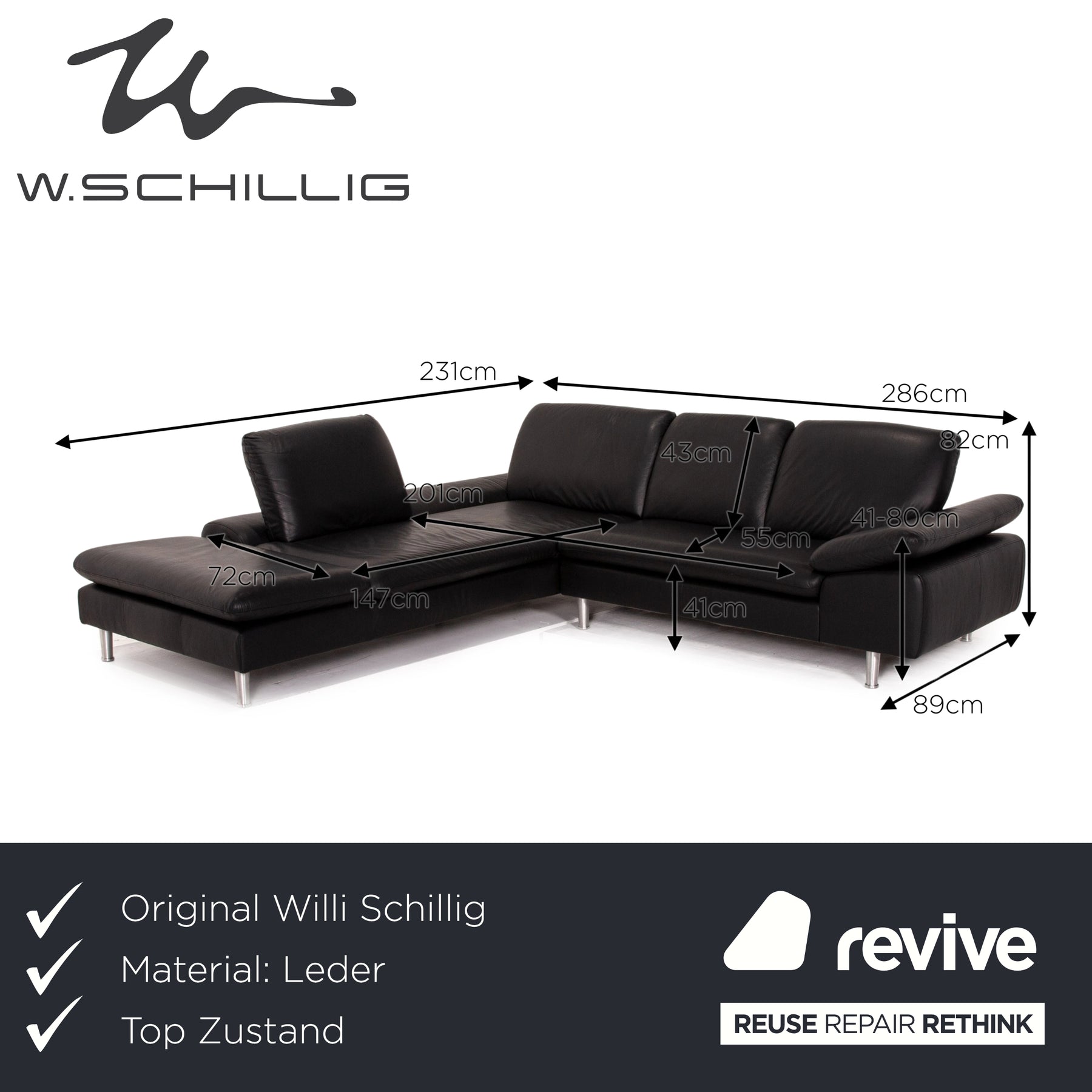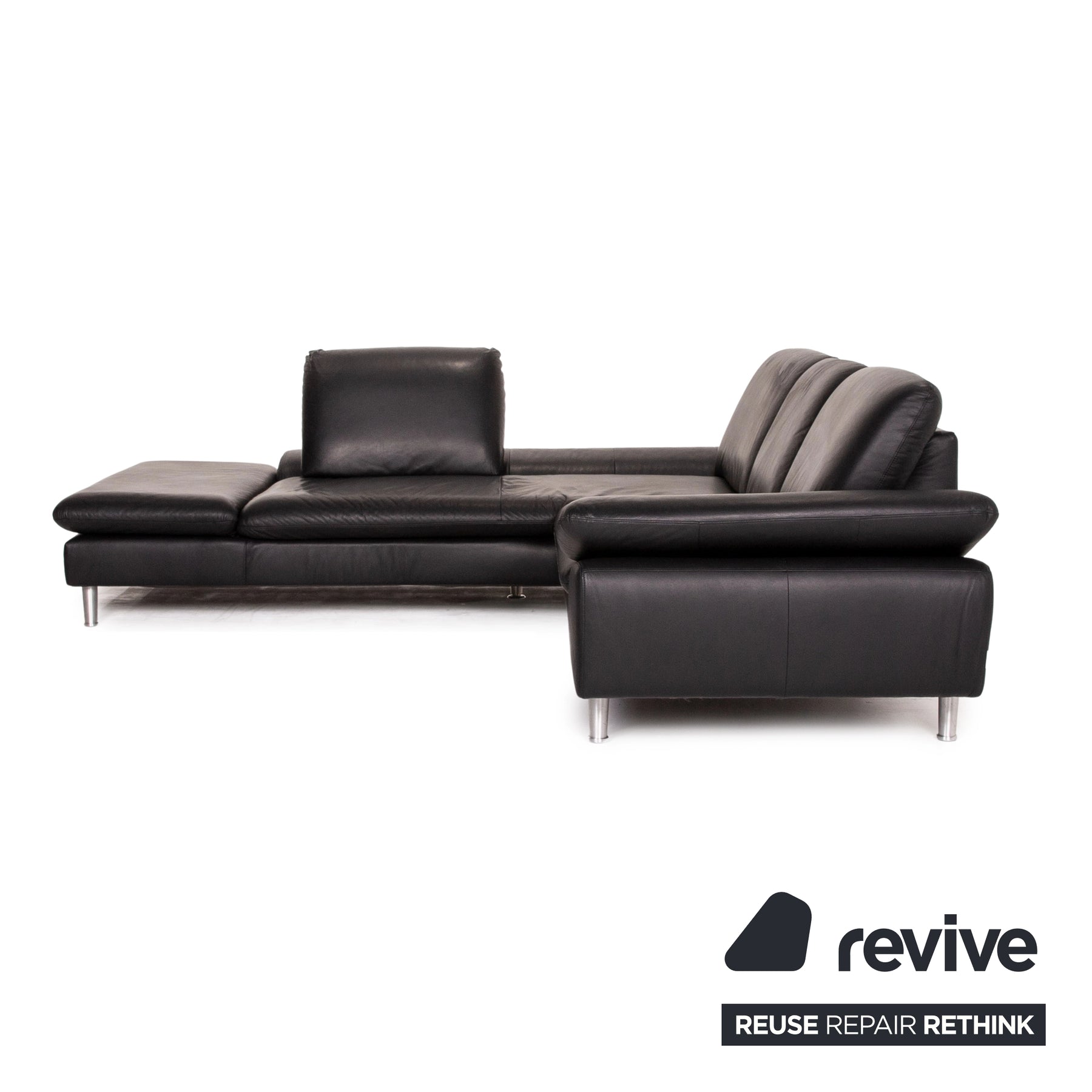 Willi Schillig Loop Leather Corner Sofa Black Function Couch #14834