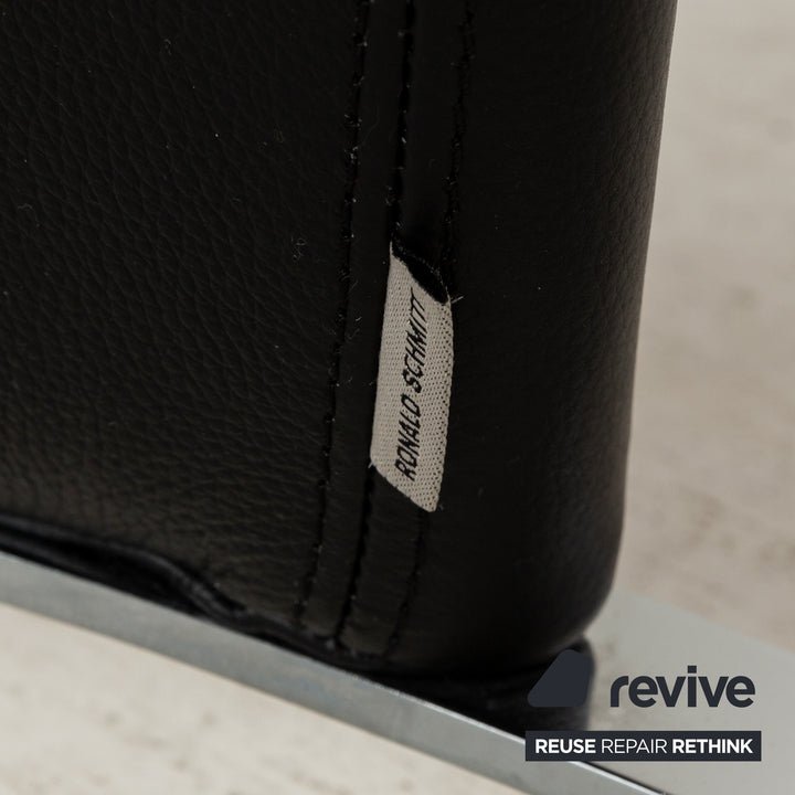 L'ensemble de chaises RST 34 de Ronald Schmitt est recouvert de cuir véritable noir et repose sur des pieds en métal argenté. Il se caractérise par des accoudoirs confortables et un design arrondi.