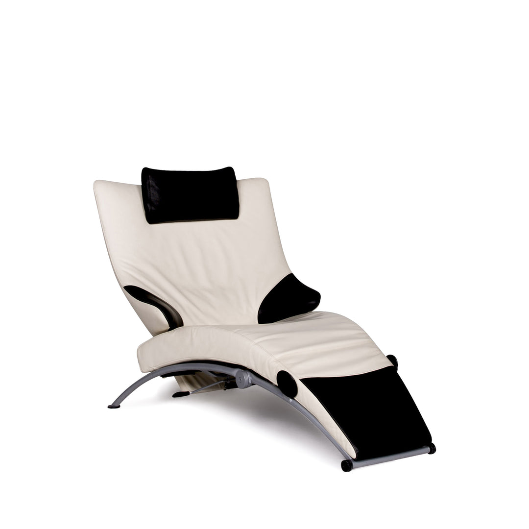 Nous vous présentons WK Wohnen Solo 699 fauteuil chaise longue design en cuir blanc noir canapé en cuir véritable #8638.