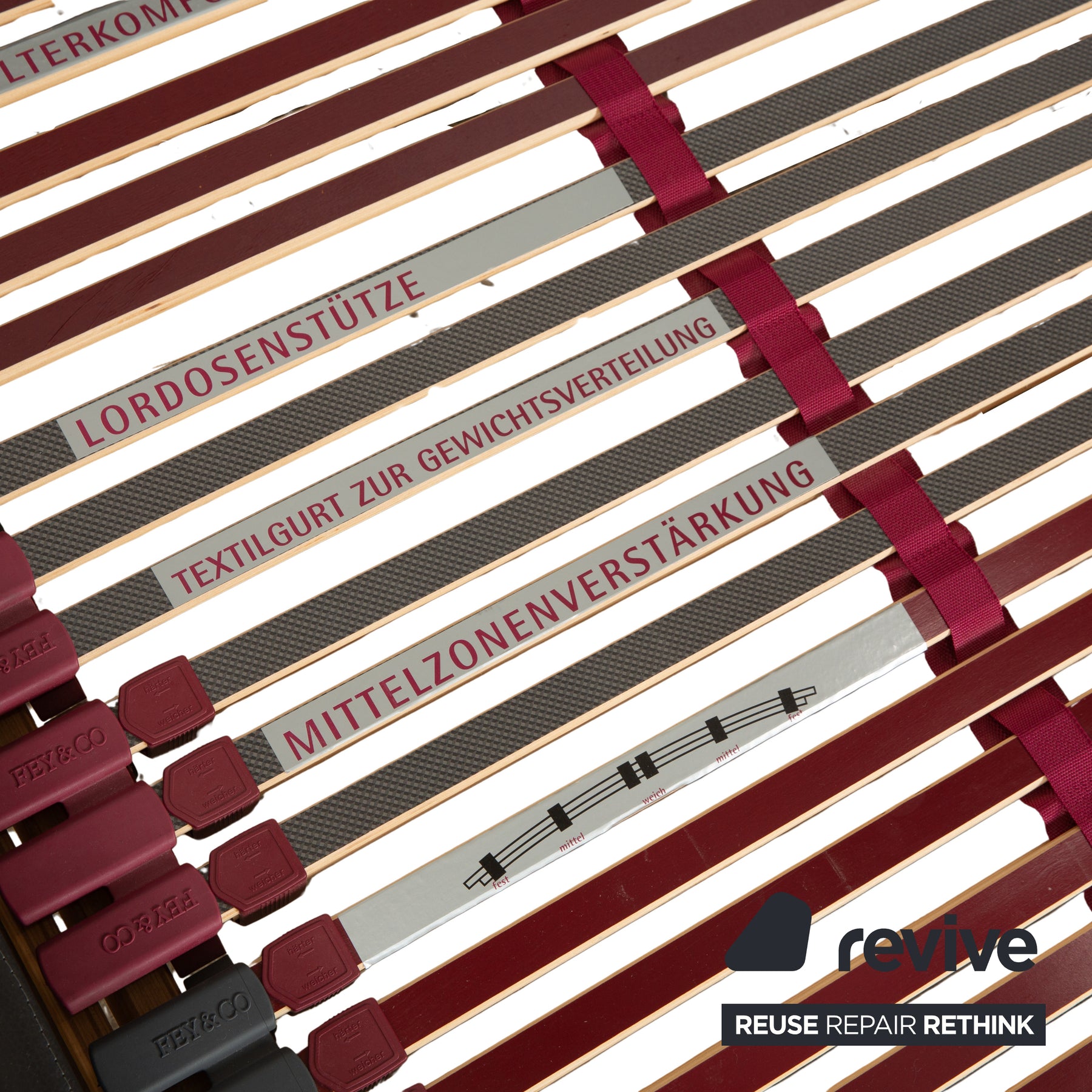 Ce lit est doté de deux sommiers à lattes indépendants, réglables manuellement au niveau de la tête et des pieds. Chaque côté peut ainsi être adapté individuellement à la position assise ou allongée, pour un confort optimal. La structure en lattes de bois, finement travaillée et dotée de ressorts, offre un soutien uniforme du corps et crée une base solide pour un sommeil ergonomique et confortable.