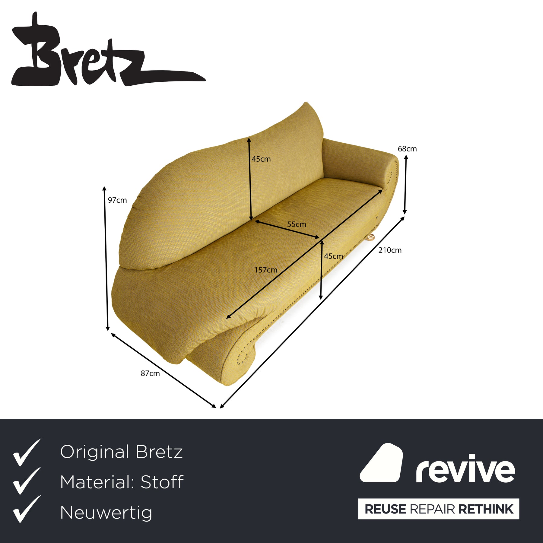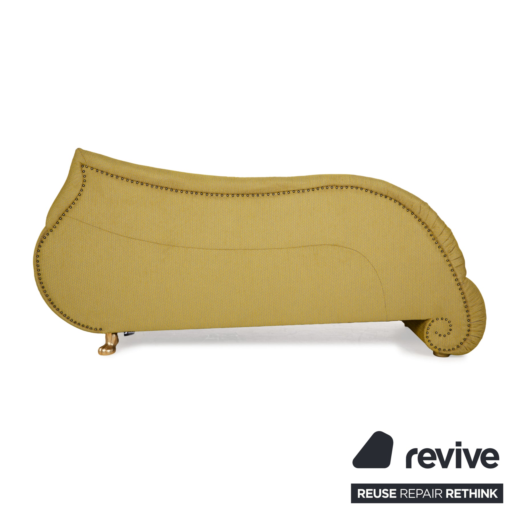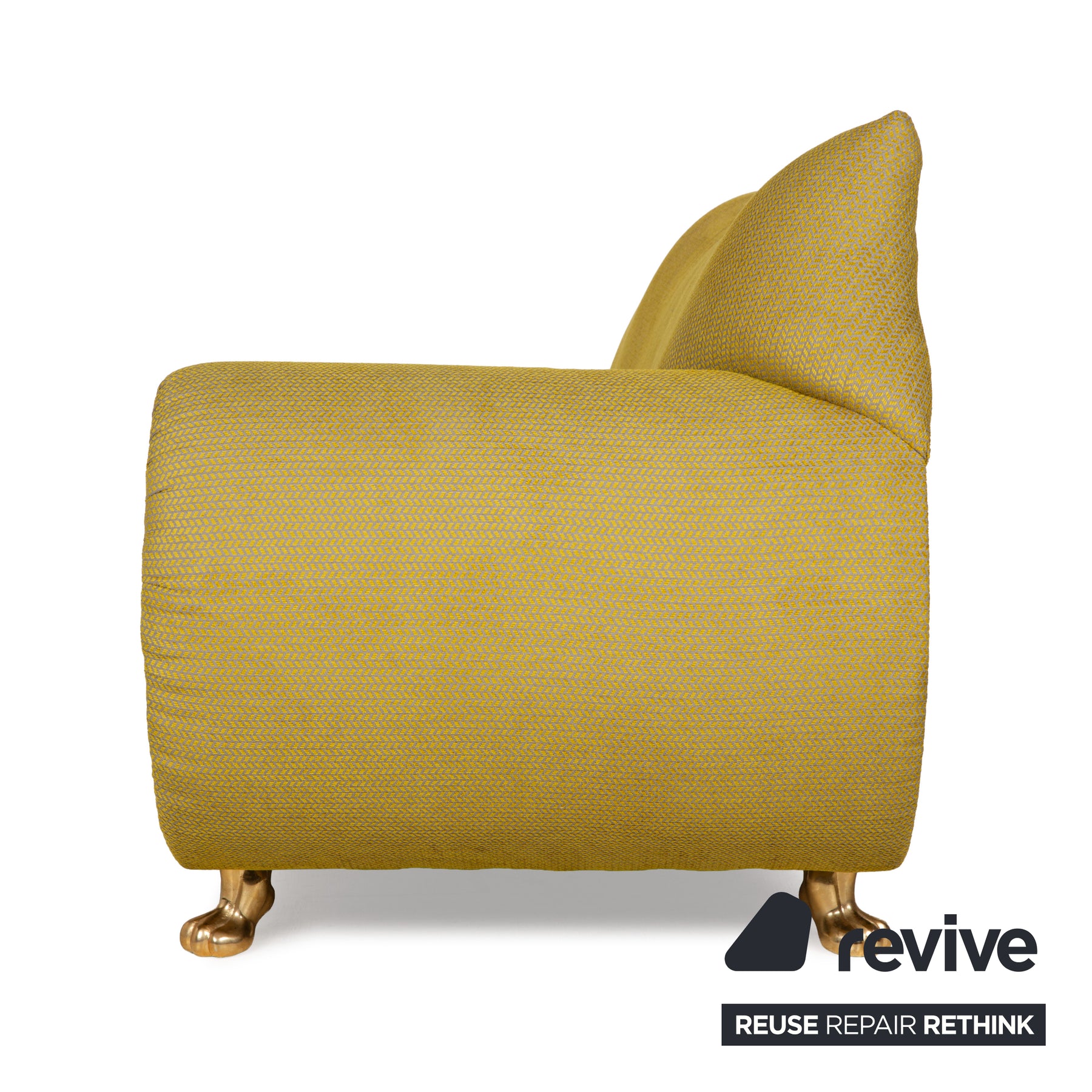 Montrez votre caractère avec le canapé Gaudi de Bretz, nouvellement recouvert de tissu de haute qualité (CALIMERA FR 850 de Höpke) dans un motif jaune-vert. Les courbes et l'extravagance en font un accroche-regard dans n'importe quelle pièce et le rembourrage doux vous invite à vous détendre. Le canapé trois places repose sur une base laquée or en forme de patte de lion et constitue un véritable atout dans le salon moderne.