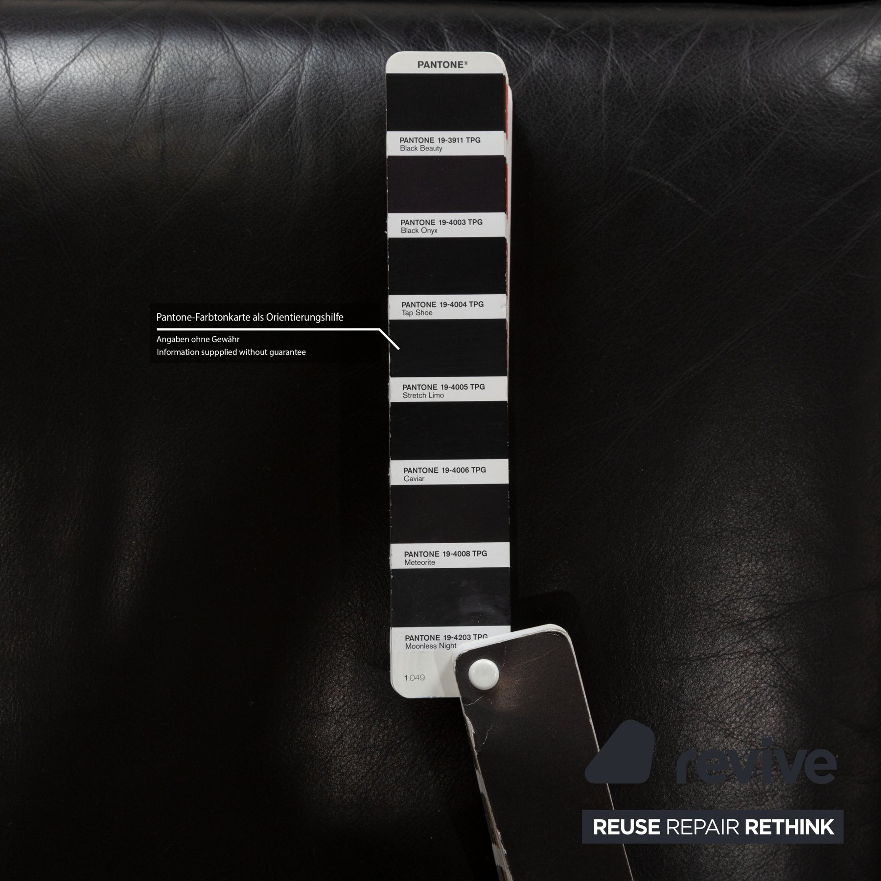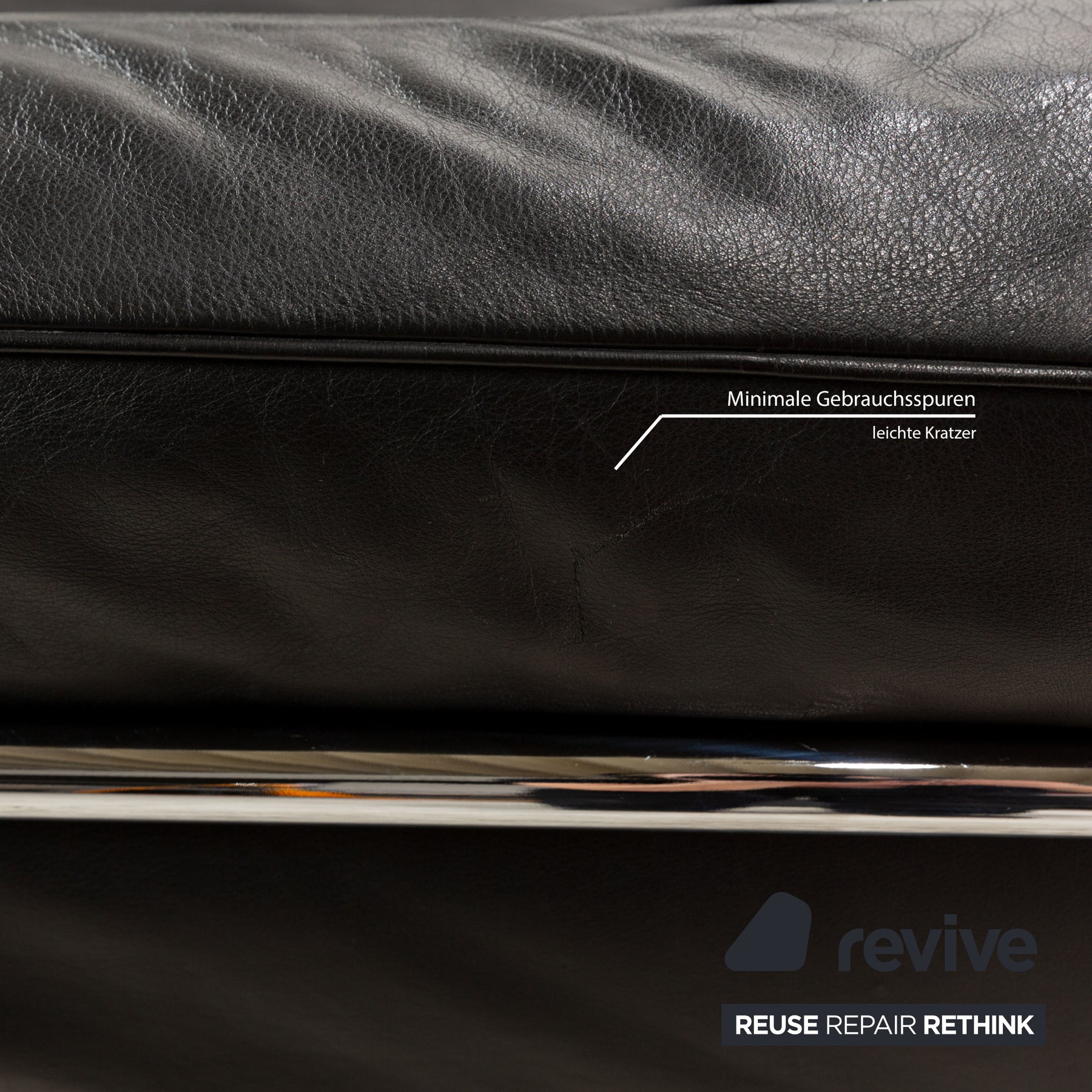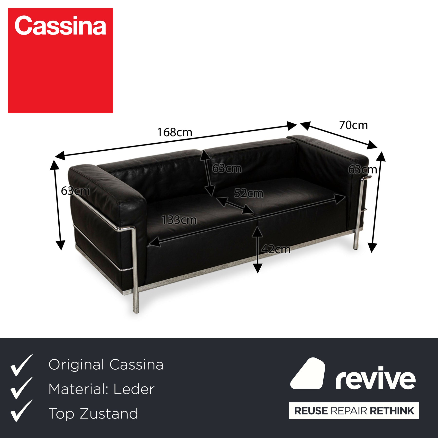Le biplace Le Corbusier LC3 de Cassina est recouvert de cuir véritable noir et repose sur des pieds en métal argenté. Il se caractérise par son design compact et solide et son look élégant.