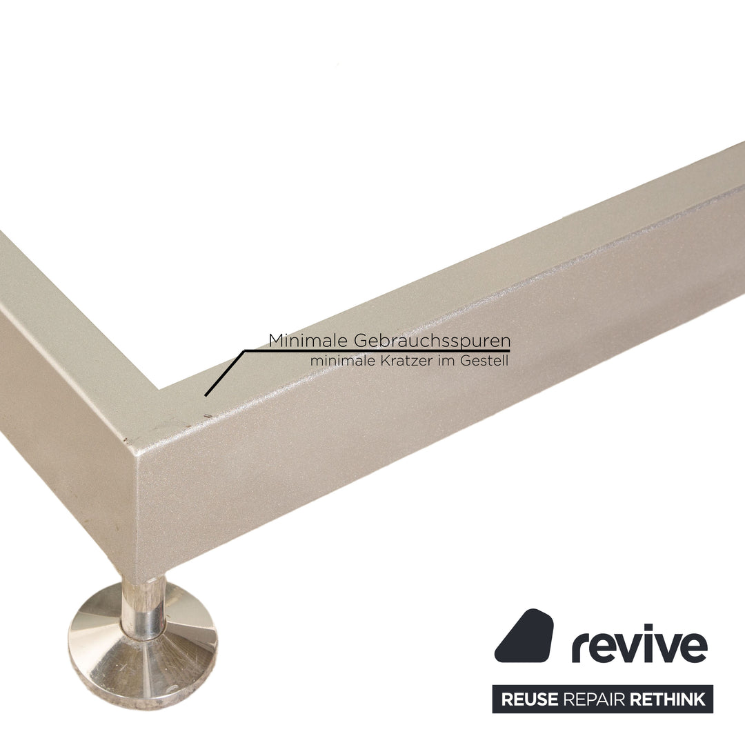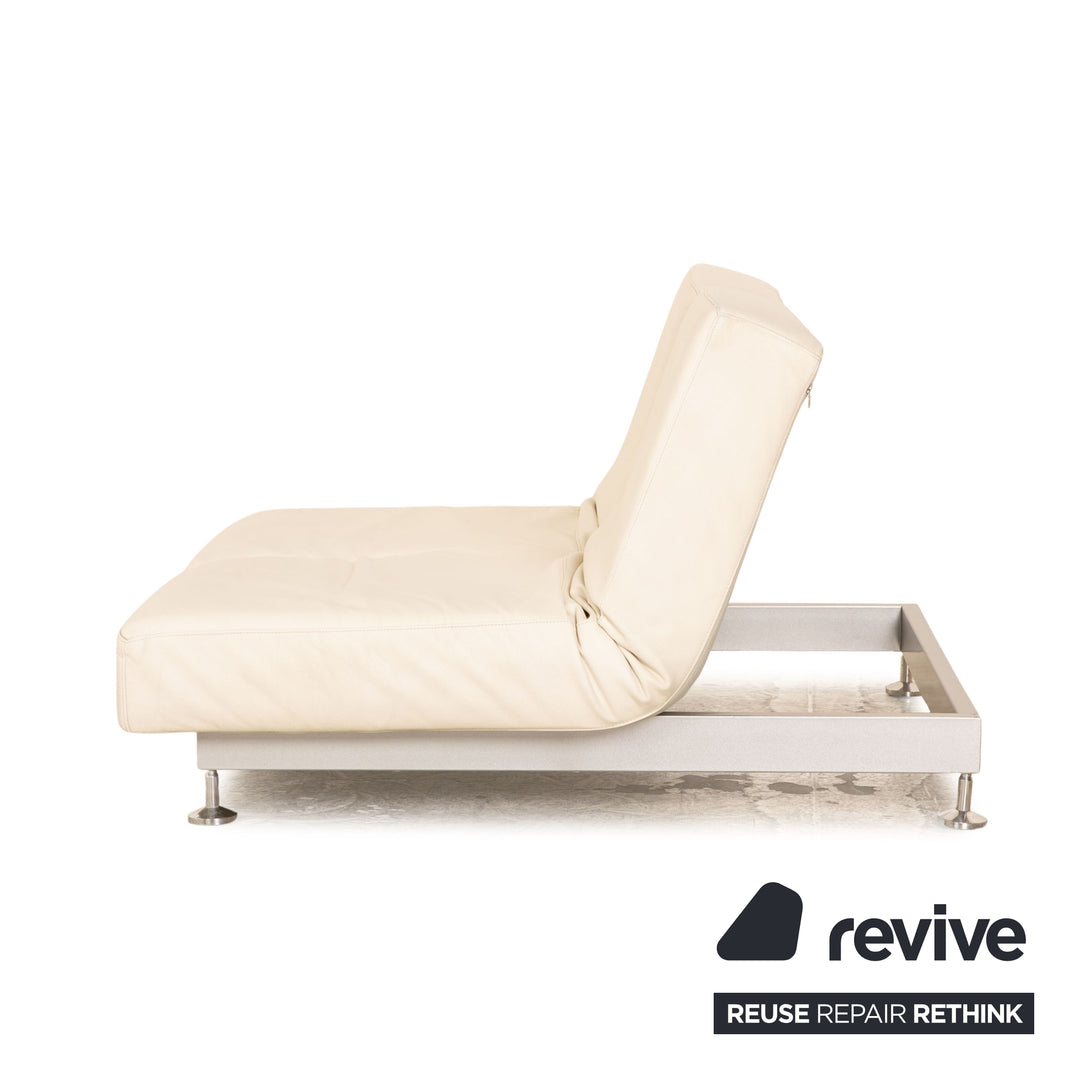 Le Damier biplace d'Edra est recouvert de cuir véritable de couleur crème et repose sur des pieds étroits en métal. Il se caractérise par sa fonction de couchage confortable et son aspect clair et harmonieux.