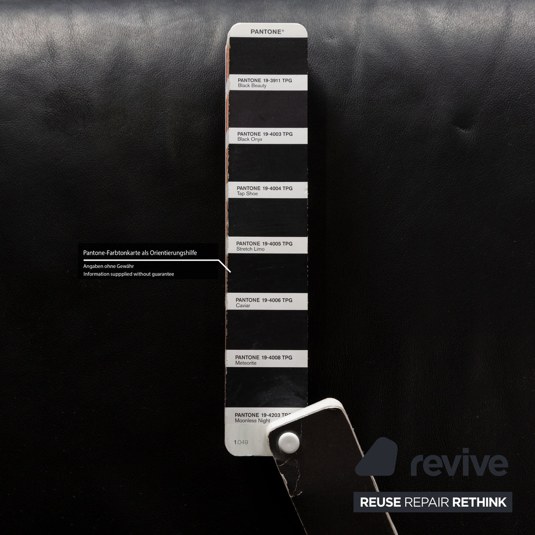 Le canapé Paradise de Stressless est recouvert de cuir noir et repose sur des pieds étroits en bois noir. Il dispose de nombreuses possibilités de réglage individuel et garantit ainsi un haut niveau de confort. Le canapé d'angle se caractérise par le design classique typique du fabricant,