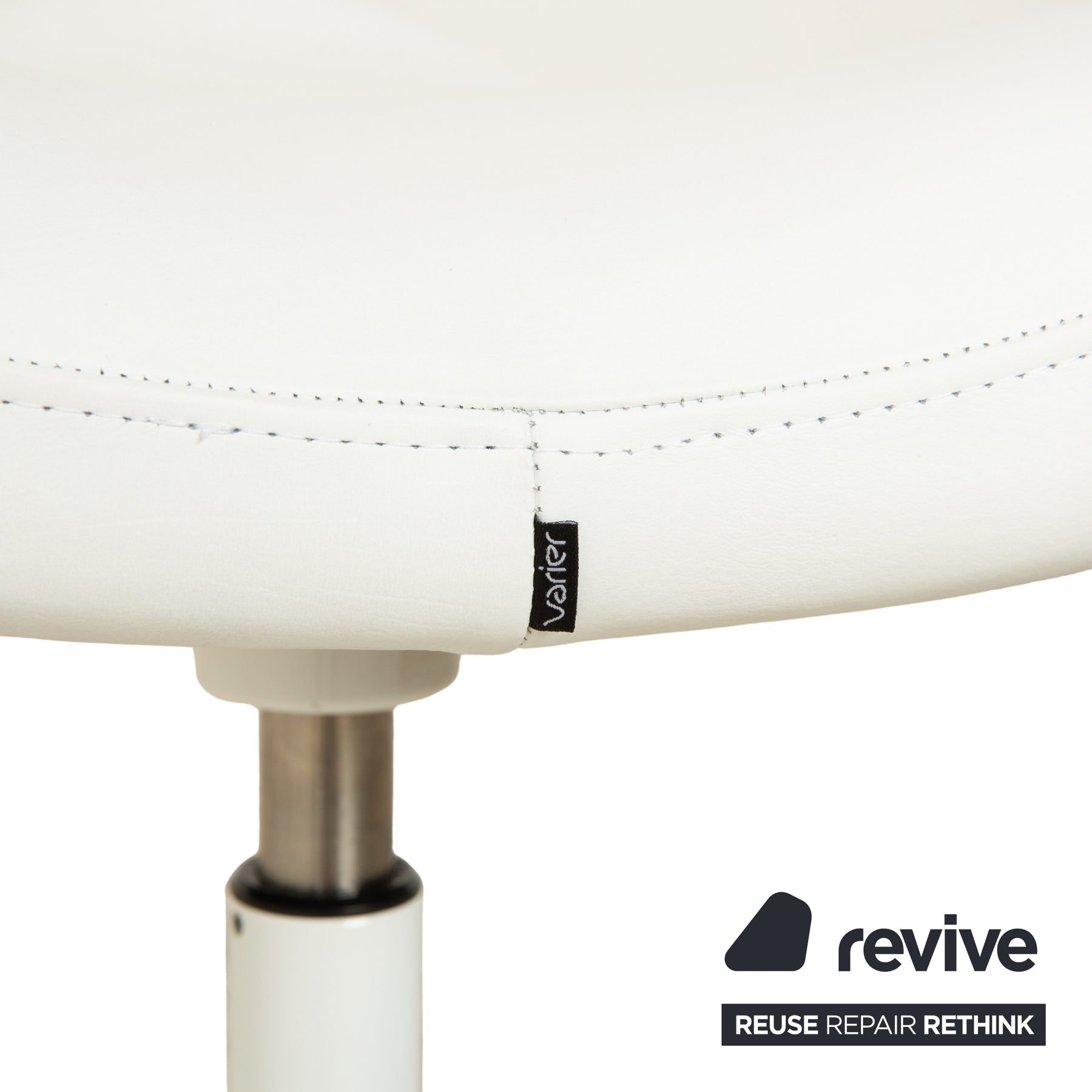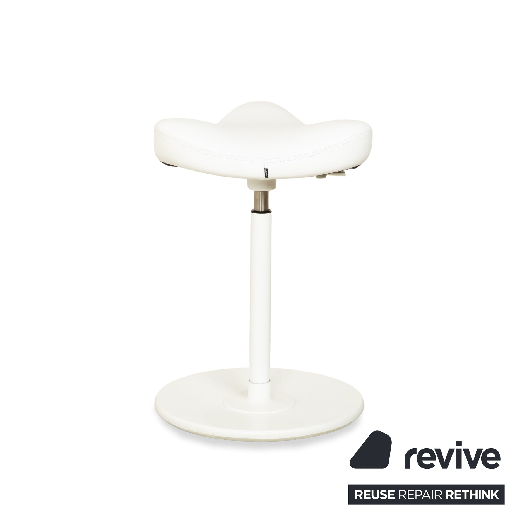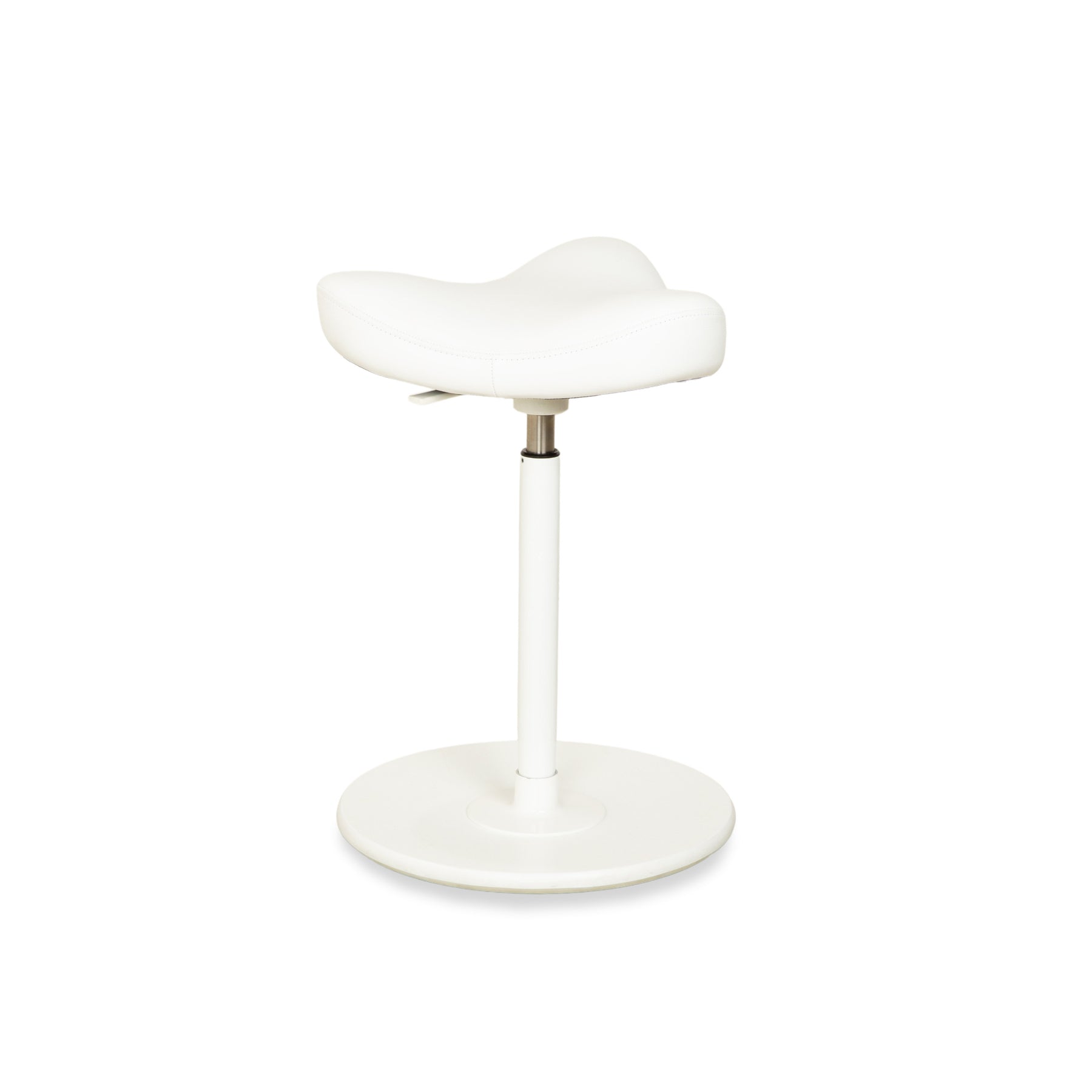 Tabouret assis-debout Varier Move, modèle LEA700, piètement blanc, en cuir et bois de frêne, par Per Øie