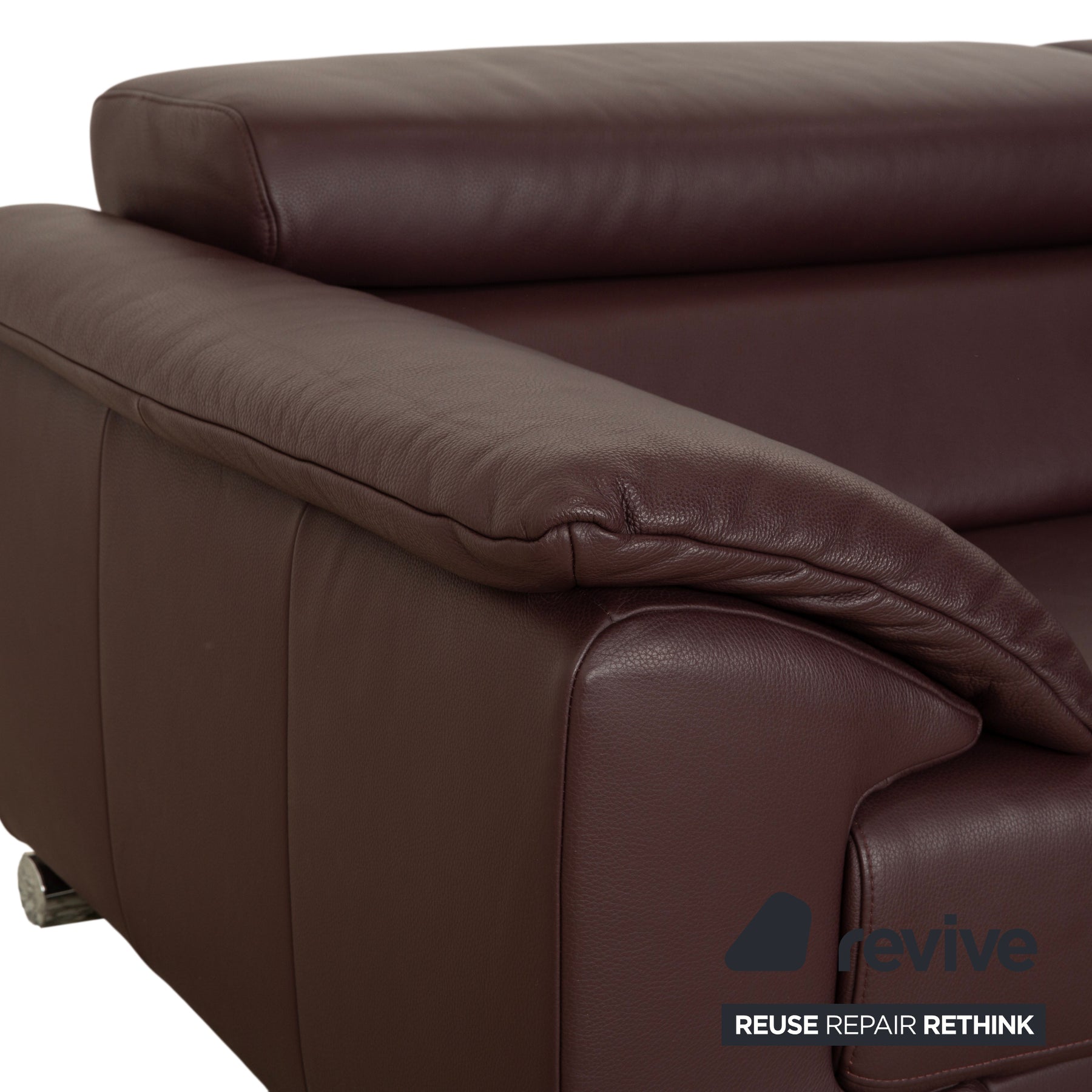 Canapé d'angle Ewald Schillig Brand Blues, cuir marron aubergine, fonction manuelle, méridienne à droite
