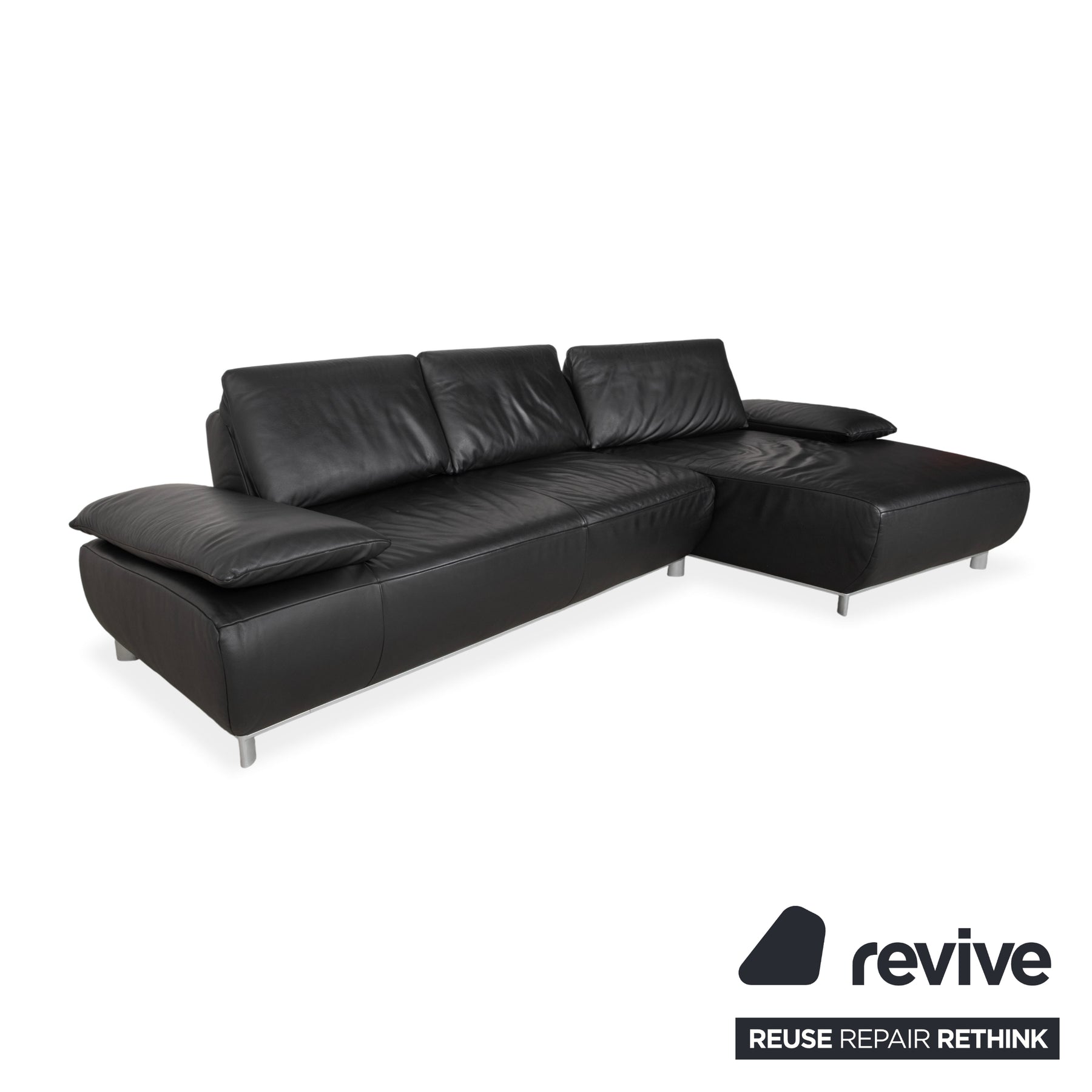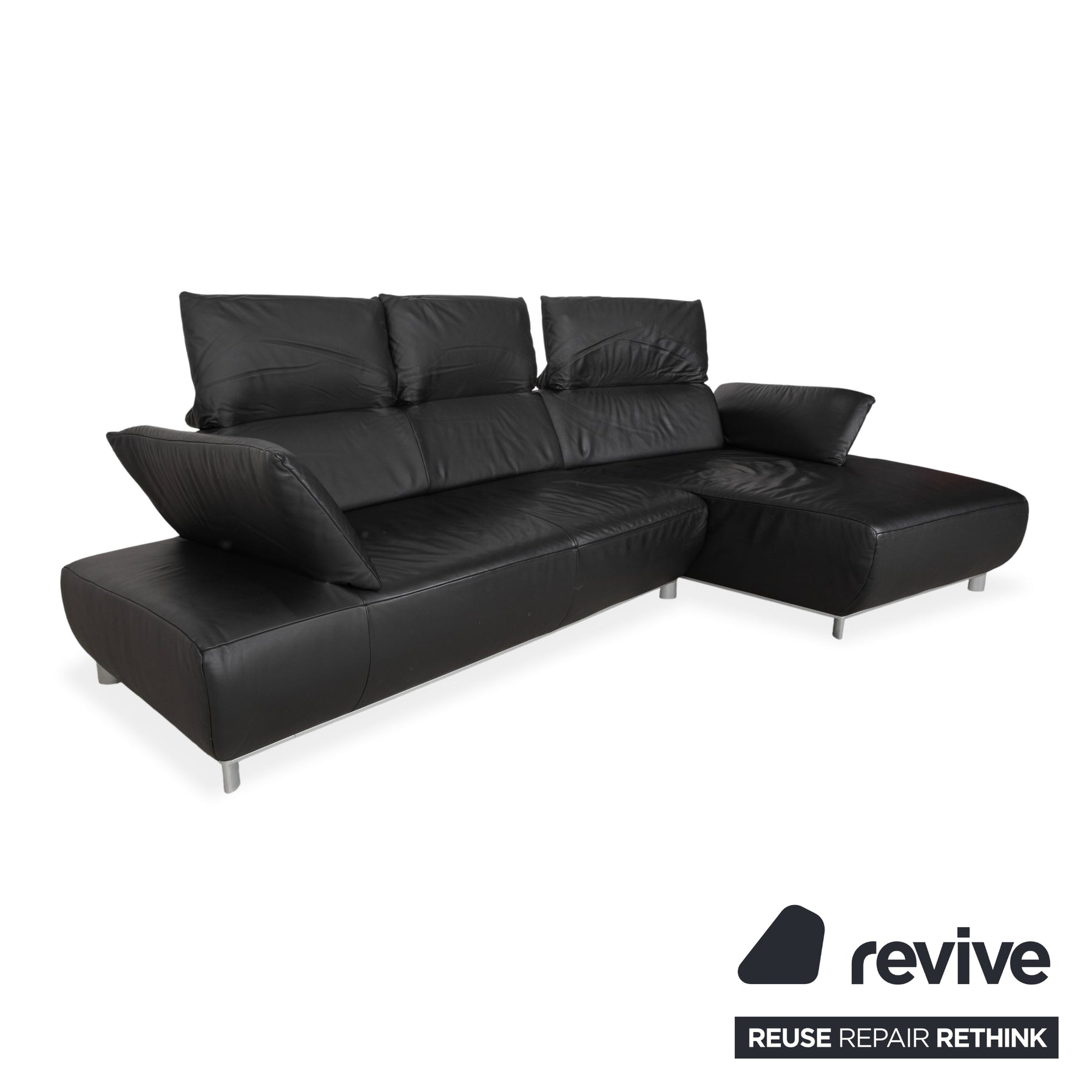 Canapé d'angle en cuir noir Koinor Volare à réglage manuel