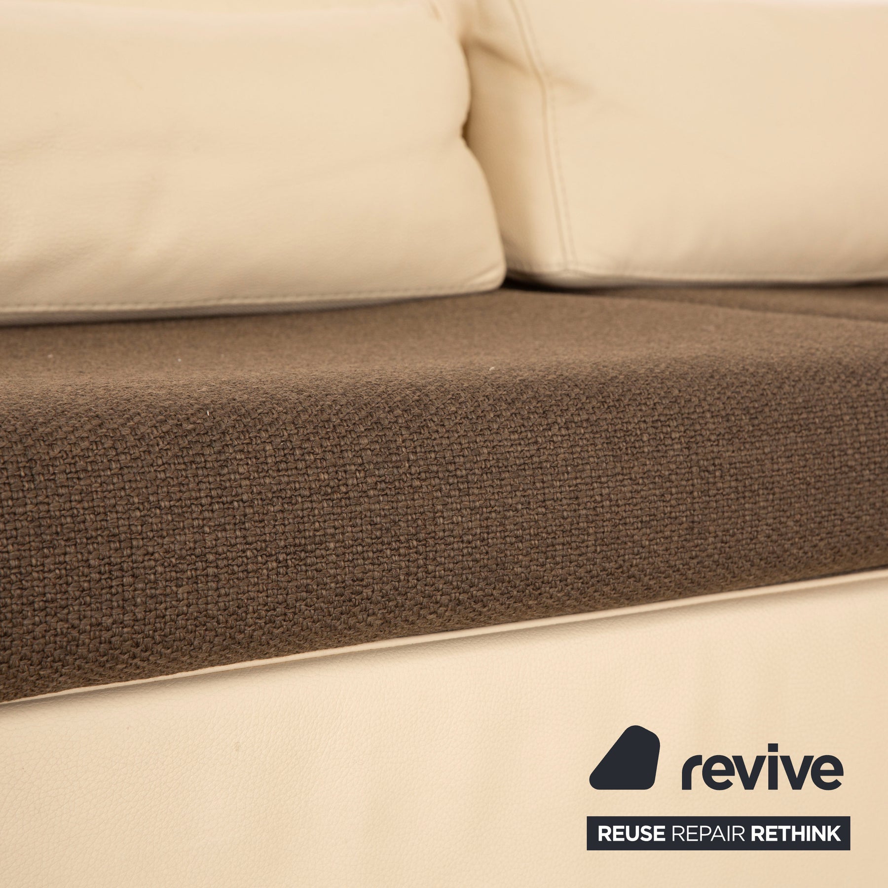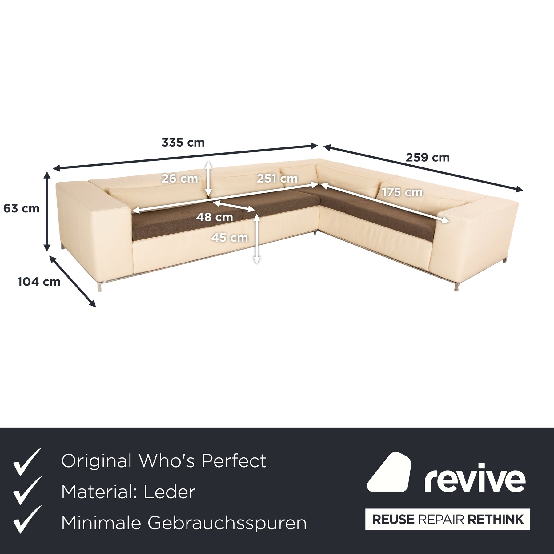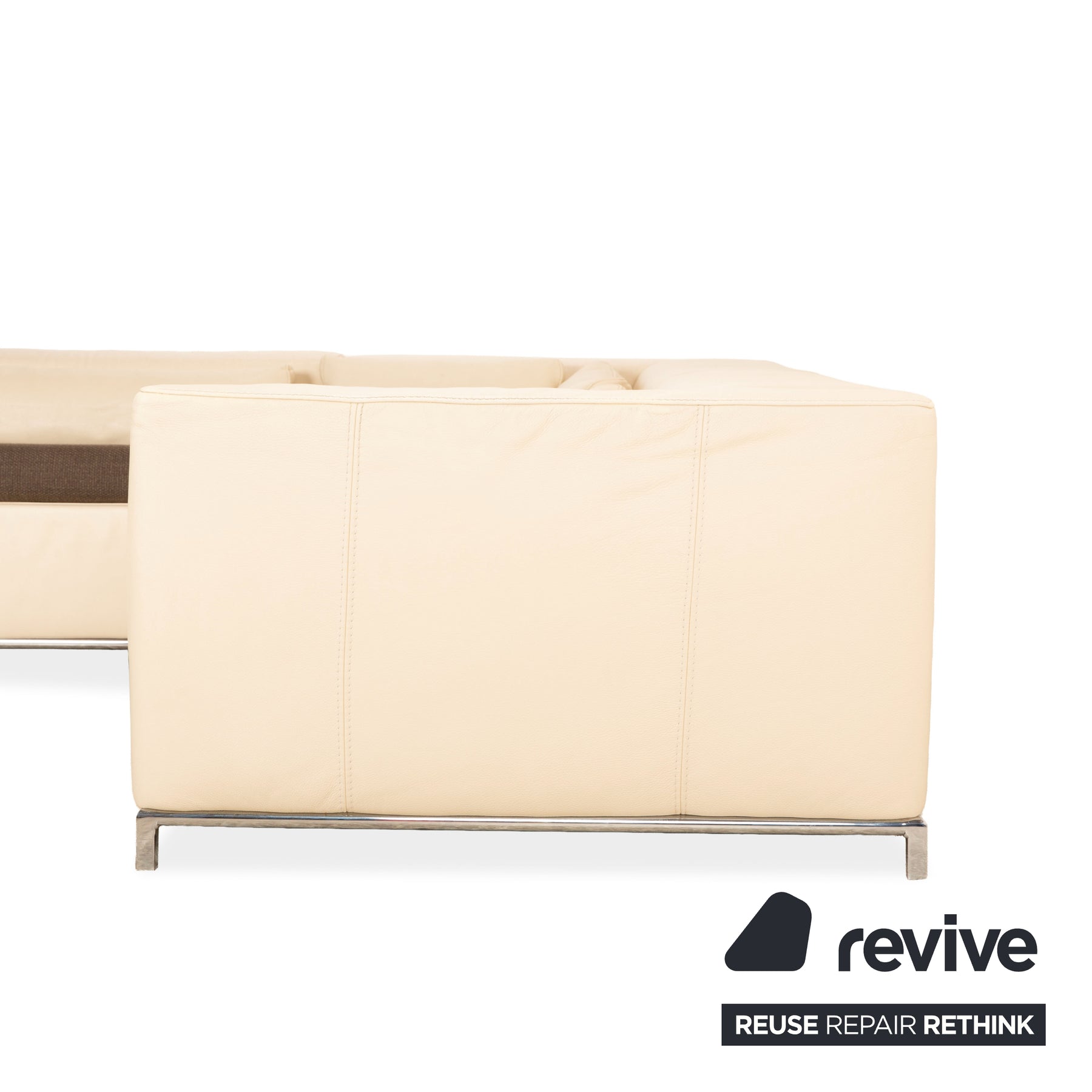 Who's Perfect Canapé d'angle Boston en cuir crème fonction manuelle partiellement retapissé