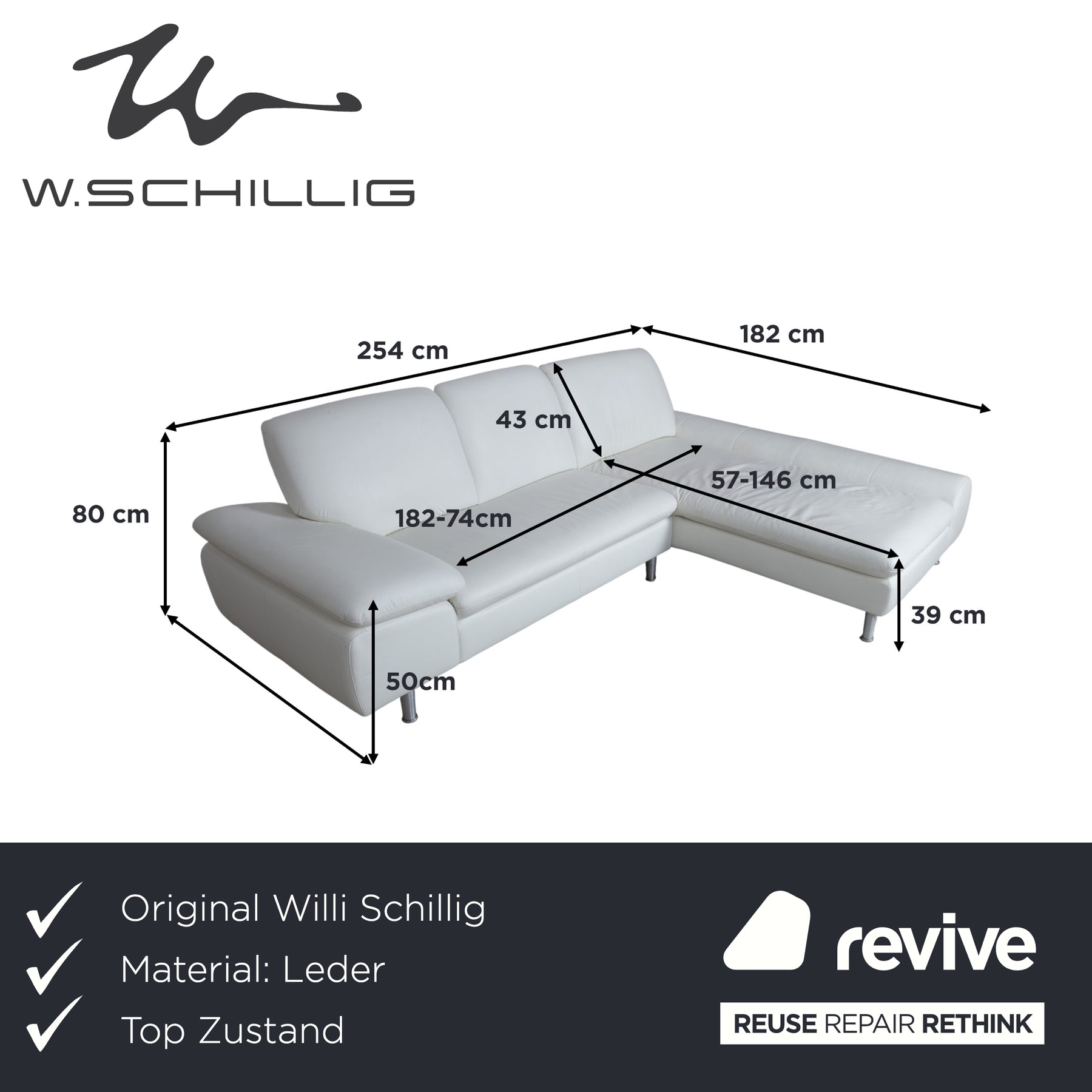 Canapé d'angle Willi Schillig en cuir bouclé blanc crème avec méridienne manuelle