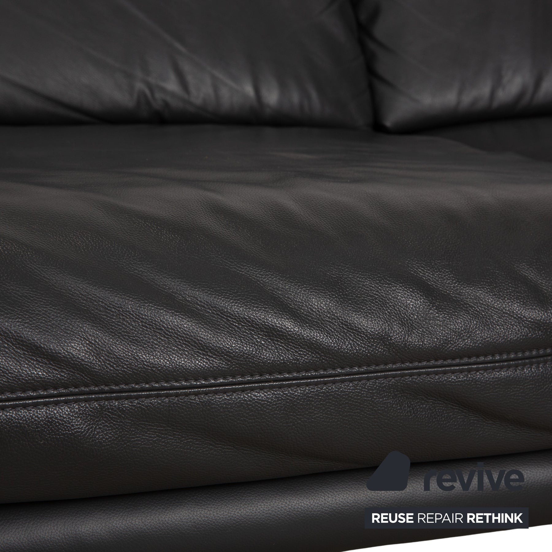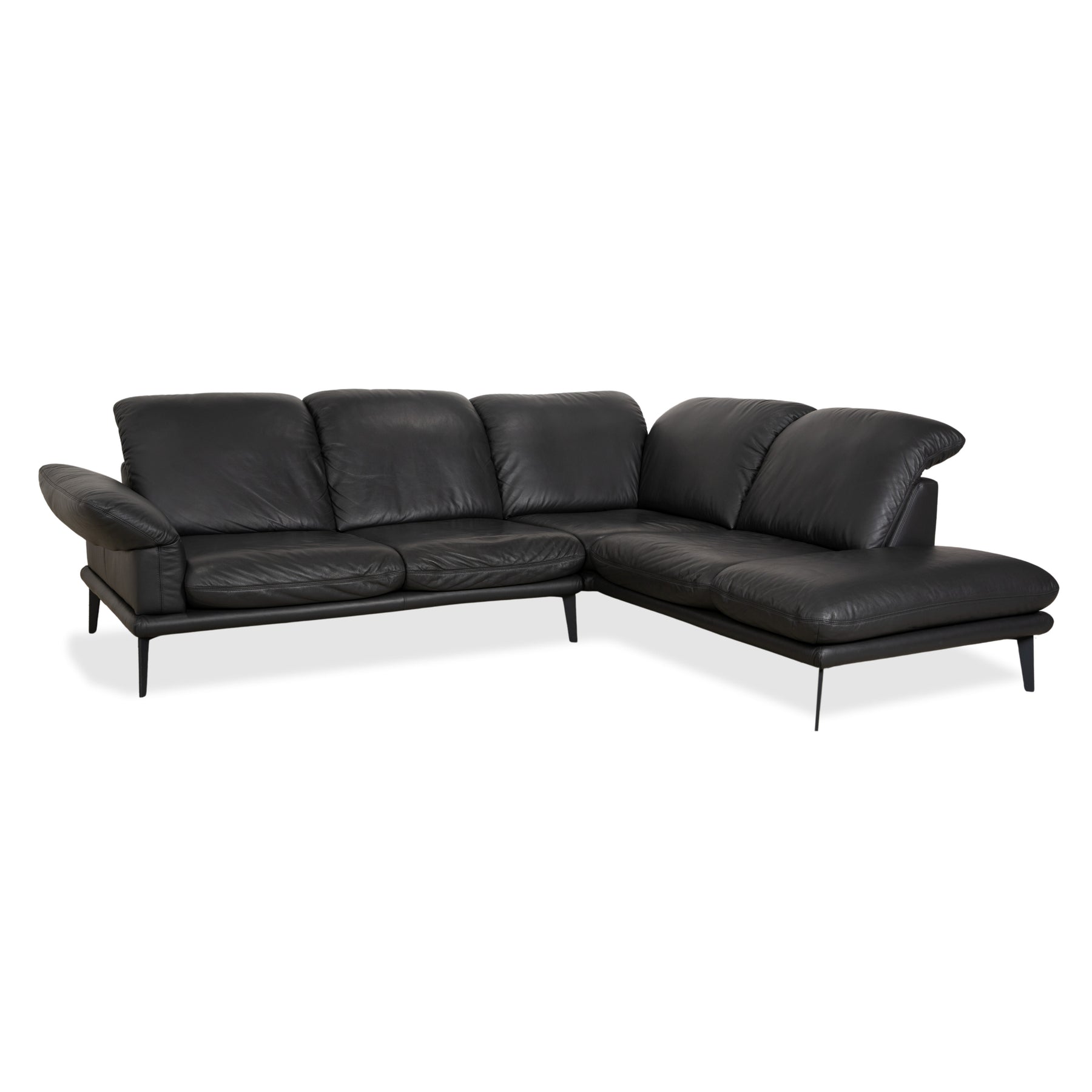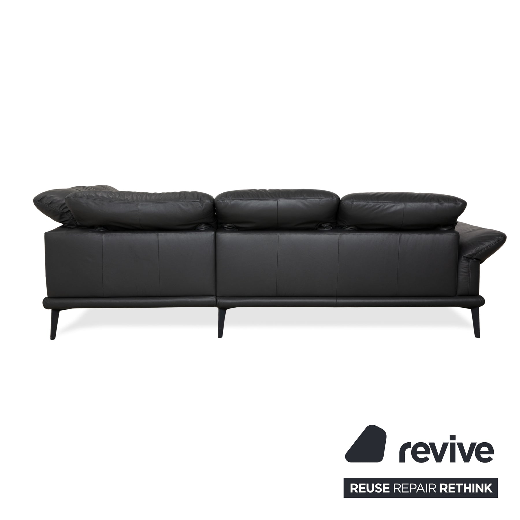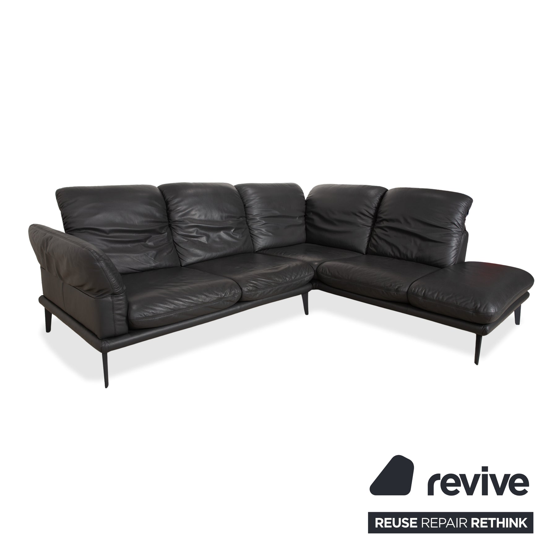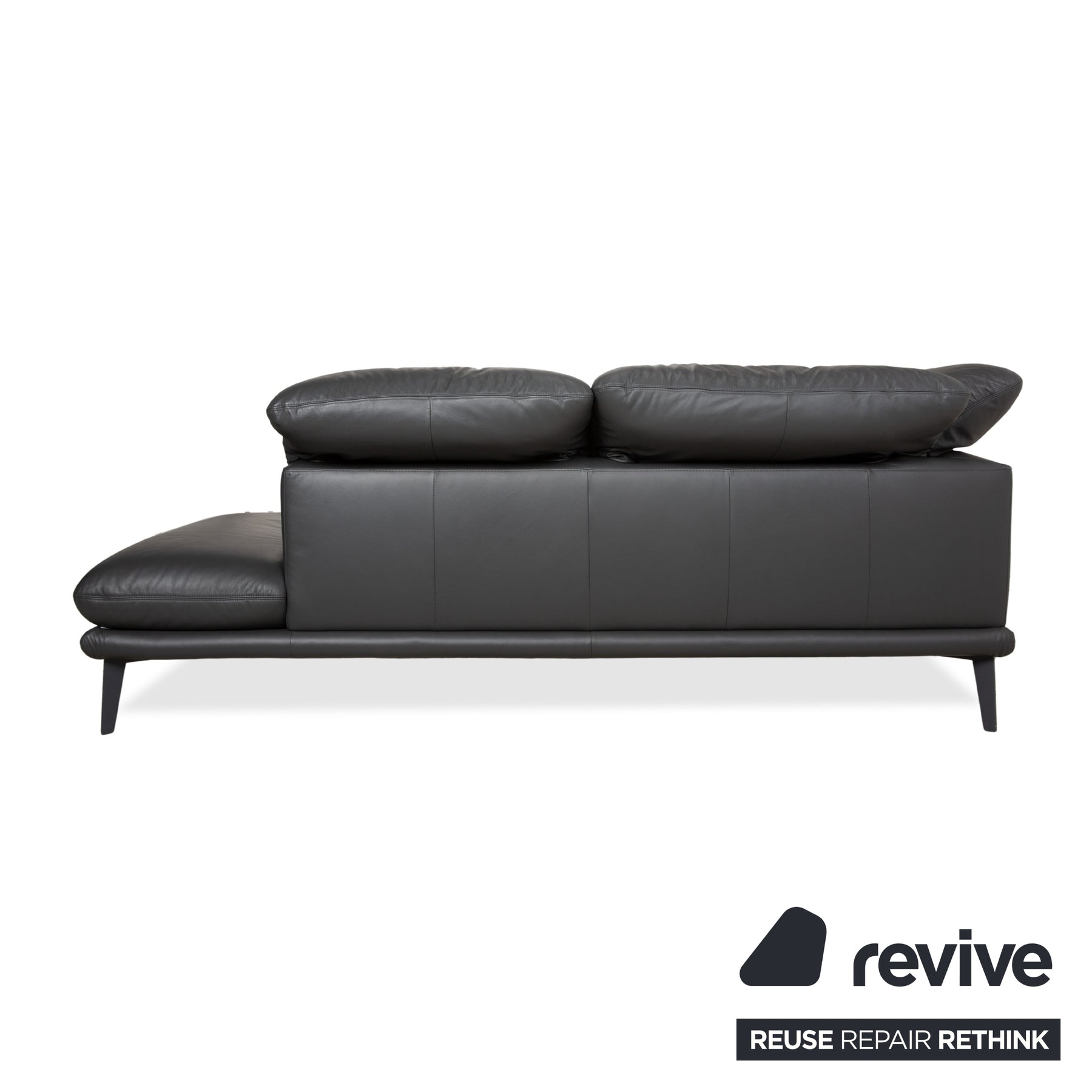 Canapé d'angle Willi Schillig en cuir Sherry, gris anthracite foncé, à réglage manuel.