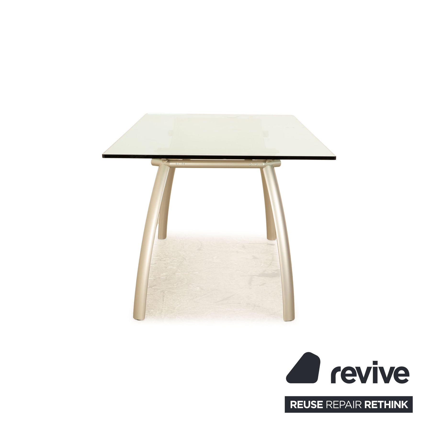 La table FRAG se compose d'un plateau rectangulaire en verre et repose sur des pieds en métal. Le design intemporel et rustique caractérise la table à manger.