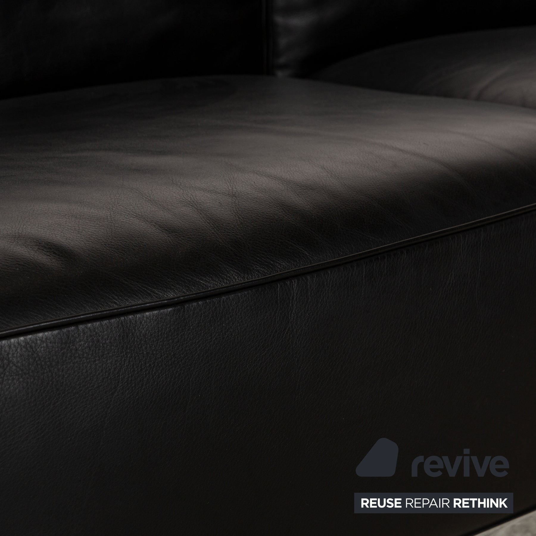 Le biplace Le Corbusier LC3 de Cassina est recouvert de cuir véritable noir et repose sur des pieds en métal argenté. Il se caractérise par son design compact et solide et son look élégant.